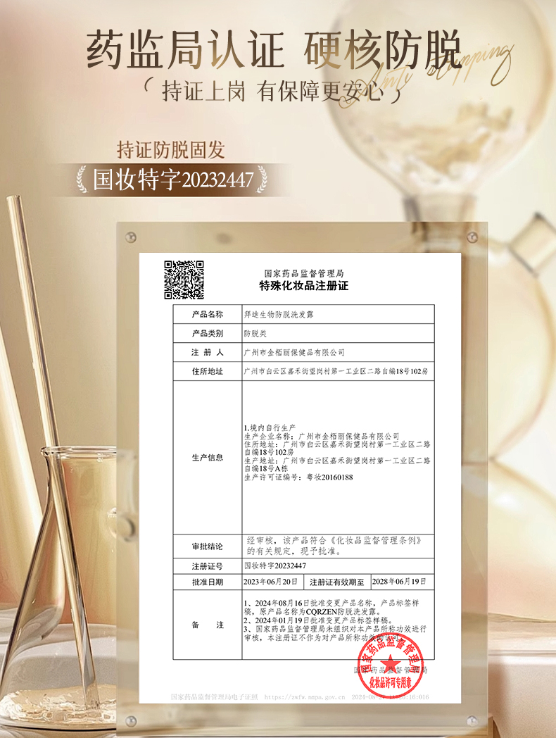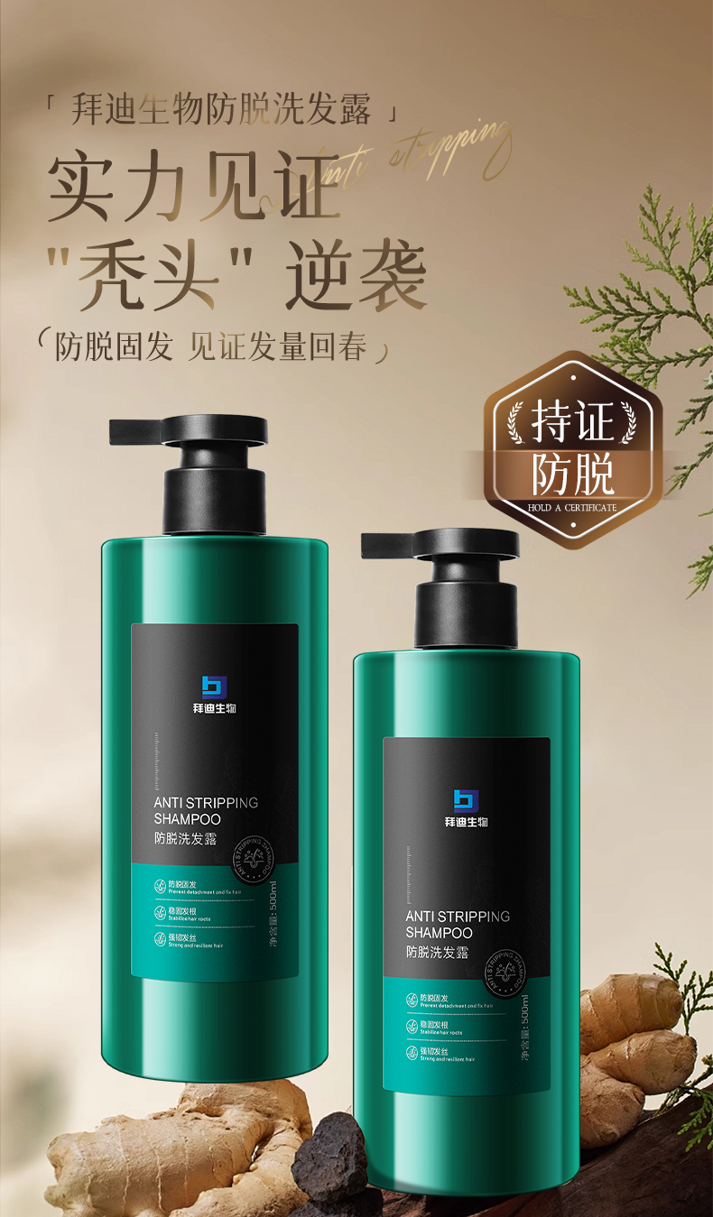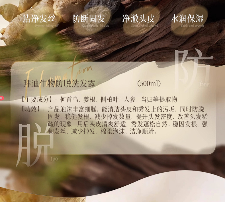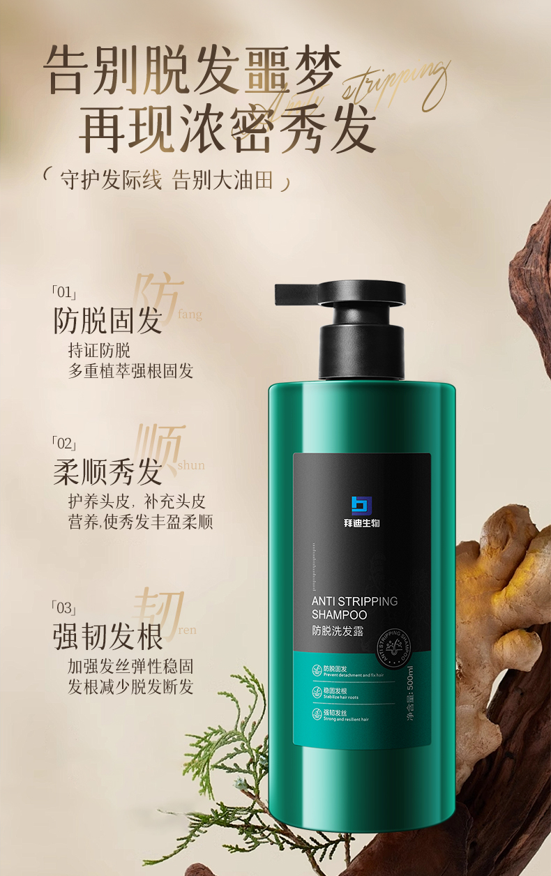 【广药白云山】 拜迪生物防脱洗发水 防脱固发 滋养发根 500ml 国妆特字20232447