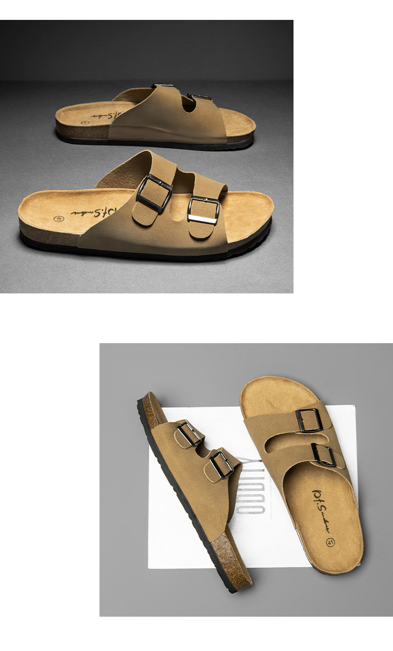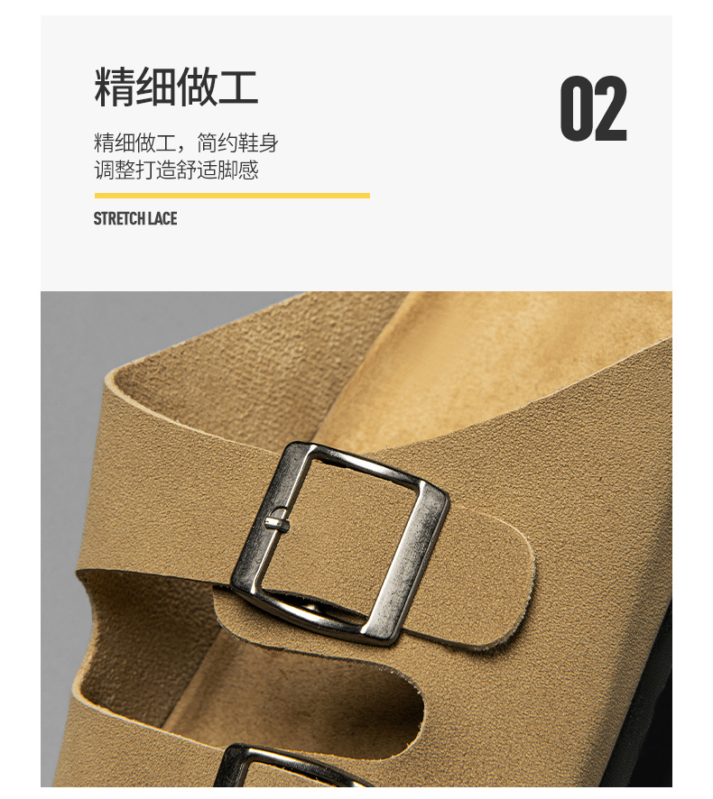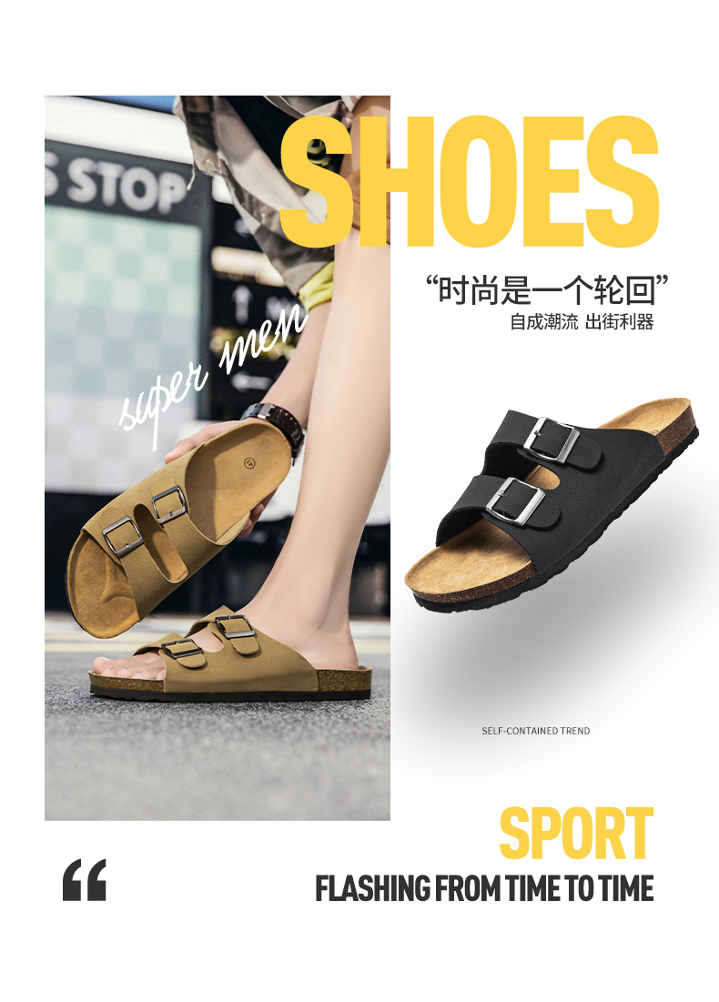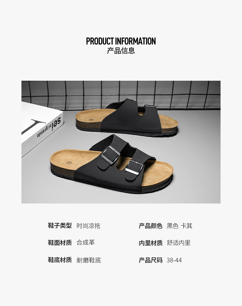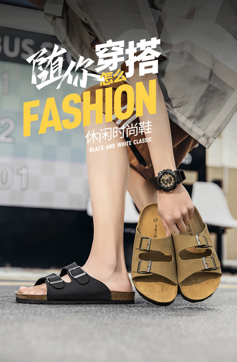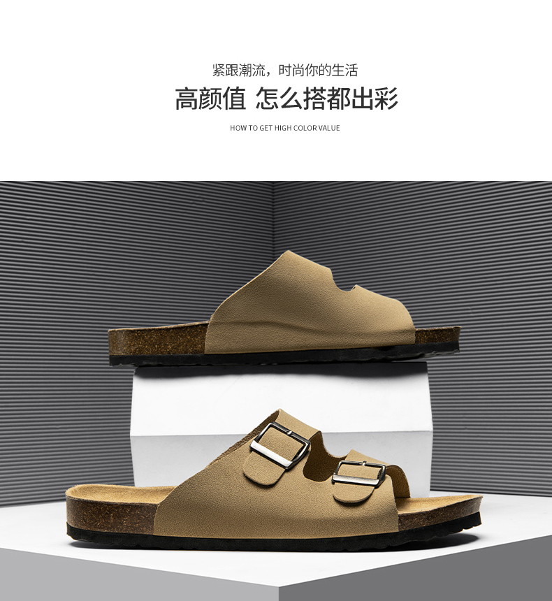 圣得西男鞋2024年夏季新款男士皮面耐磨鞋底户外休闲沙滩拖鞋潮