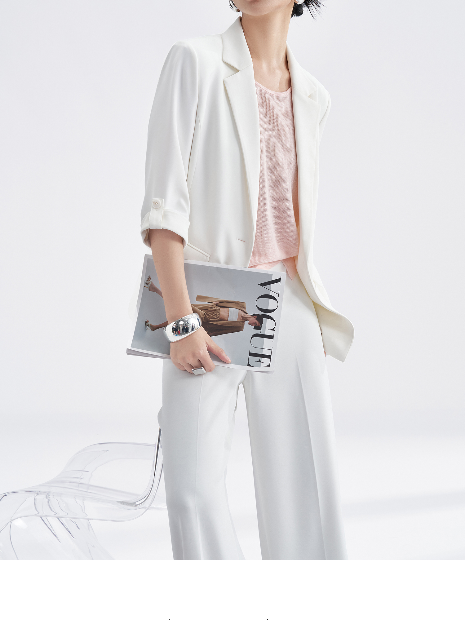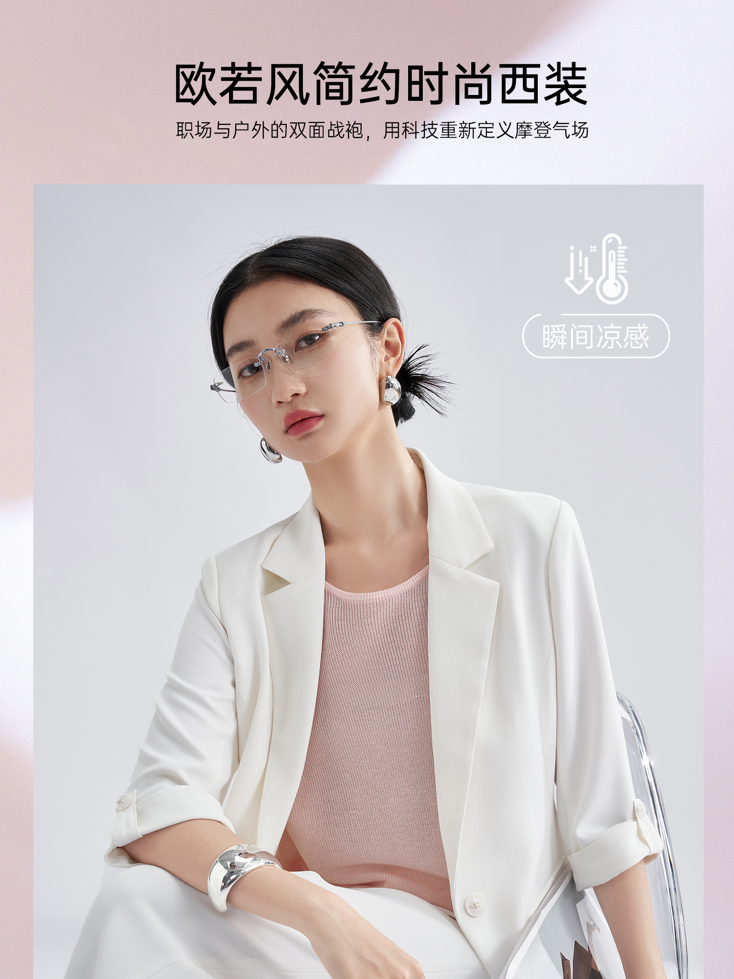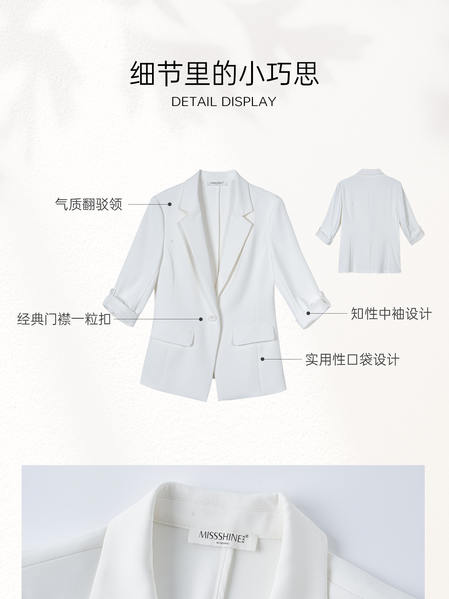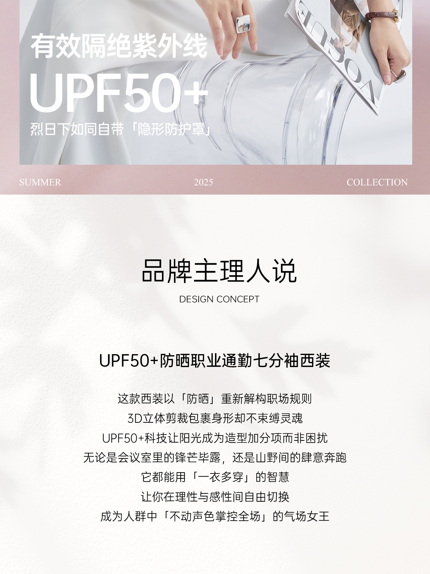 UPF50+防晒凉感西装 米思阳夏季新款欧若风简约时尚西装外套职业通勤七分袖西服女3269