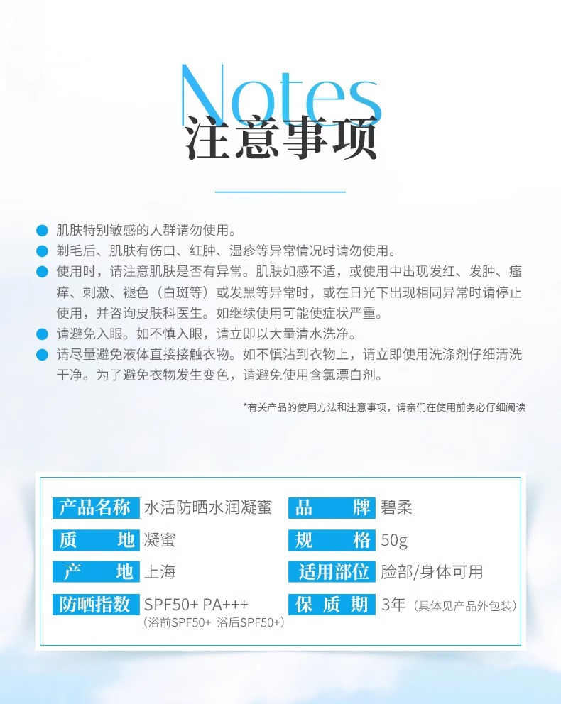 碧柔水活防晒水润凝蜜50g
