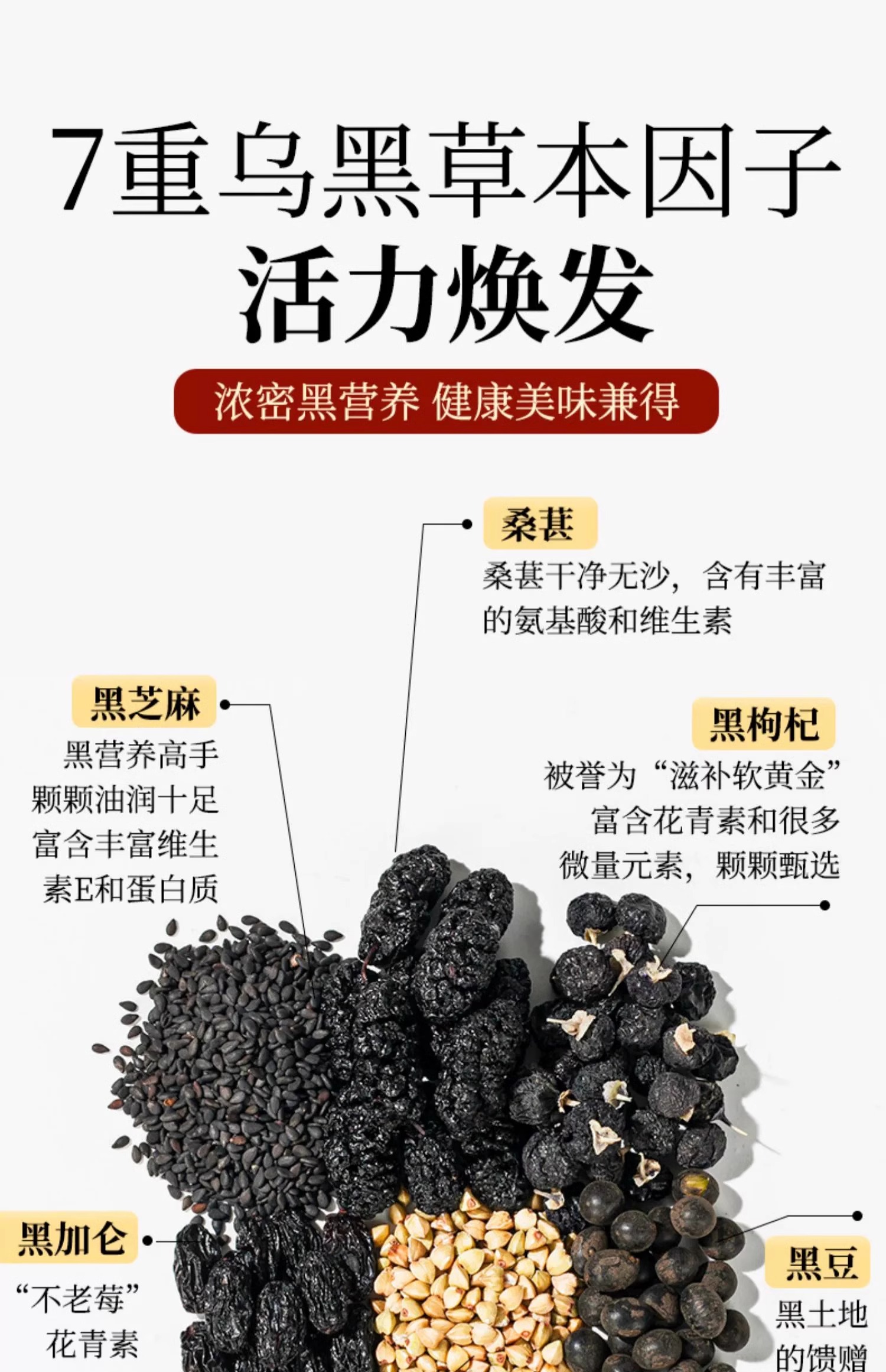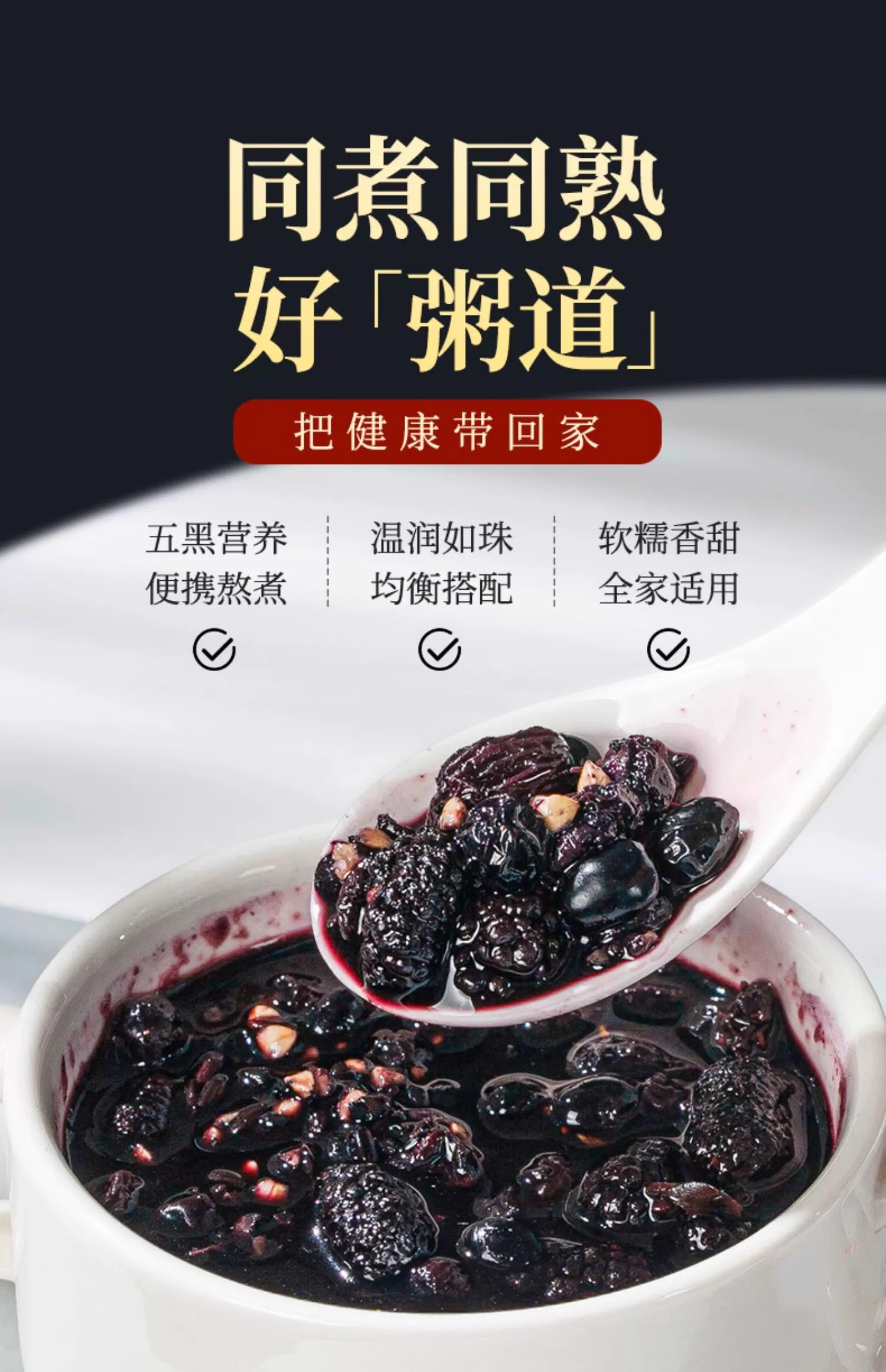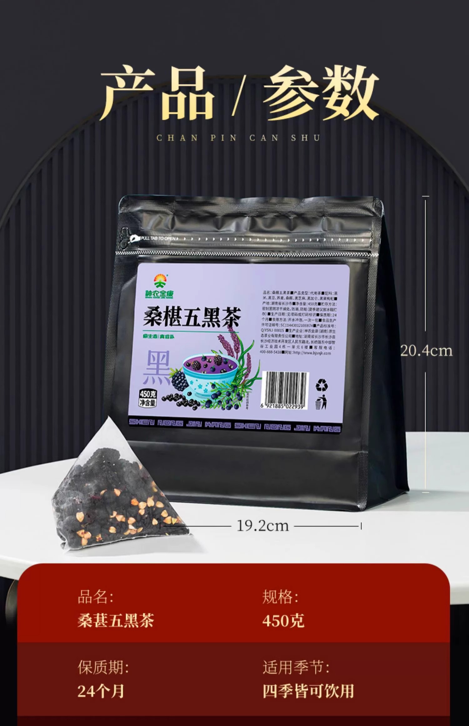 神农金康 桑葚五黑茶炒熟黑芝麻黑米黑豆荞麦五黑水黑枸杞养生茶 原生态真滋补 喝护家人健康