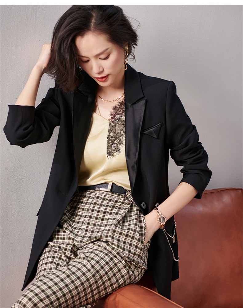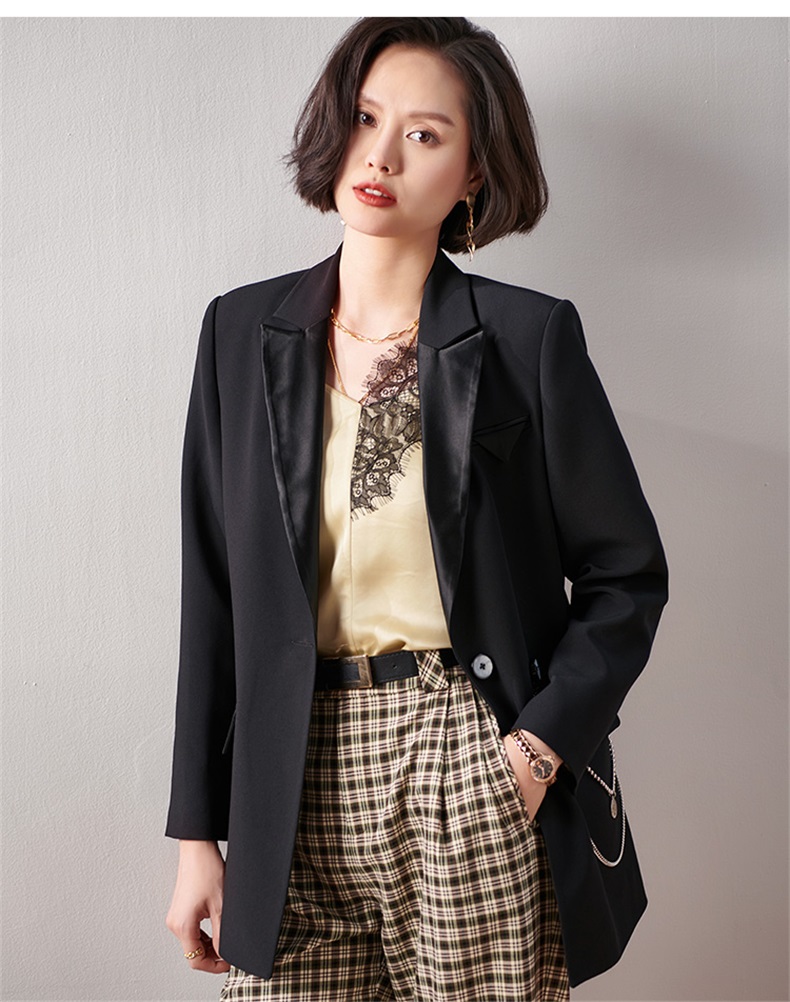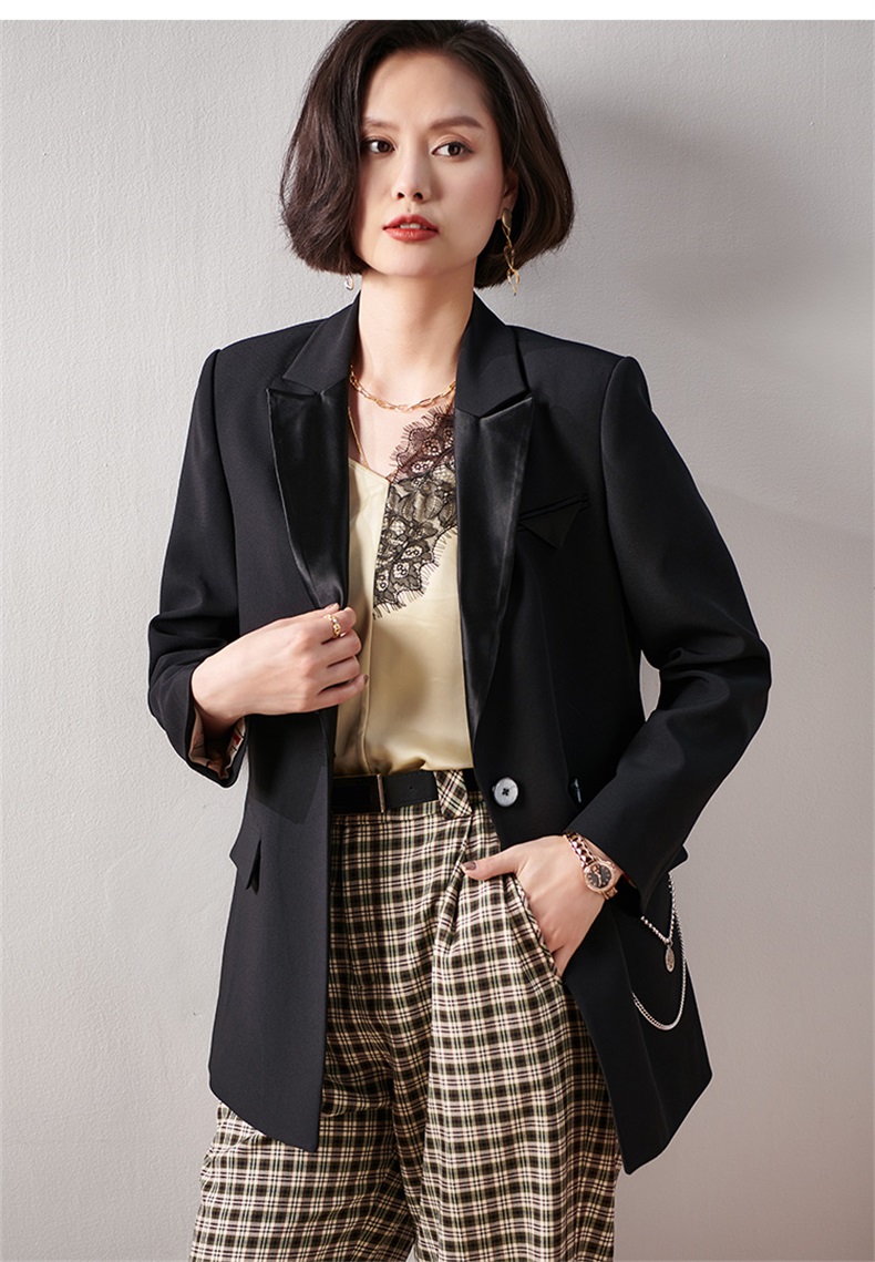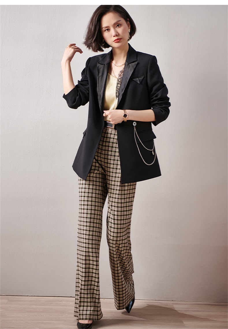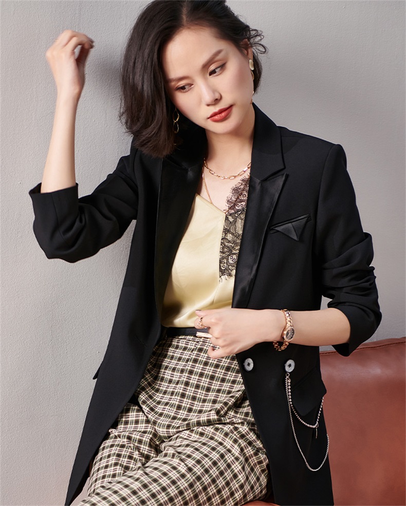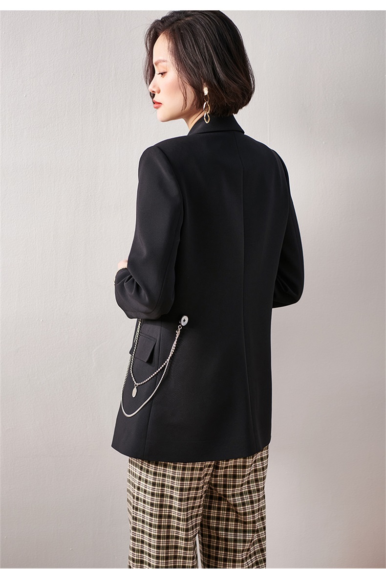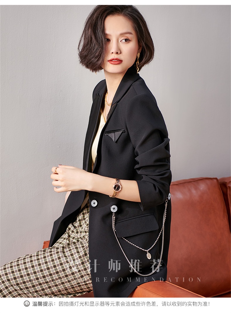 剩S/XL 芳外春季新款时尚通勤拼接单西链条装饰职场达人女式西服0035