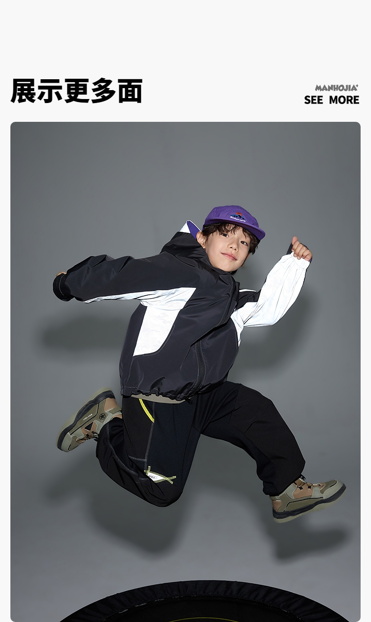 - 马拉丁旗下的城市户外潮童品牌,为3-12岁的孩子提供实用与细节设计的时尚度童装,打造现代简潮和城市户外感的着装,man游童年的冒险jia!