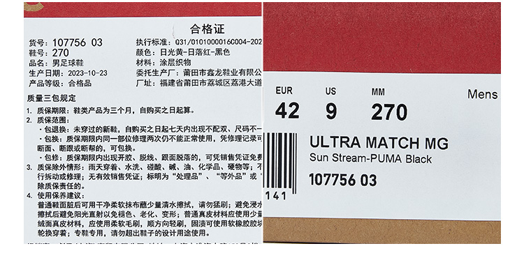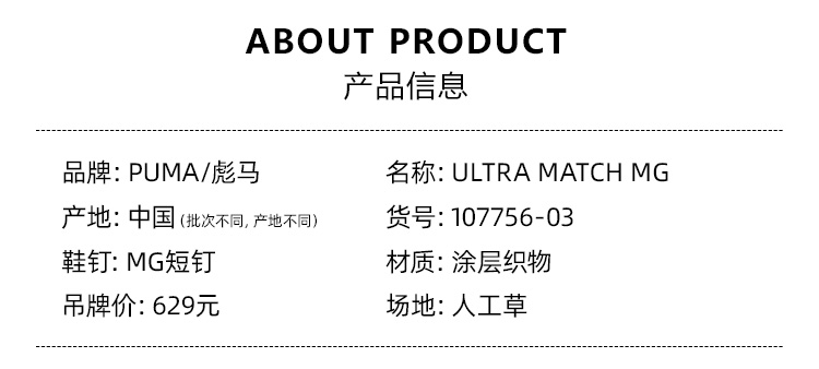 SFS彪马Puma ULTRA 中端MG短钉低帮人草足球鞋男 107756-03