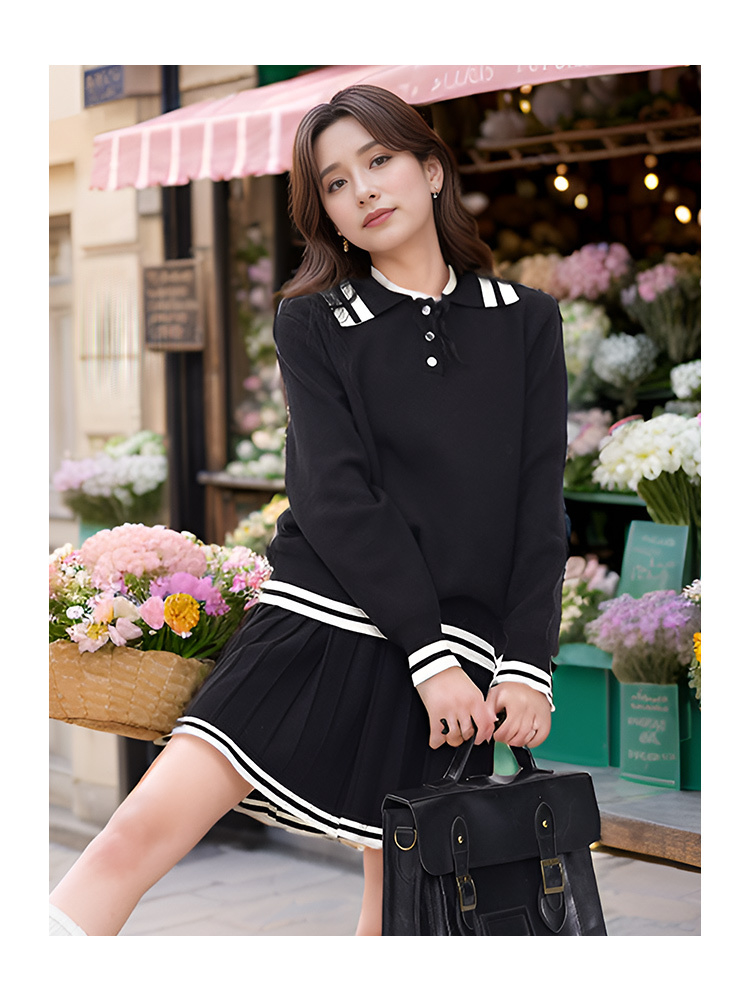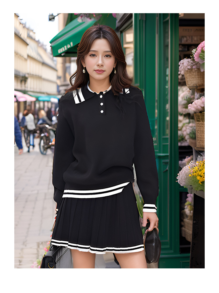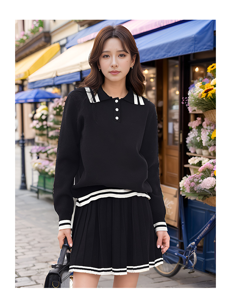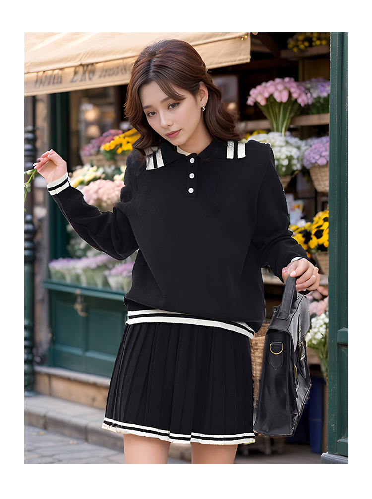 9/6奢姿大码女装2024秋季POLO领针织两件套胖妹妹时尚休闲百褶套装9843934049