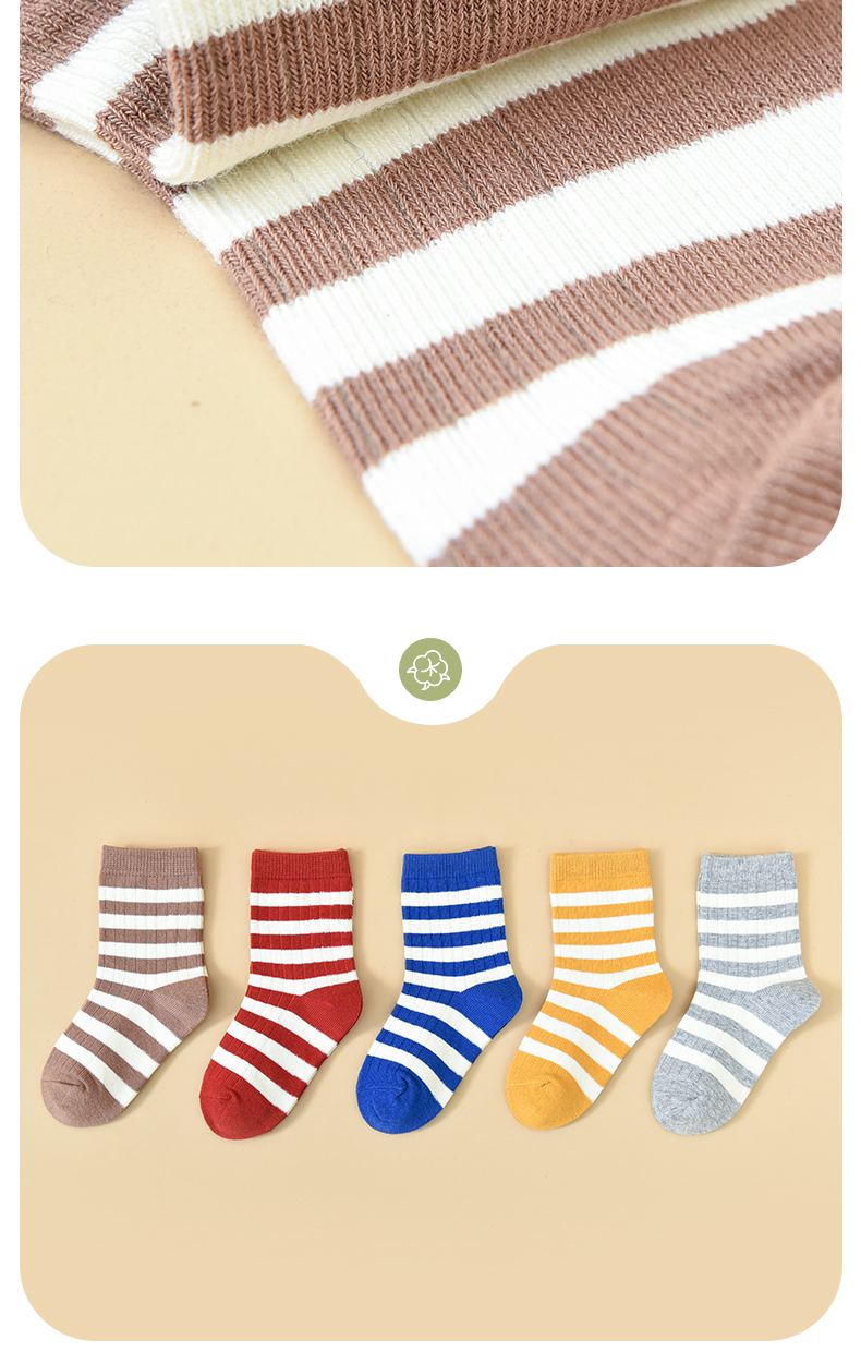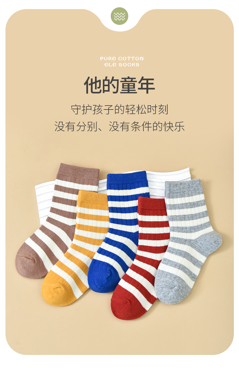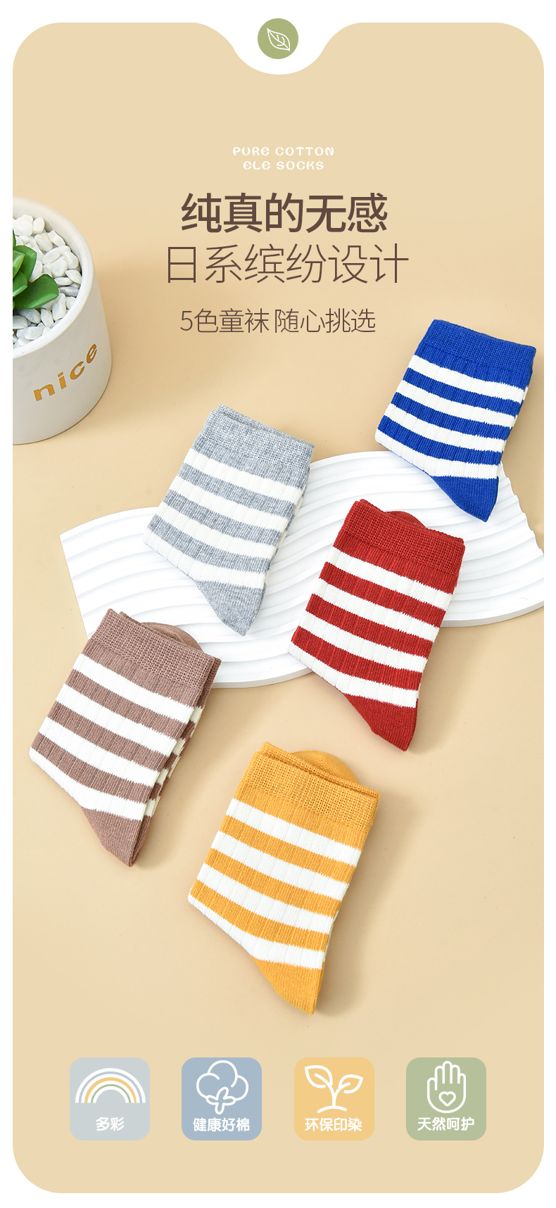 洁丽雅5双装儿童中筒袜可爱萌趣亲肤透气长绒棉舒适无感棉质童袜