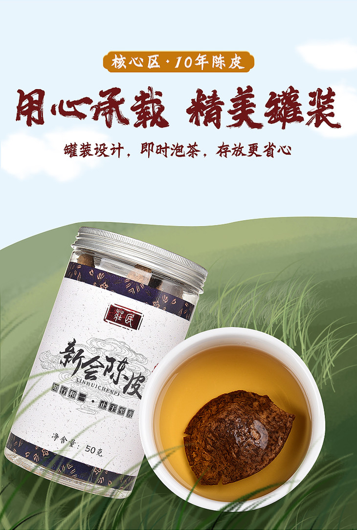 庄民 陈皮 正宗十年 10年新会老陈皮干 大红皮 茶叶花草茶泡水 精选好货50g/罐
