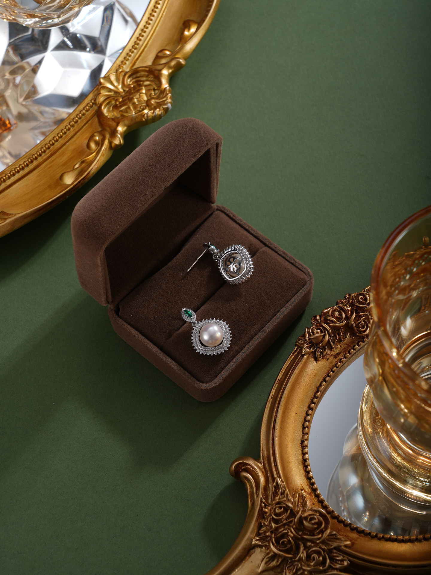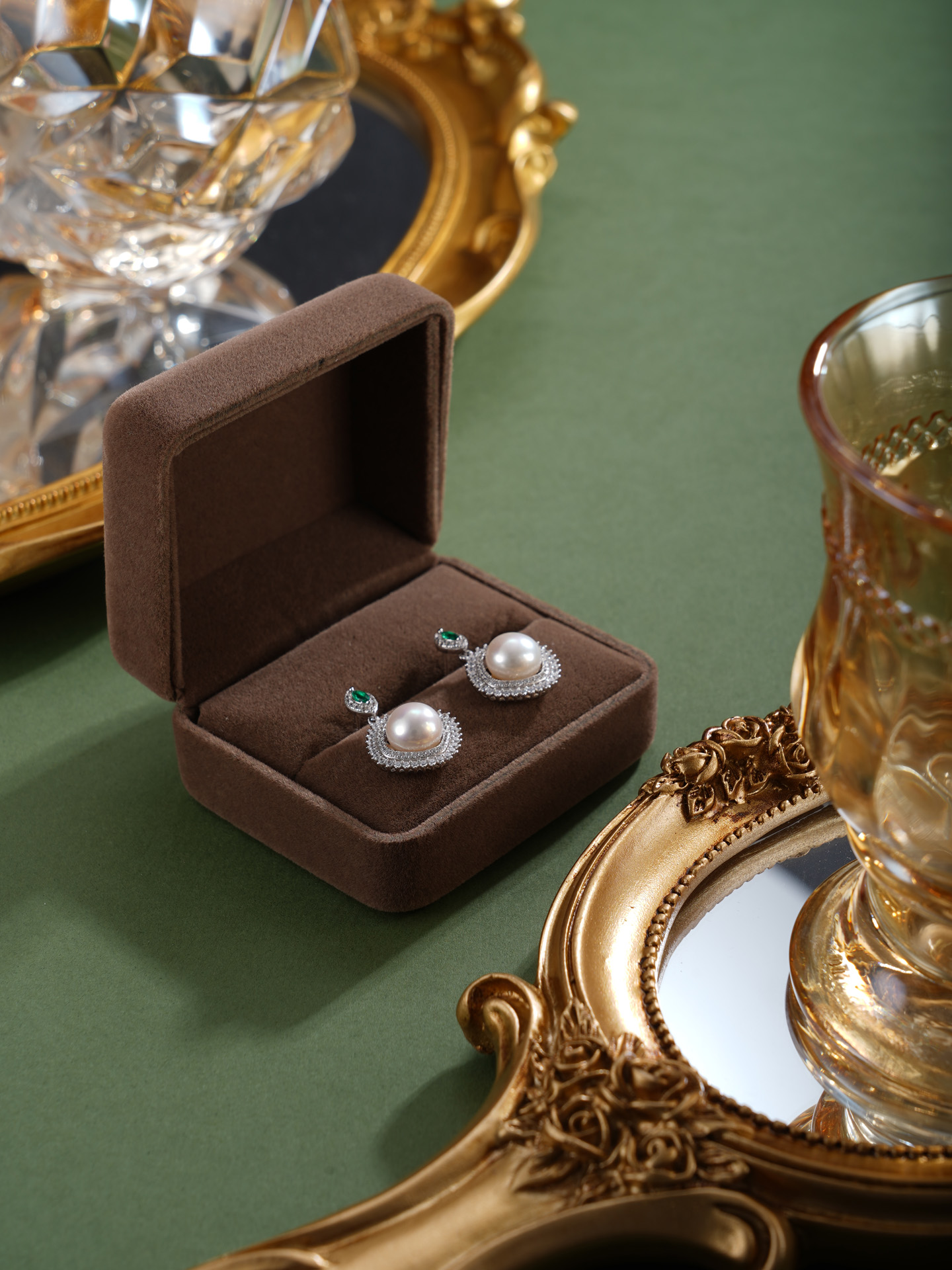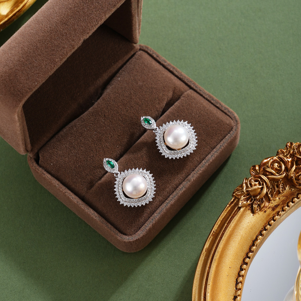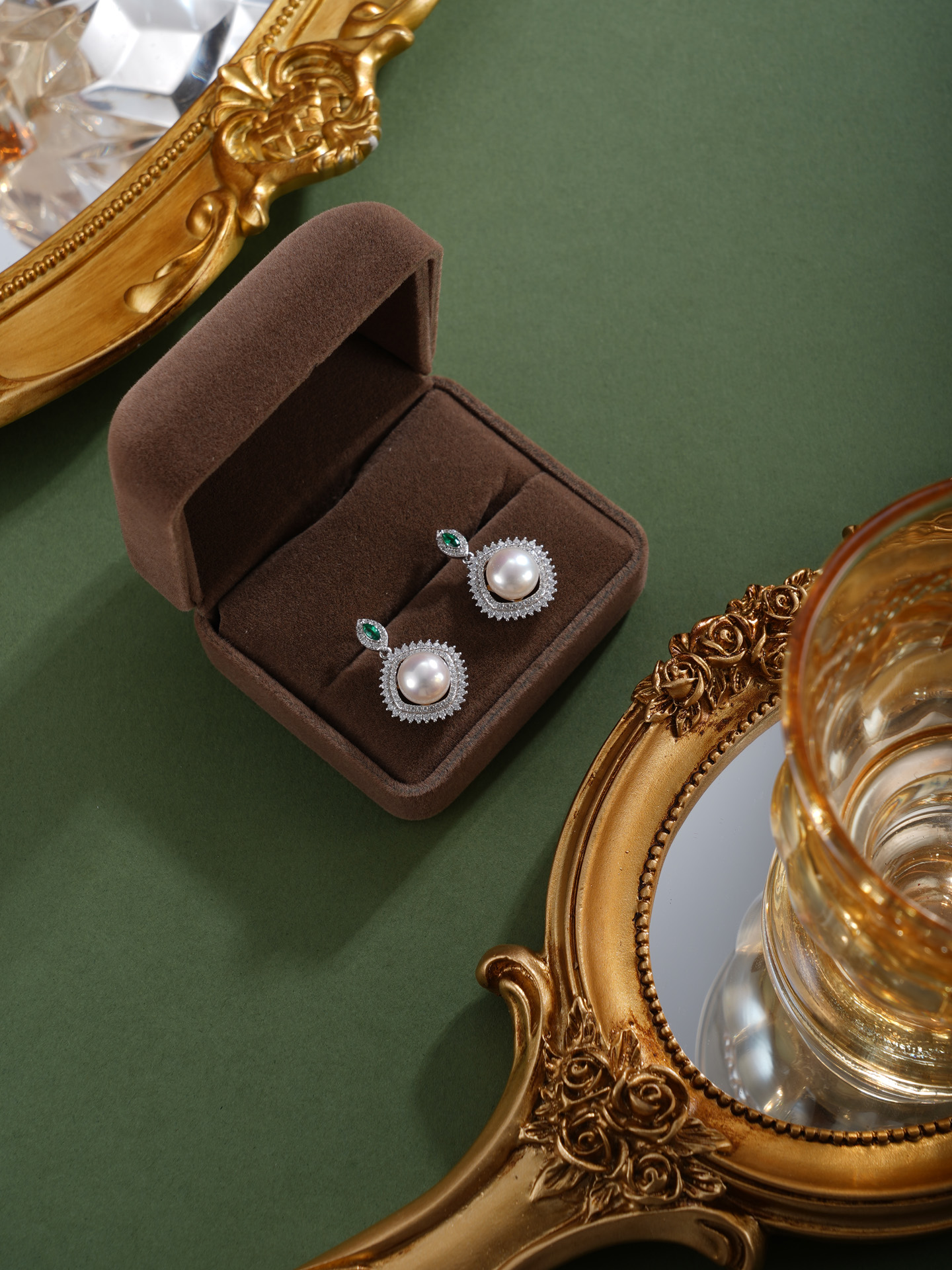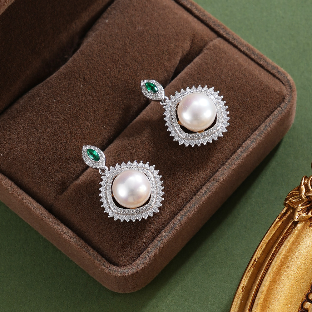 子佩集【璀璨柔情】银S925珍珠惜王妃耳钉【EM2936-XF】方块四方绿点2602