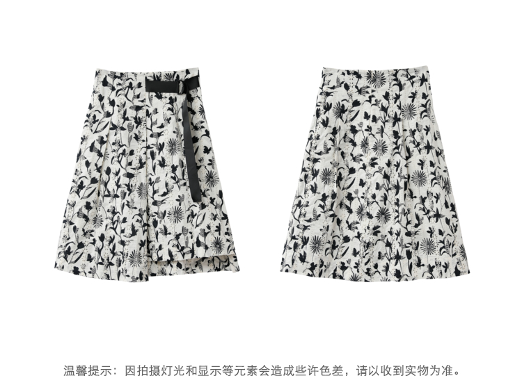 NEELLY纳俪商场同款夏季黑白印花半身裙女收腰系带A字裙百搭通勤N23044E04404