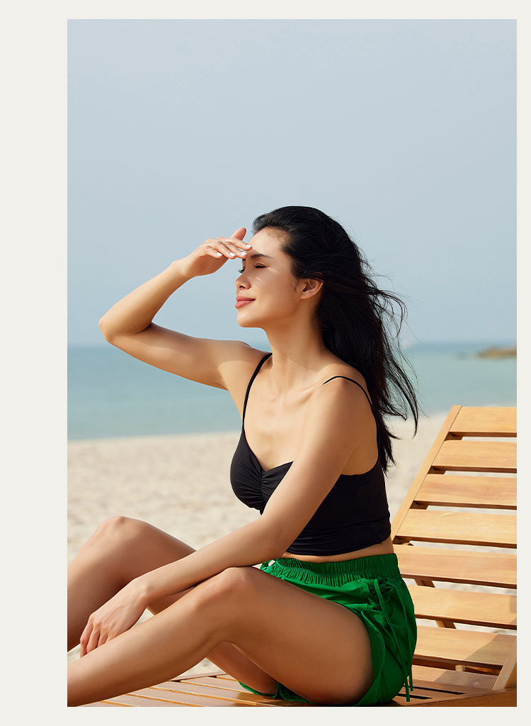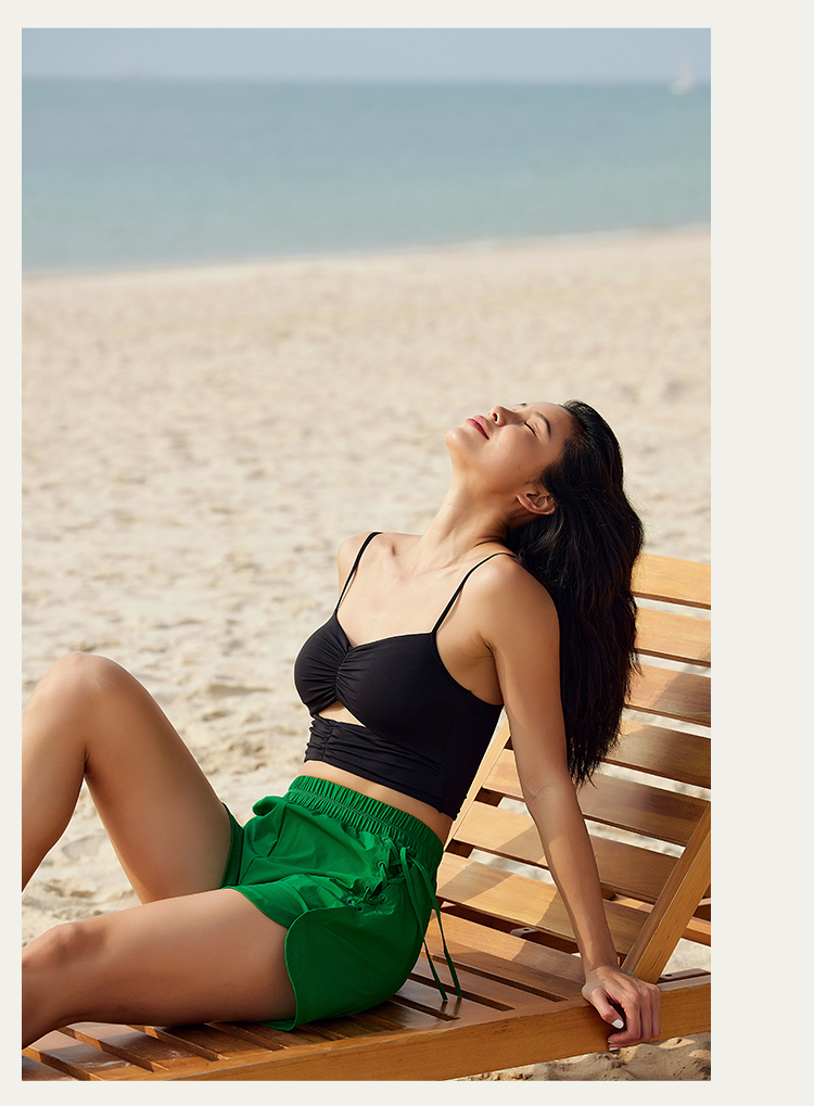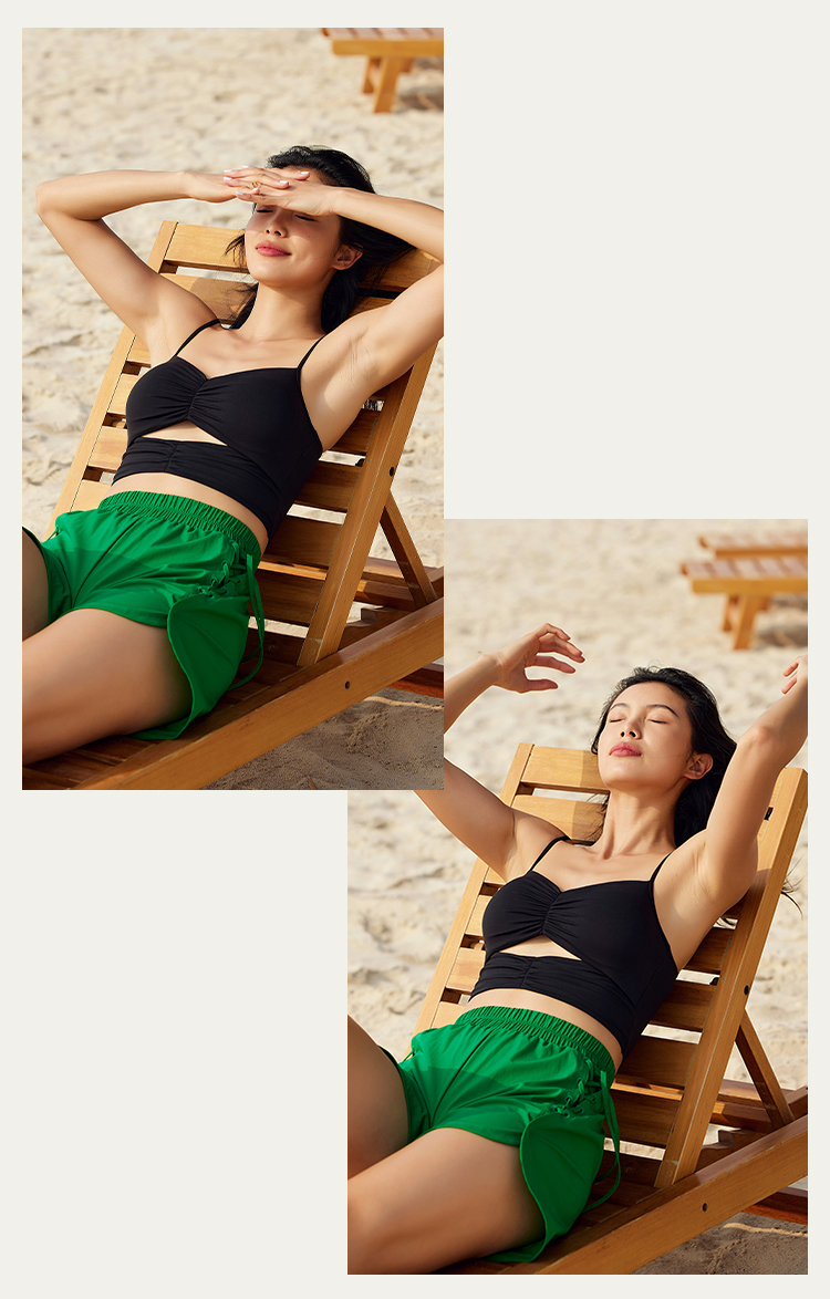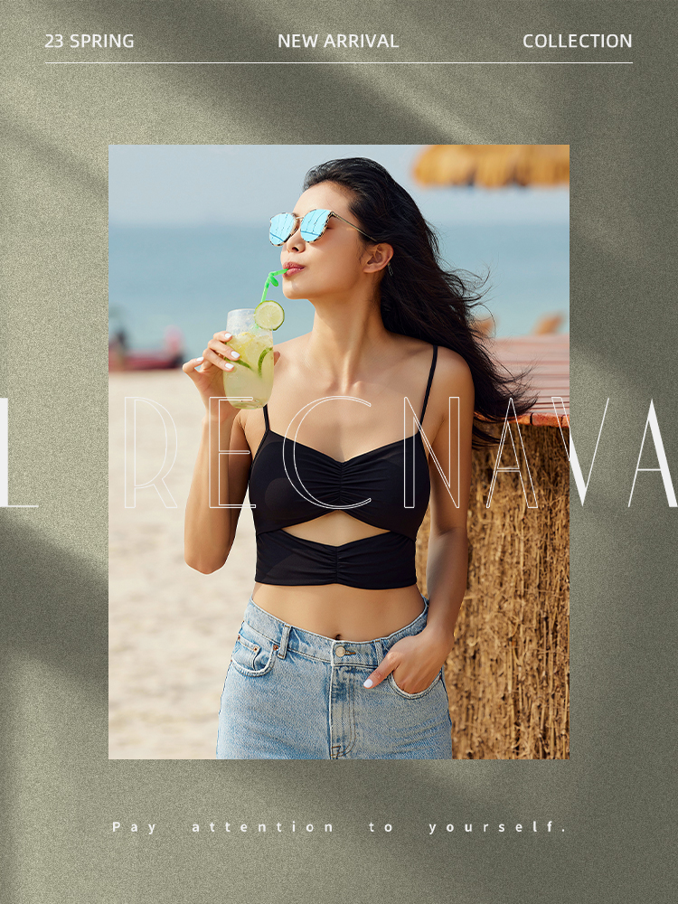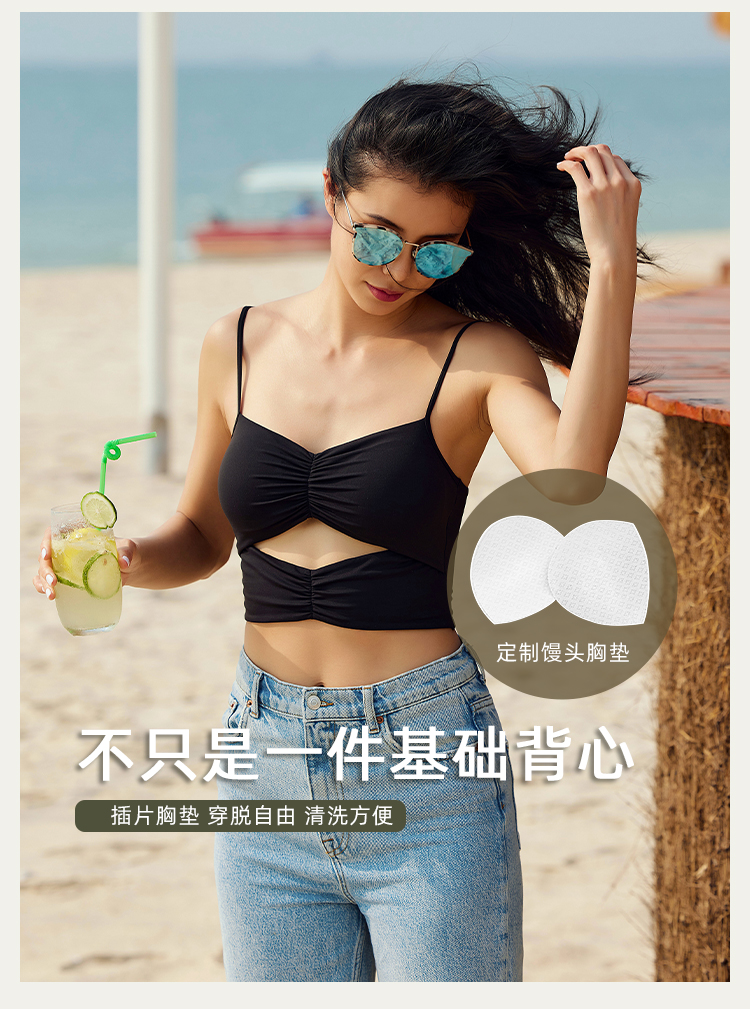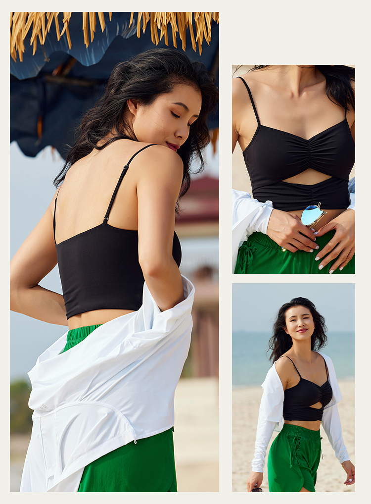 【锦氨面料】抽皱镂空 细肩带运动背心-中低强度