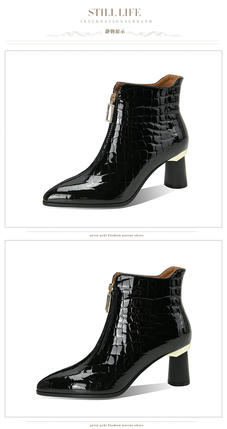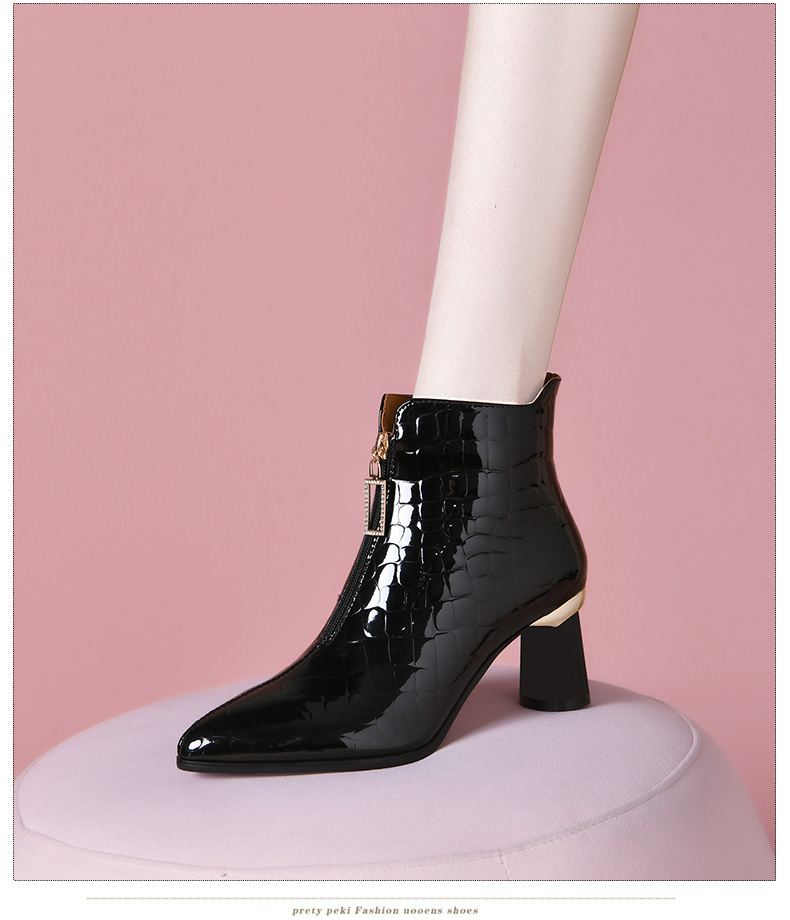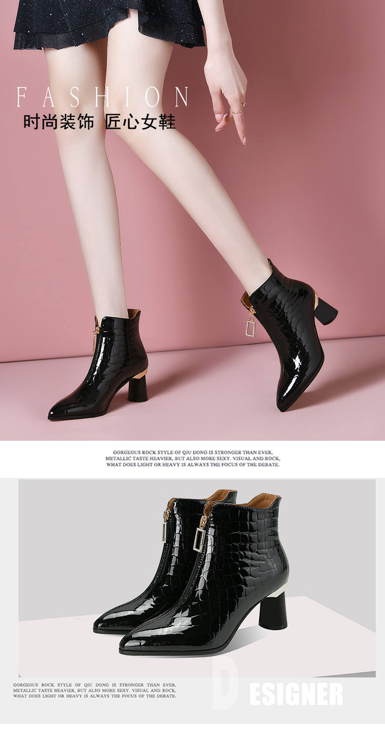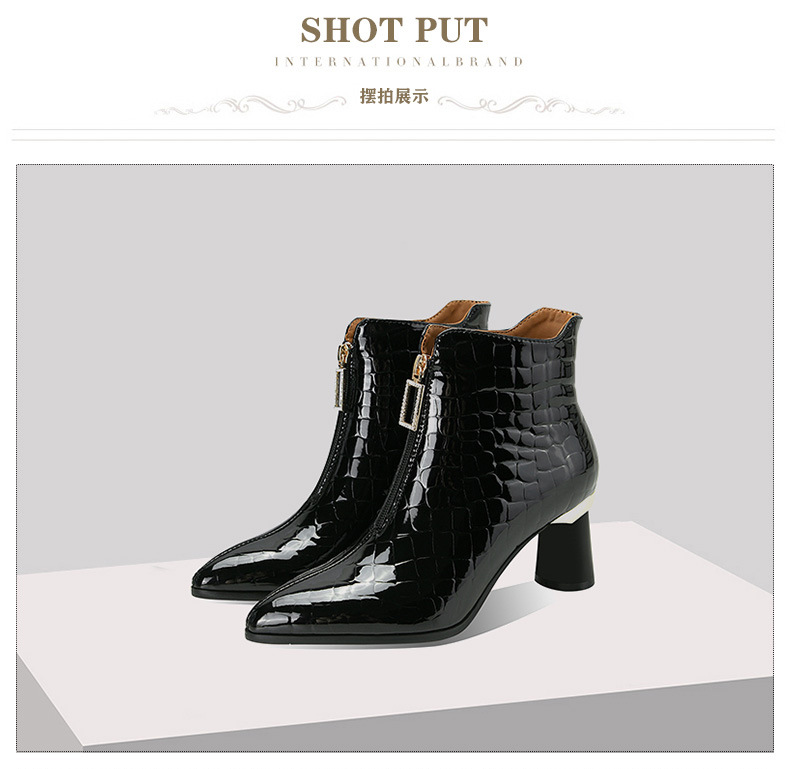 漆皮时装水钻前拉链粗跟时尚尖头高跟女靴OLD-832-h31aa