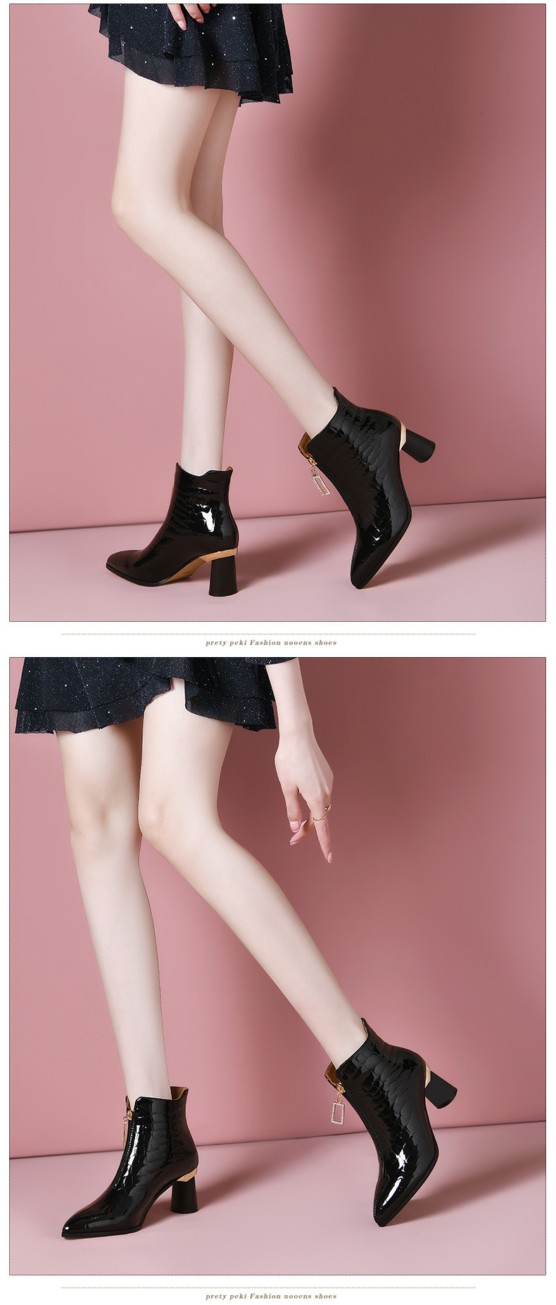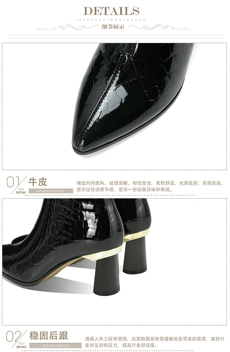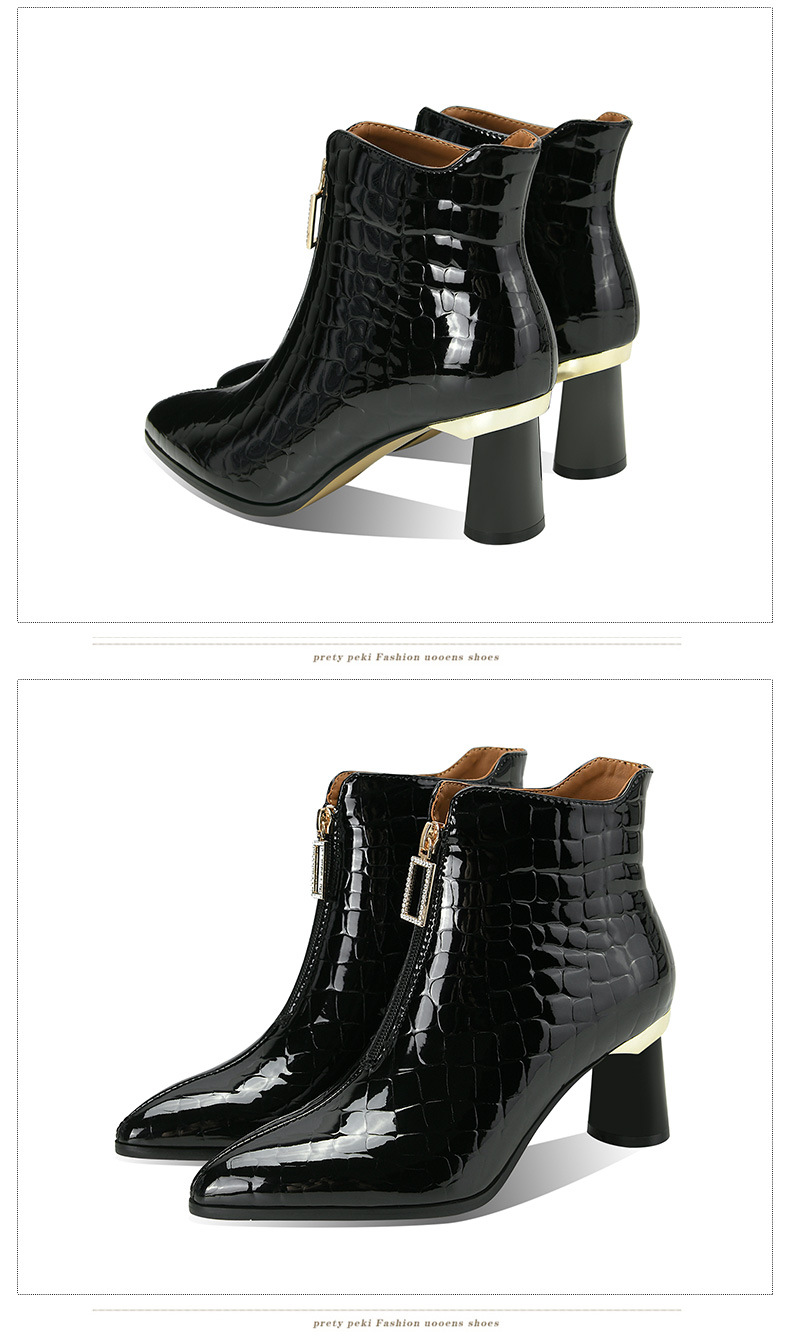 漆皮时装水钻前拉链粗跟时尚尖头高跟女靴OLD-832-h31aa