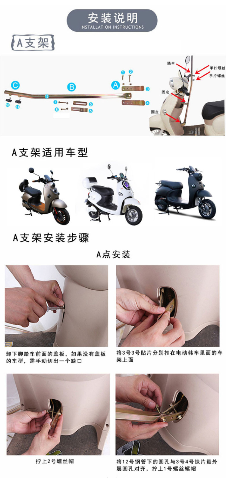 电动车雨伞快拆可折叠电瓶车蓬防晒挡雨棚踏板摩托车遮阳雨伞