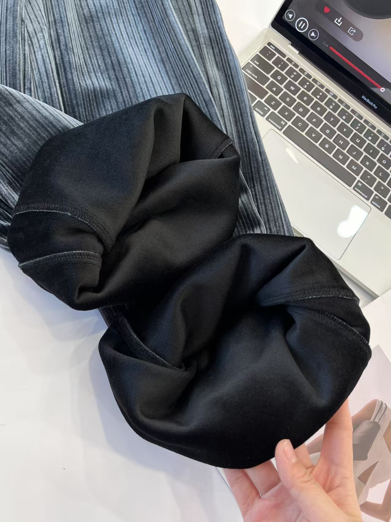 92%聚酯纤维➕8%氨纶,高级丝绒质感,绒面很细很密,摸起来很软糯,比丝绒好打理且抗造很多弹性紧实不易变形,随意机洗无压力!内里超细婴儿绒,细腻爽滑,柔润亲肤,蓄热保暖贴身不反凉!