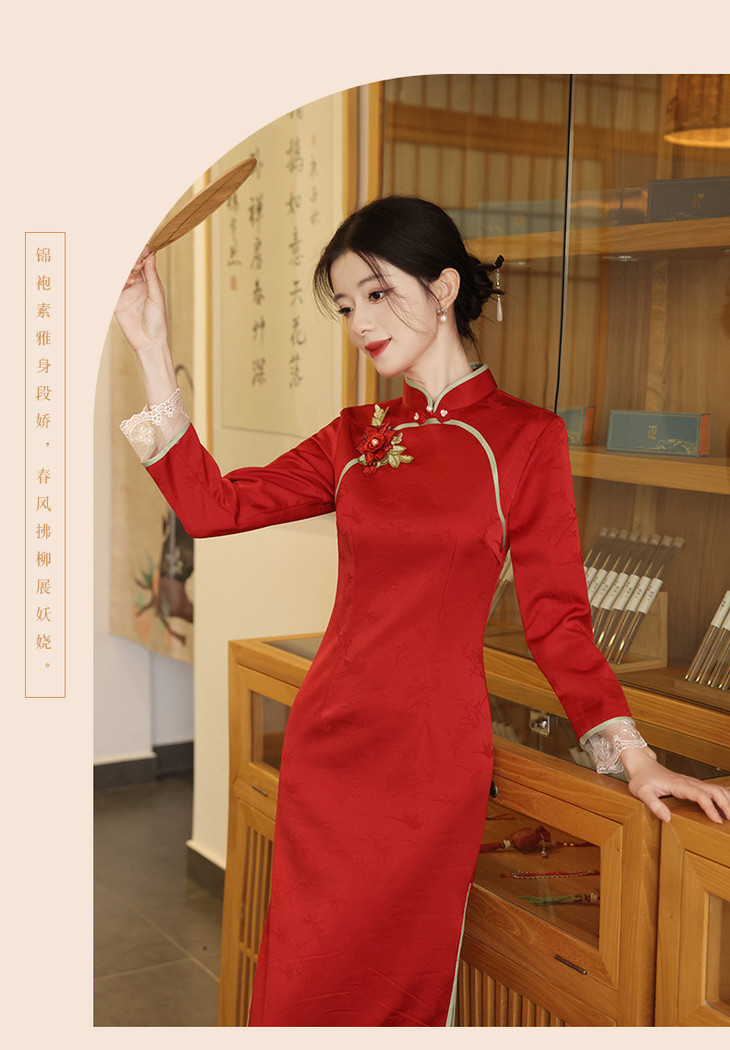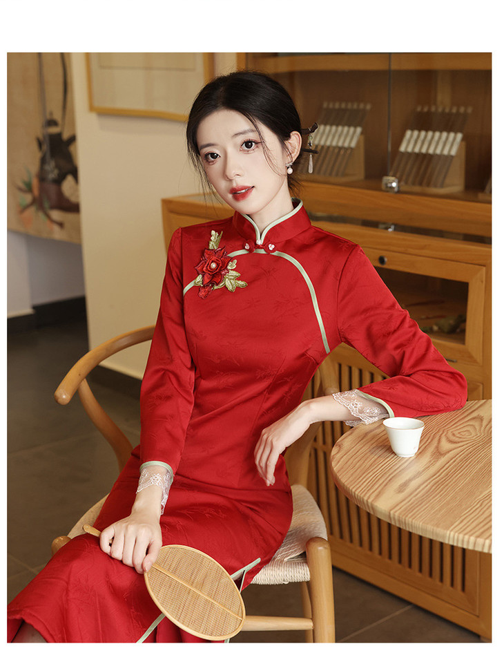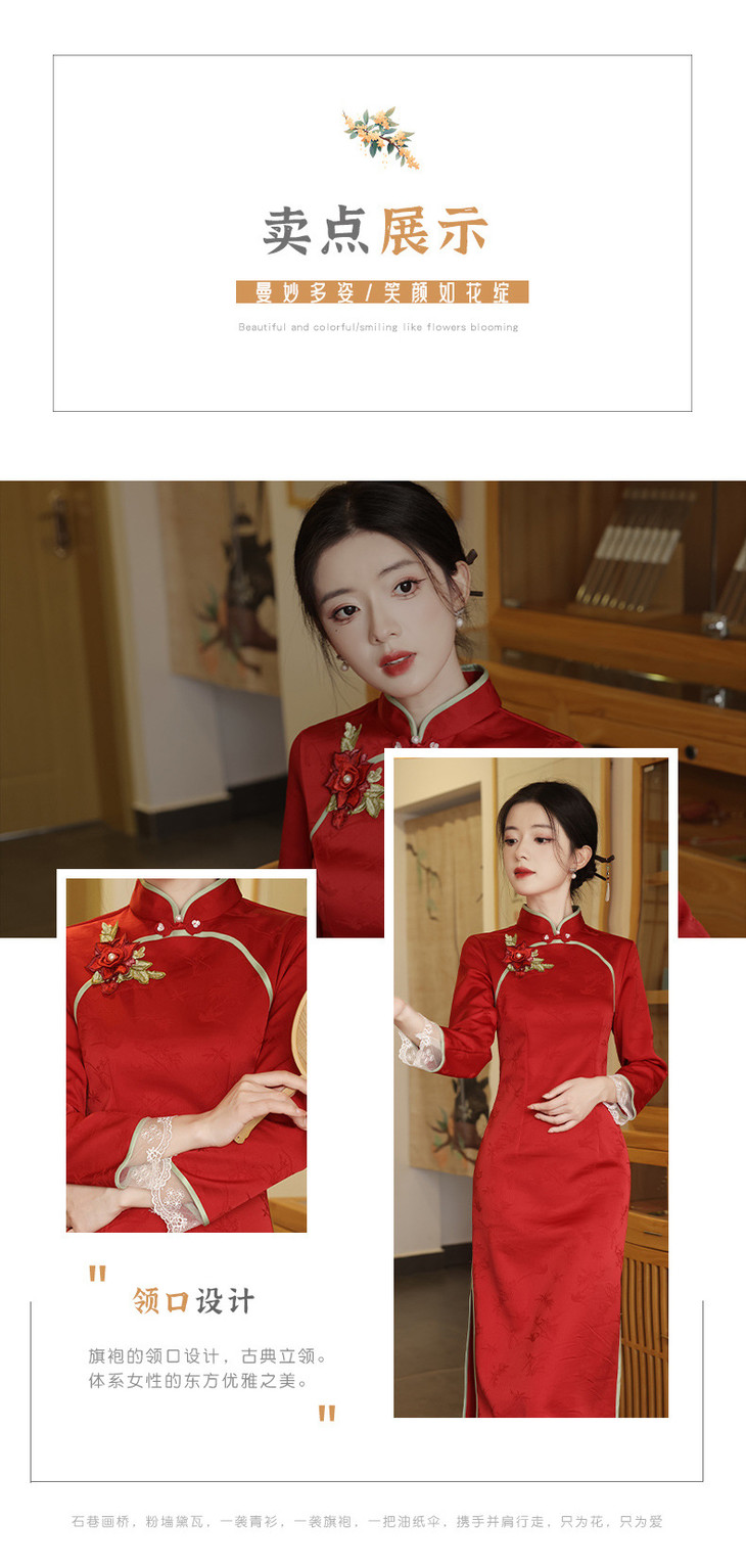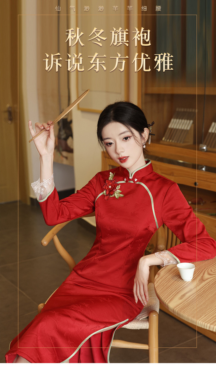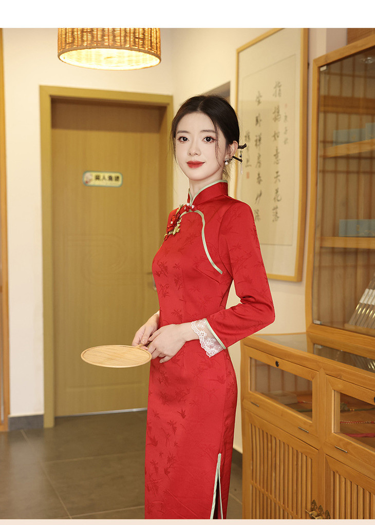 2023秋冬新款加绒加厚红色回娘家长款改良敬酒服旗袍JQZ-864