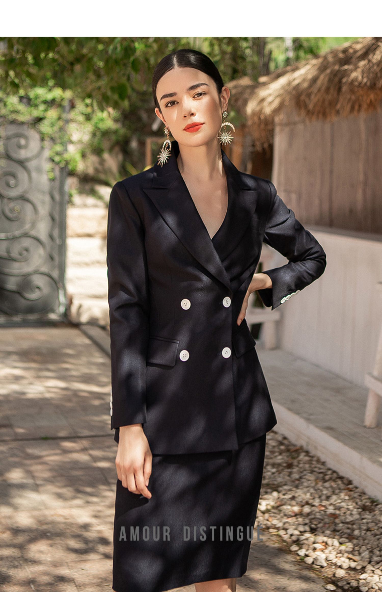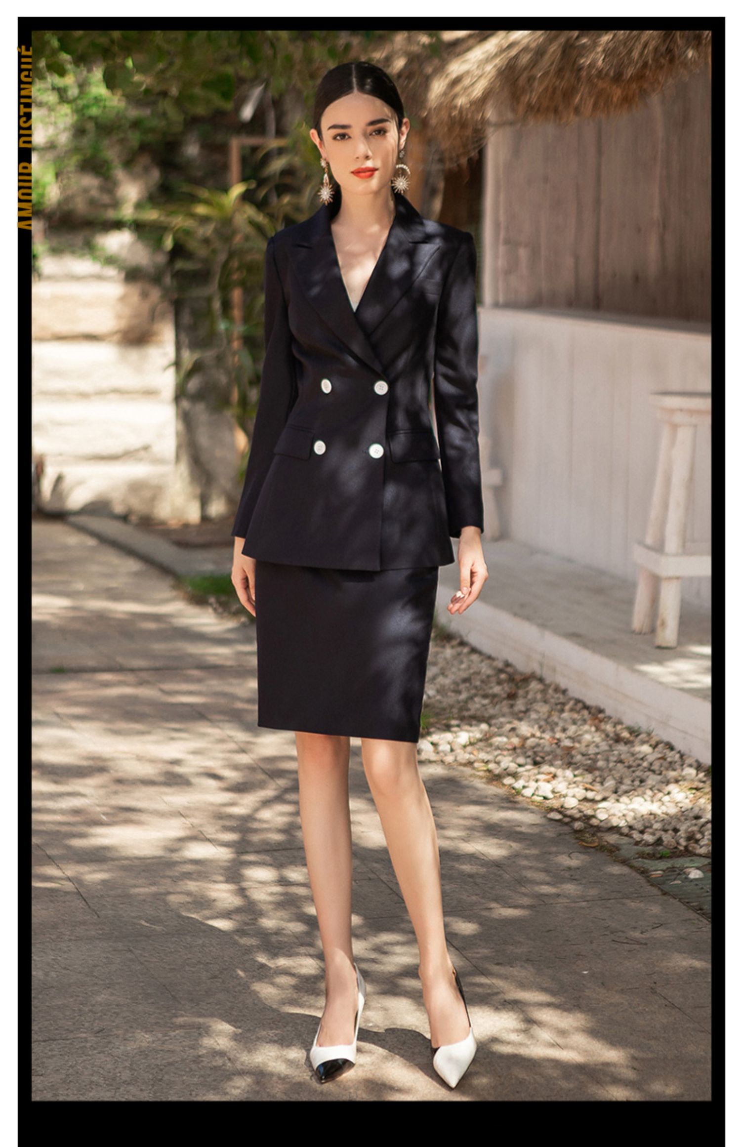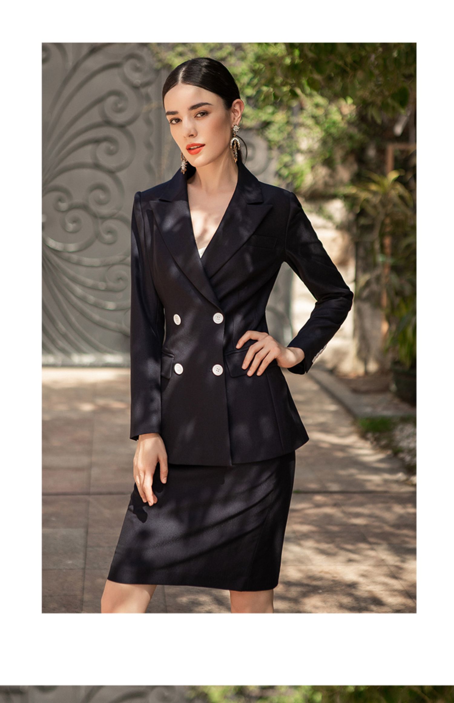 IWY/藏青职业装女正装套装英伦风高端时尚西装套裙气质通勤面试工作服 C1356+S1112
