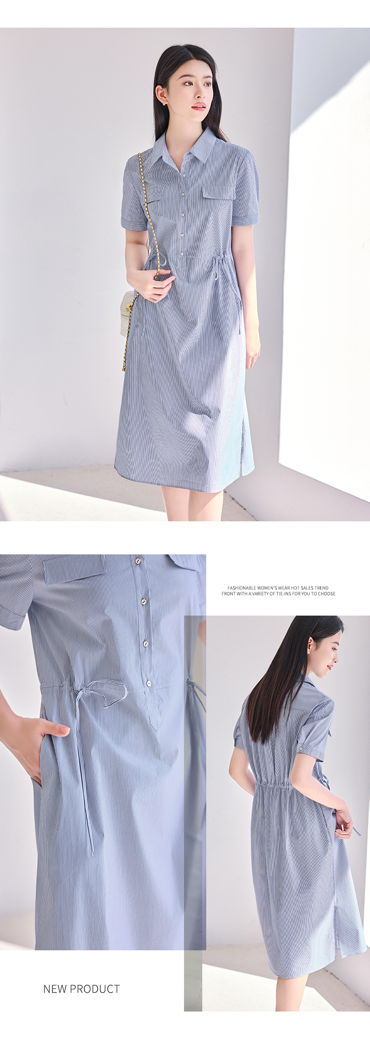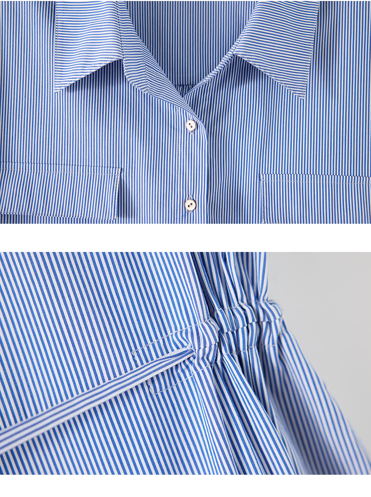 【商场同款】CND4580 “ 气质条纹衬衫裙 ” 蓝白条纹干净清爽 H型造型系带收腰 有造型感显瘦好穿 高支棉质地细腻、手感柔和