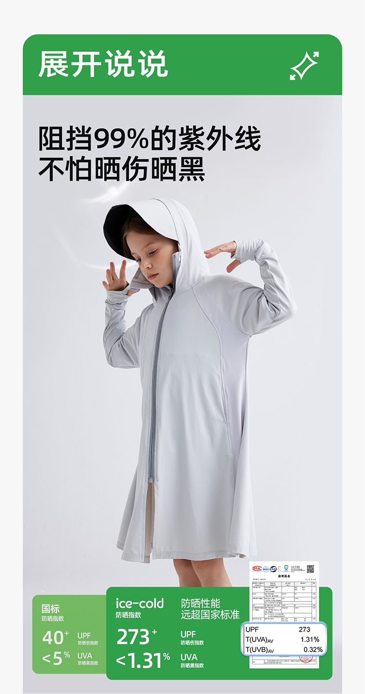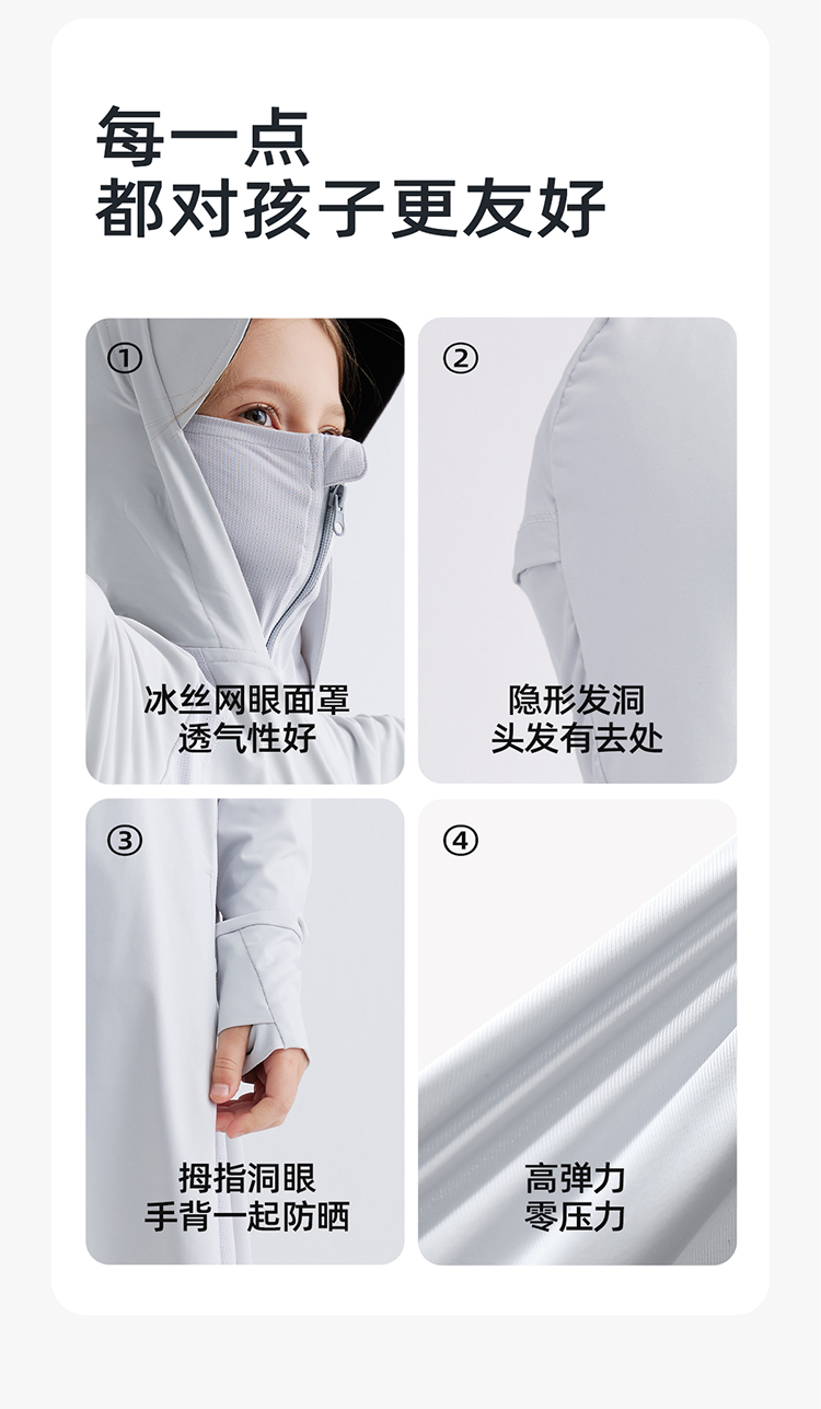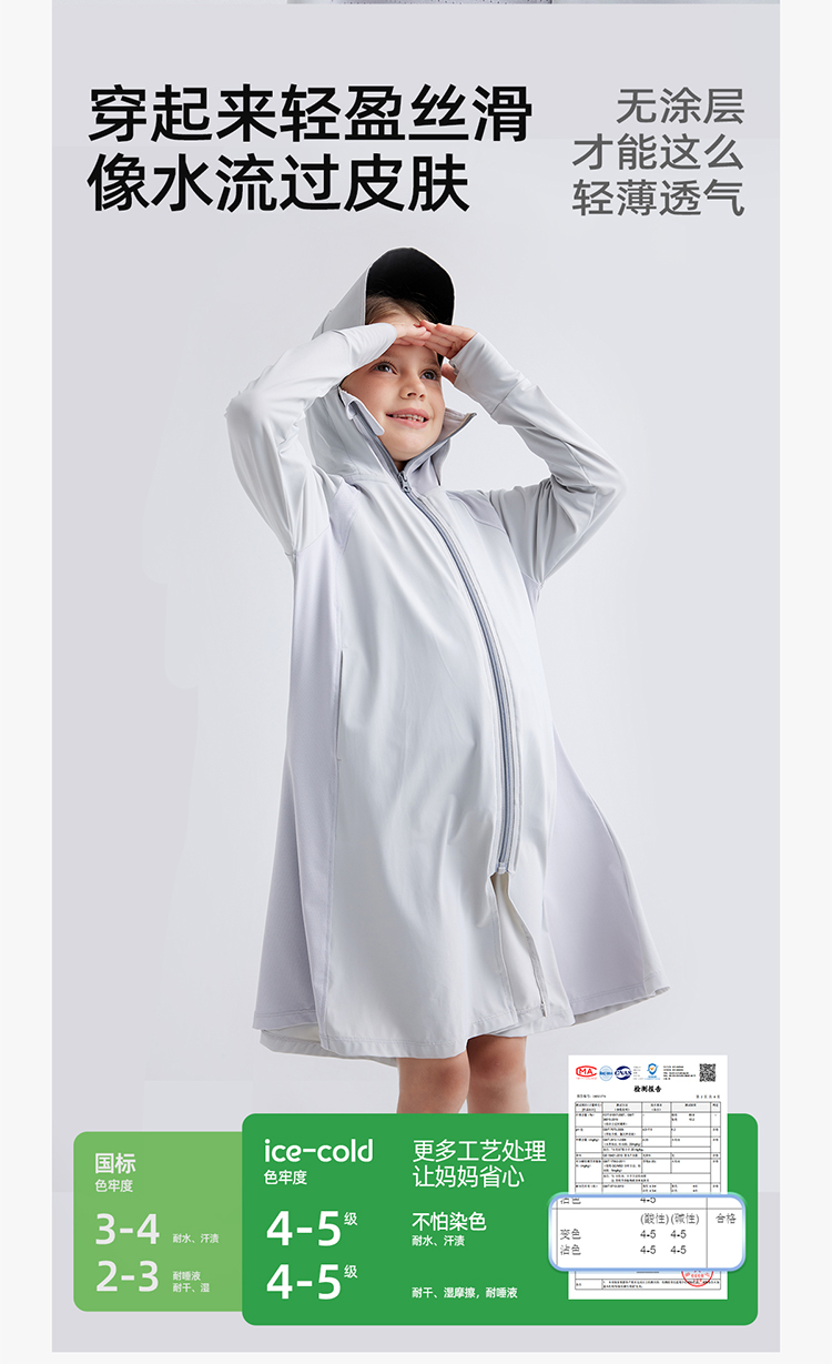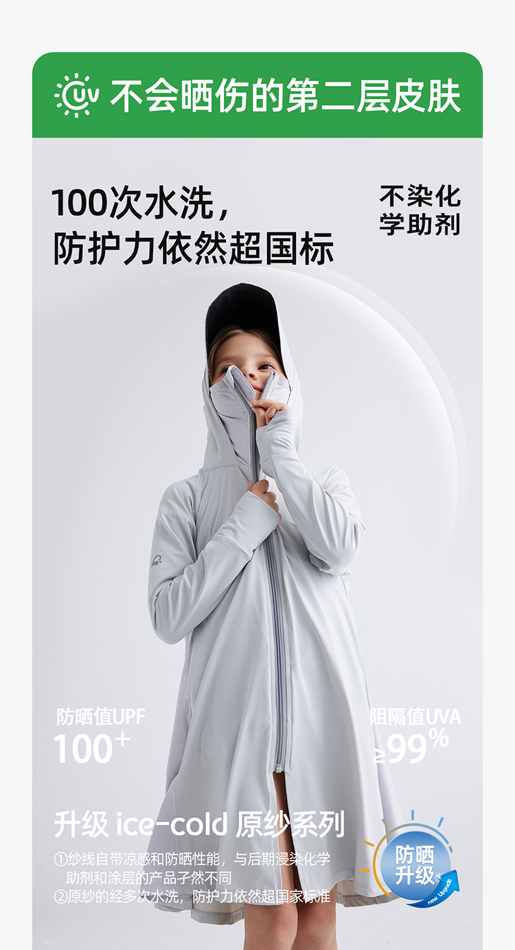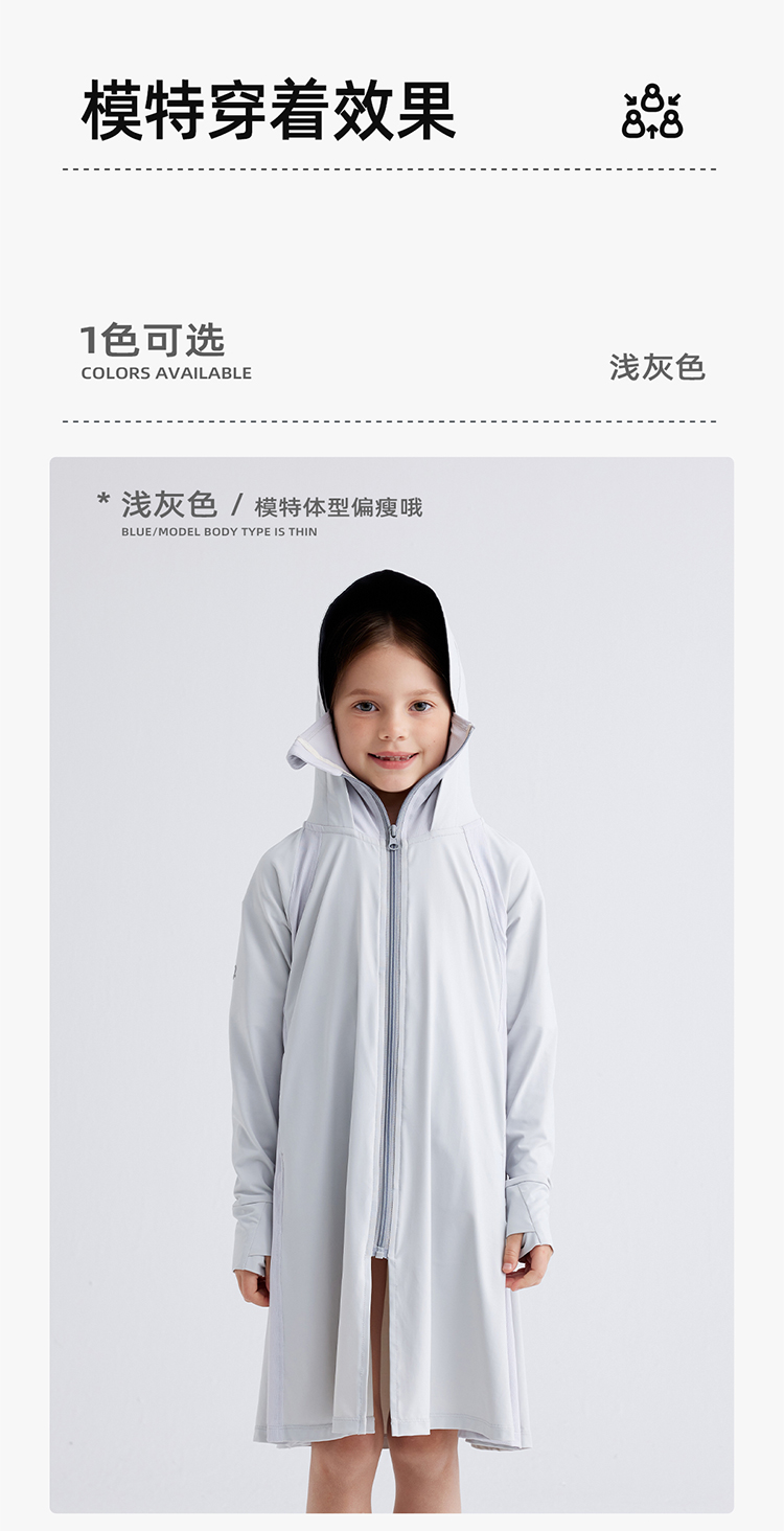 【冰皮凉感原纱防晒】儿童长款冰皮防晒服 PXW2411