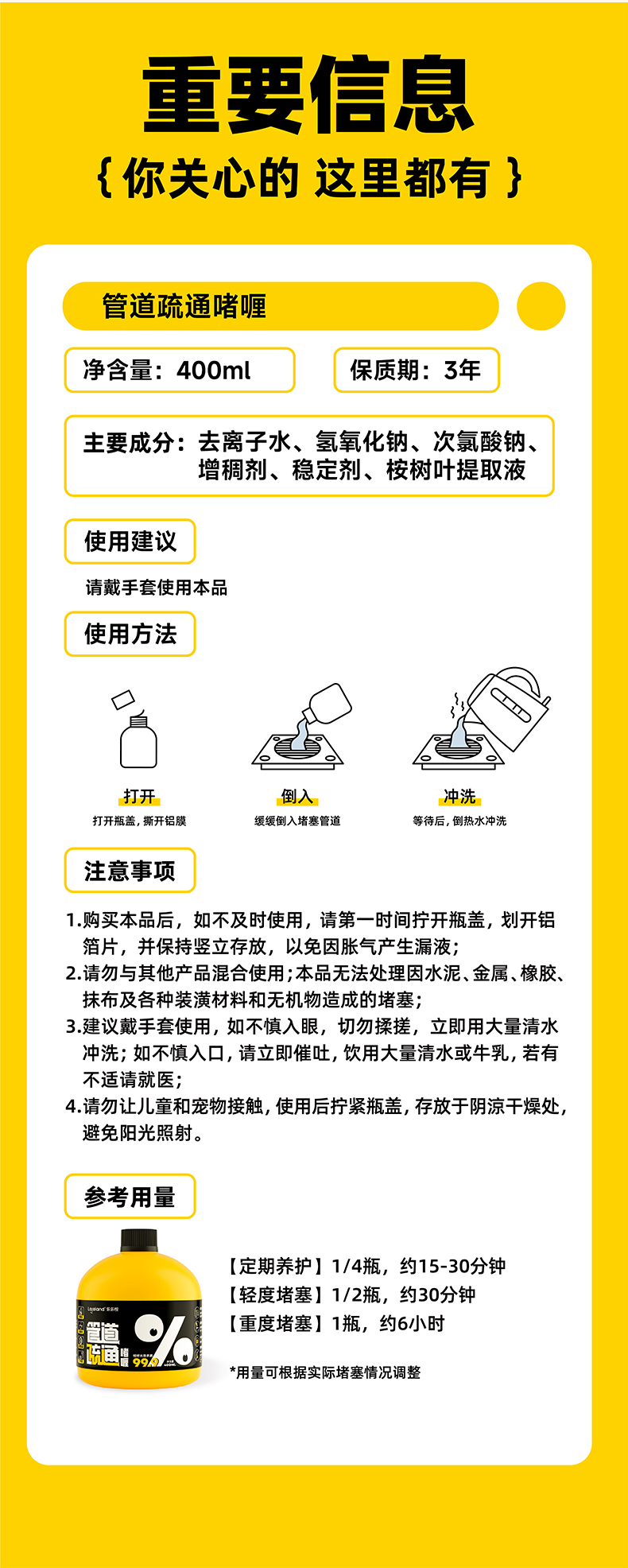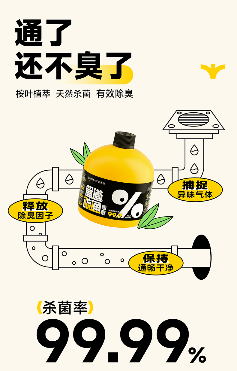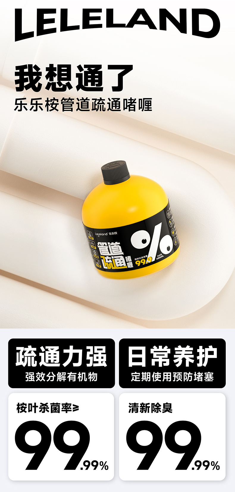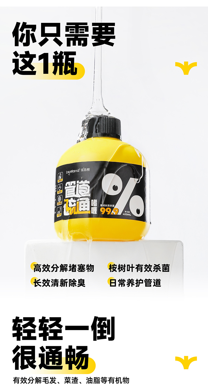 【通了还不臭】乐乐桉管道疏通啫喱 分解堵塞物 清新除臭 挂壁持久 不喷溅 不稀释 养护管道 1瓶应对多种管道