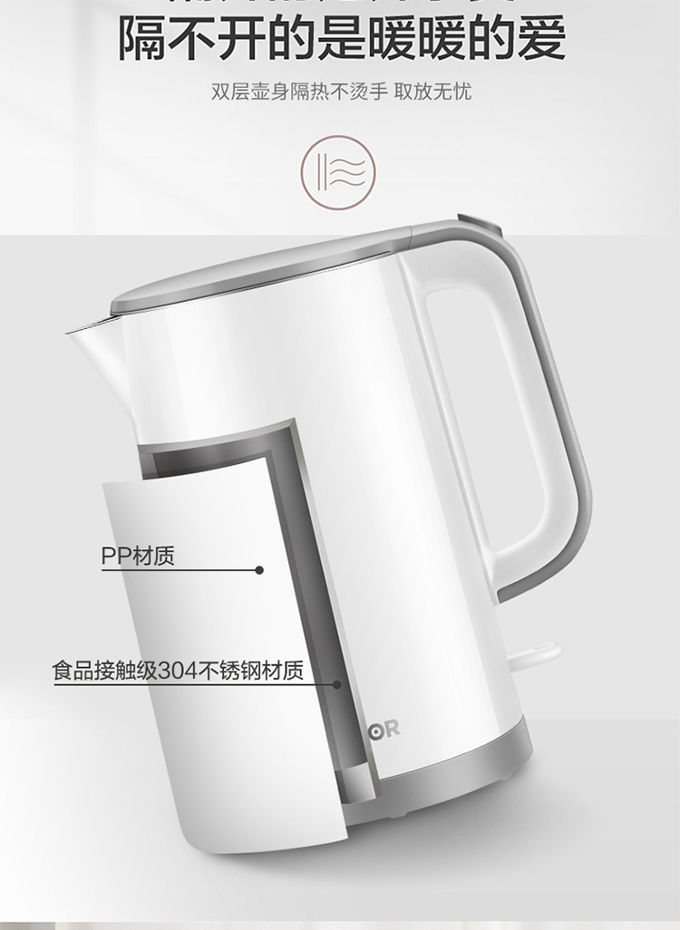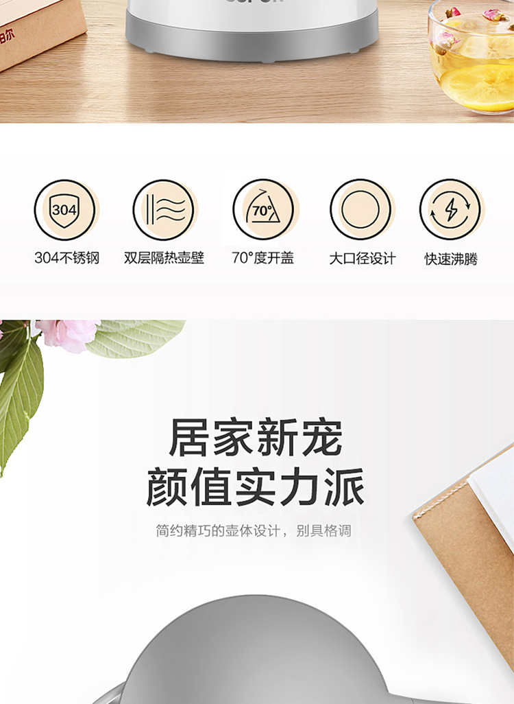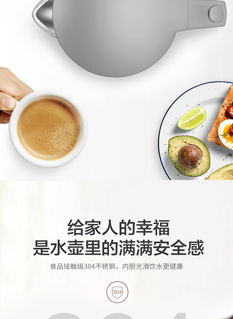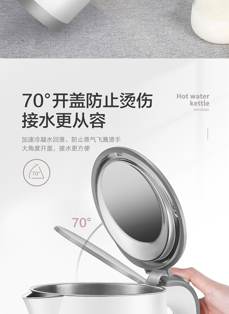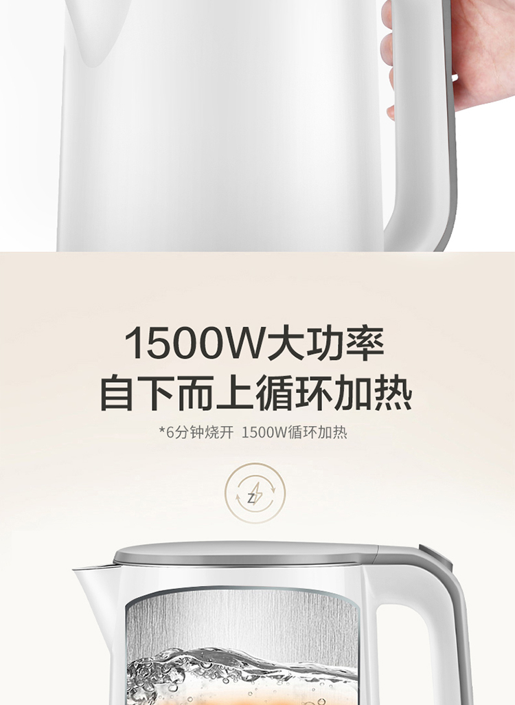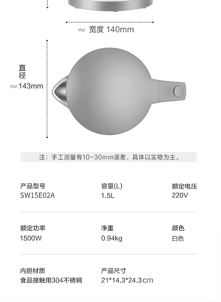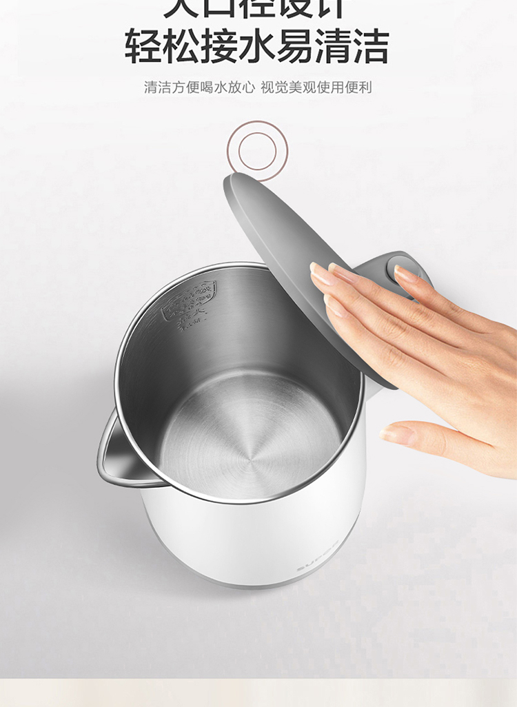 苏泊尔(SUPOR)1.5L容量电水壶 304不锈钢无缝内胆 双层隔热壶壁 1500W快速沸腾 SW-15E02A