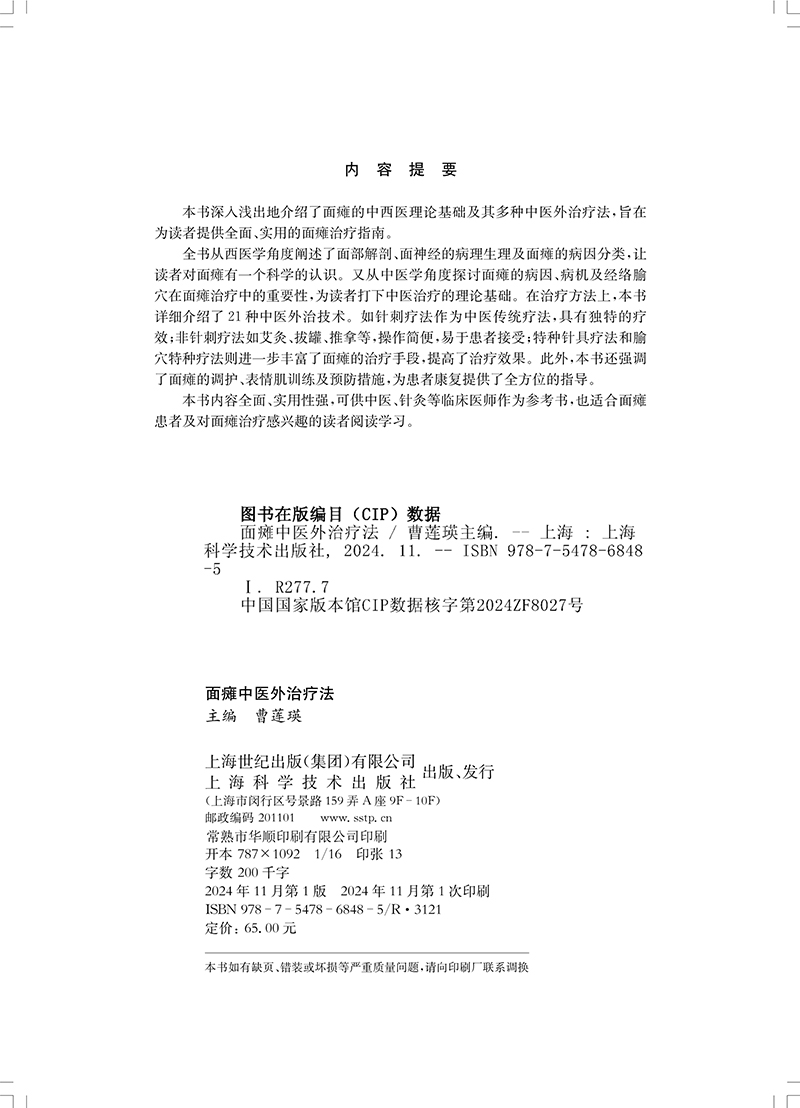 书名:面瘫中医外治疗法