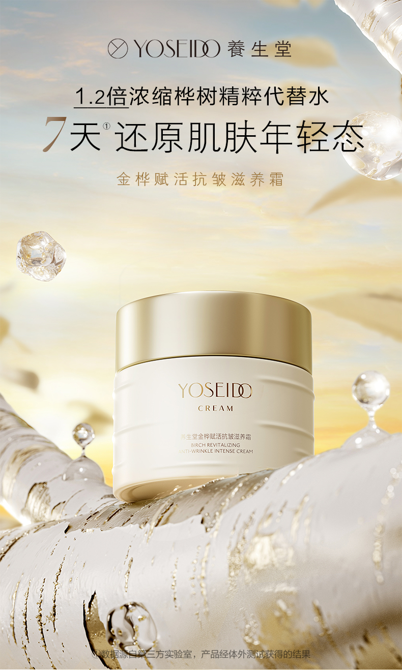 养生堂YOSEIDO,高端护肤品牌。专研白桦原液•来自北纬45° 的细胞抗老成分,源自1772年《丹麦药典》。不额外添加一滴水,让青春永续。
