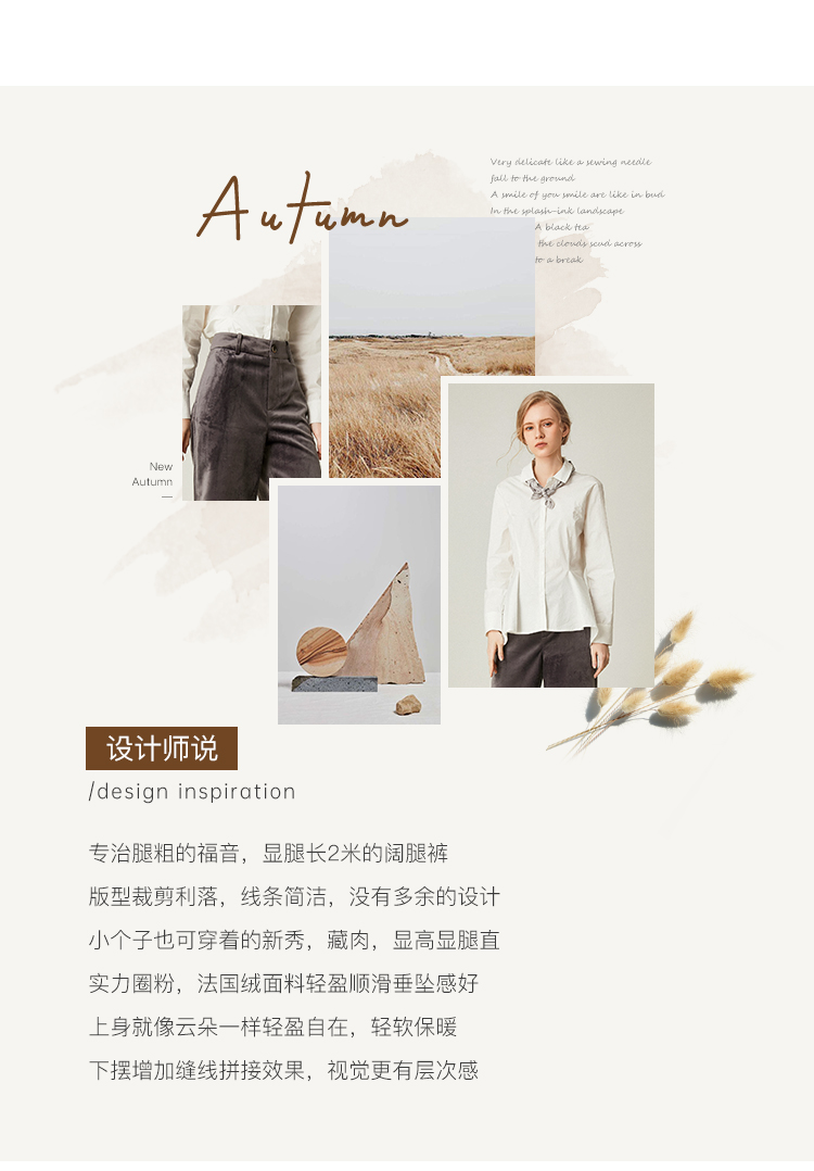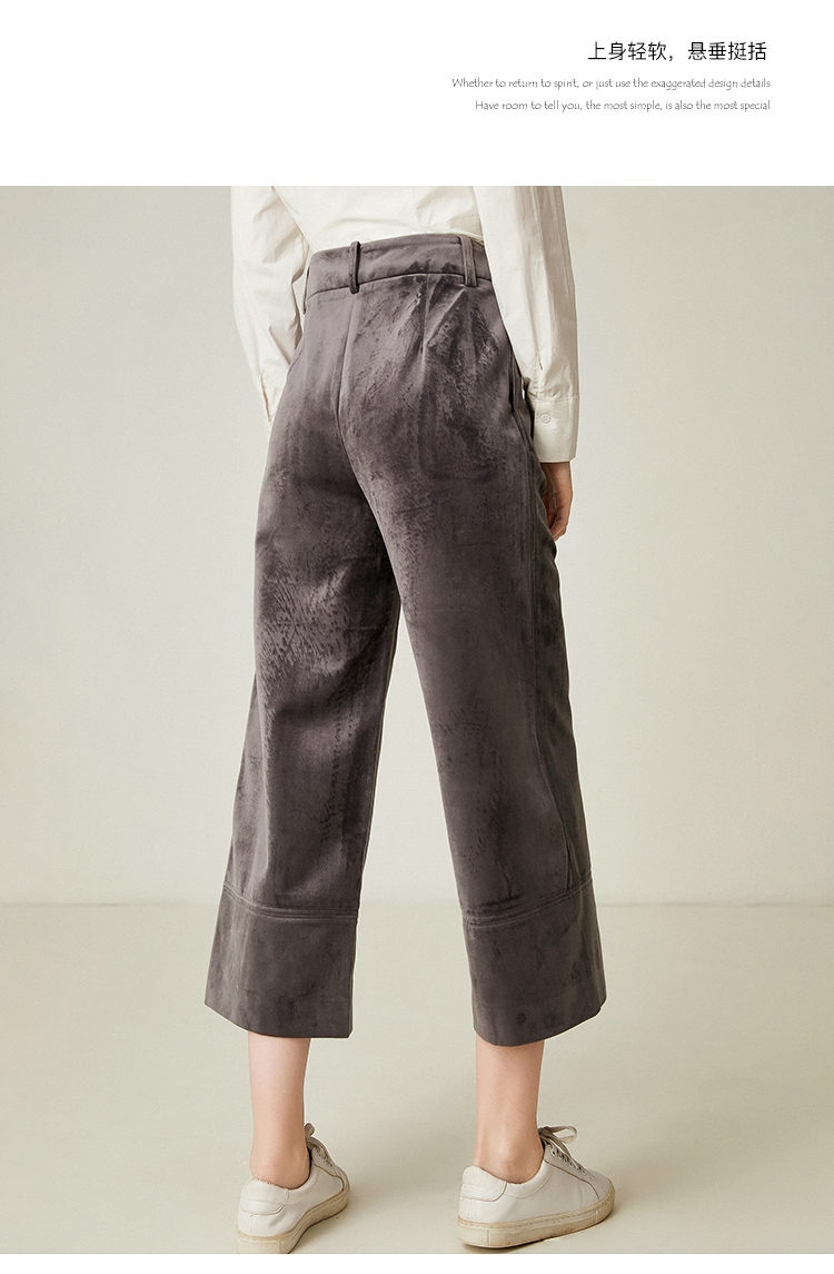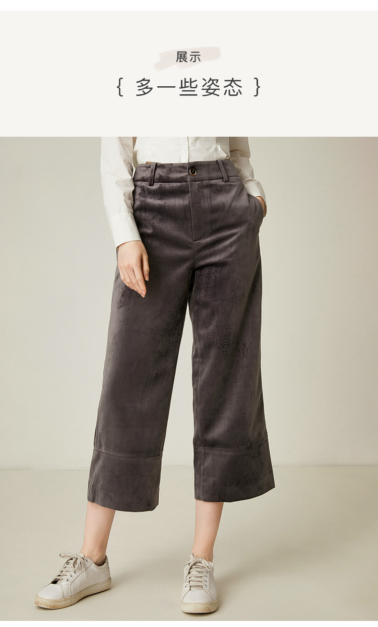 famecoco范可儿秋季休闲裤女直筒宽松阔腿七分裤F185GA014