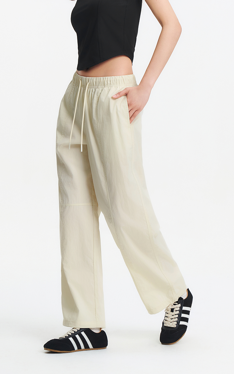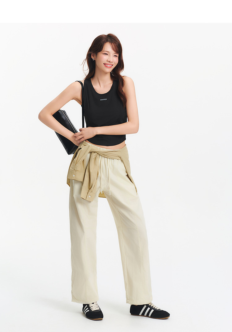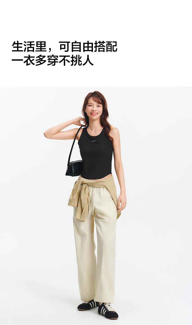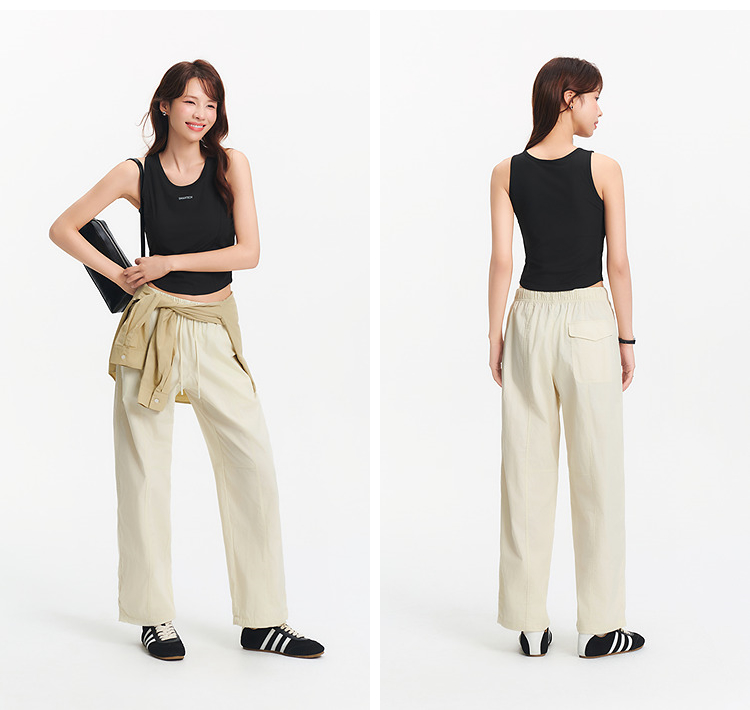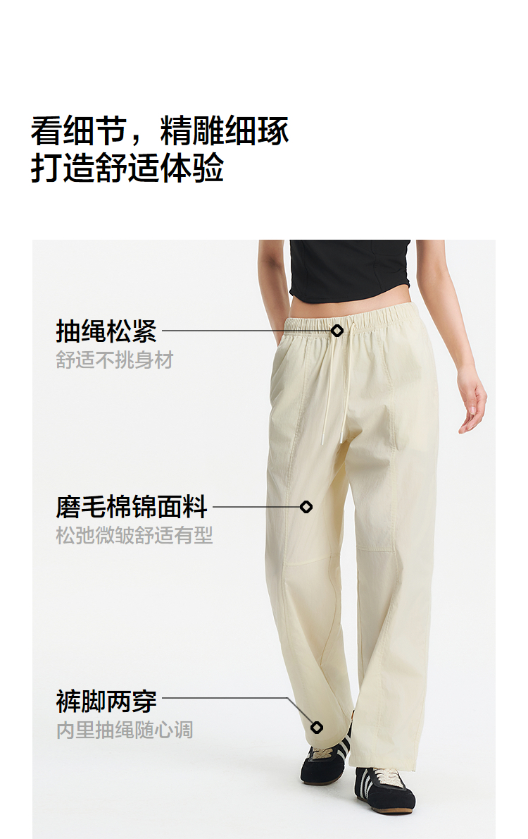 [商场同款]森马休闲裤女抽绳长裤松弛感2025夏新款分割阔腿裤简约