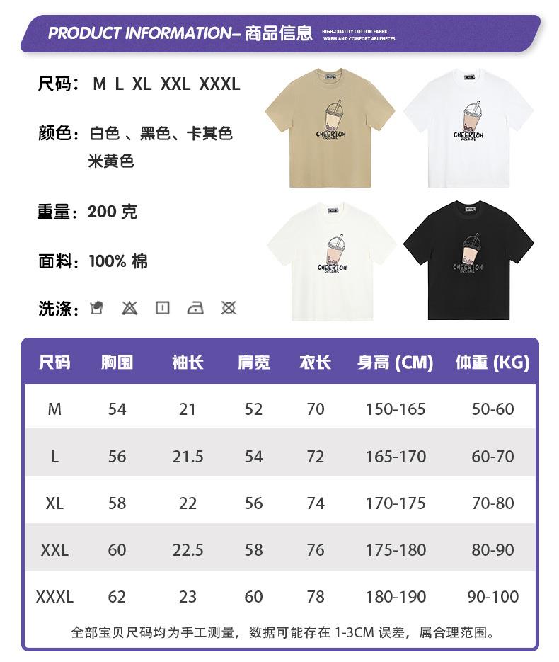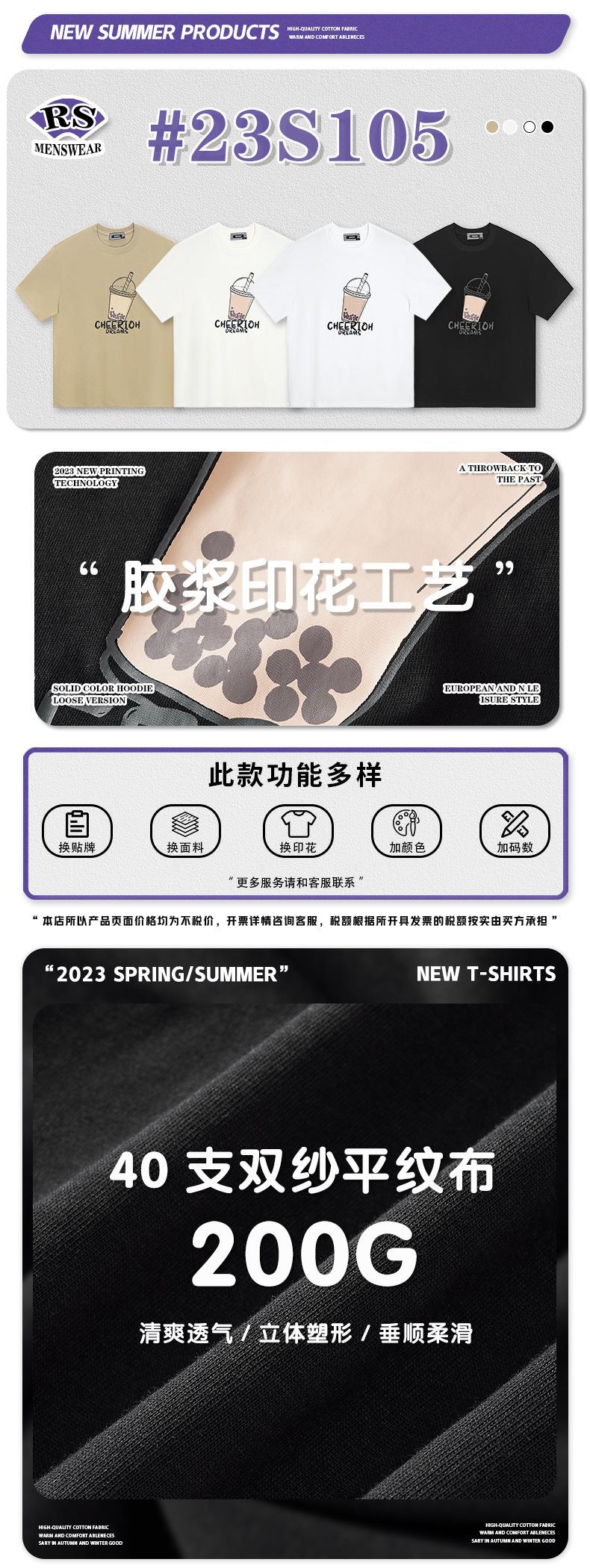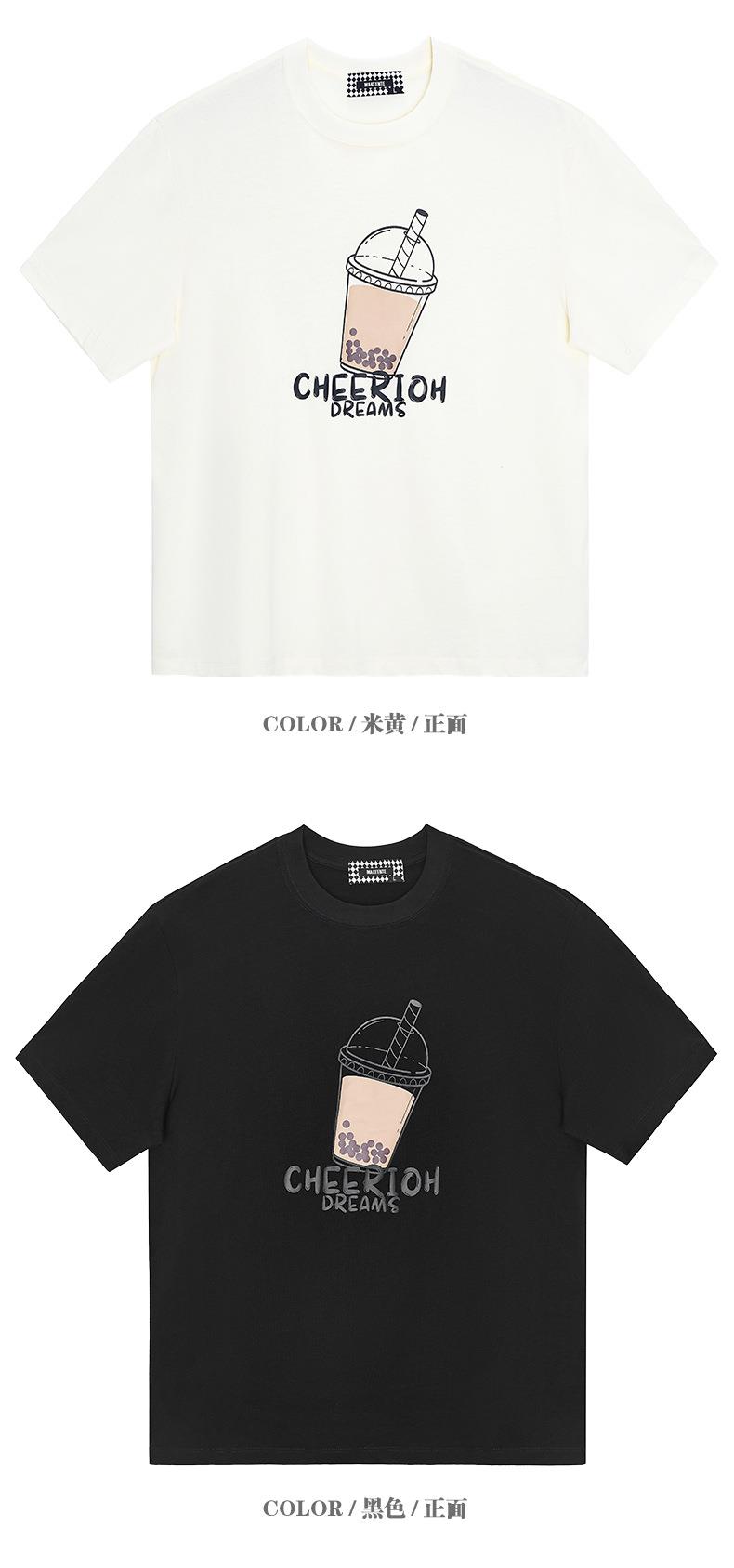 RS男装|2023夏季新款卡通奶茶胶浆印花短袖欧美风外贸休闲男生T恤