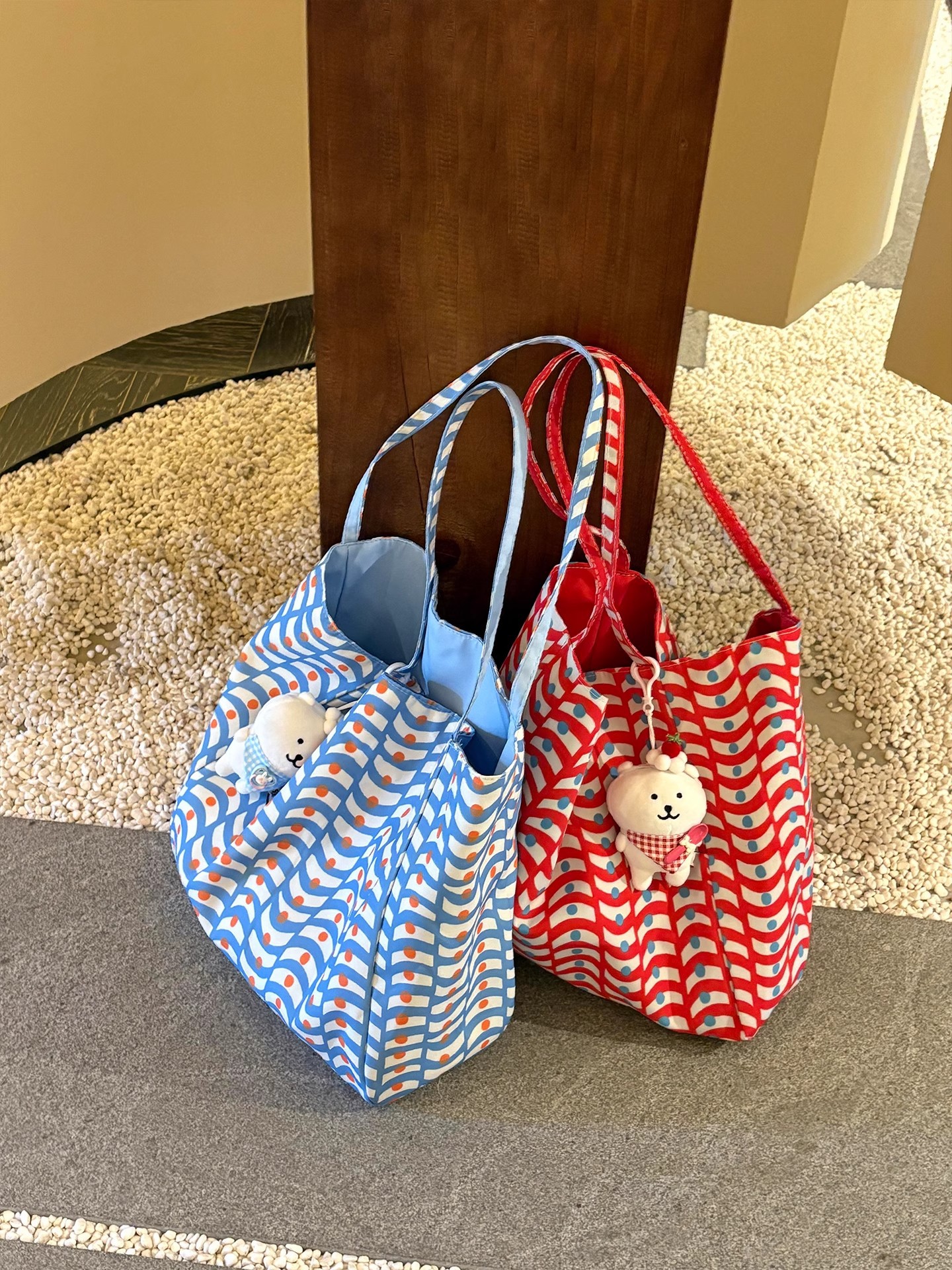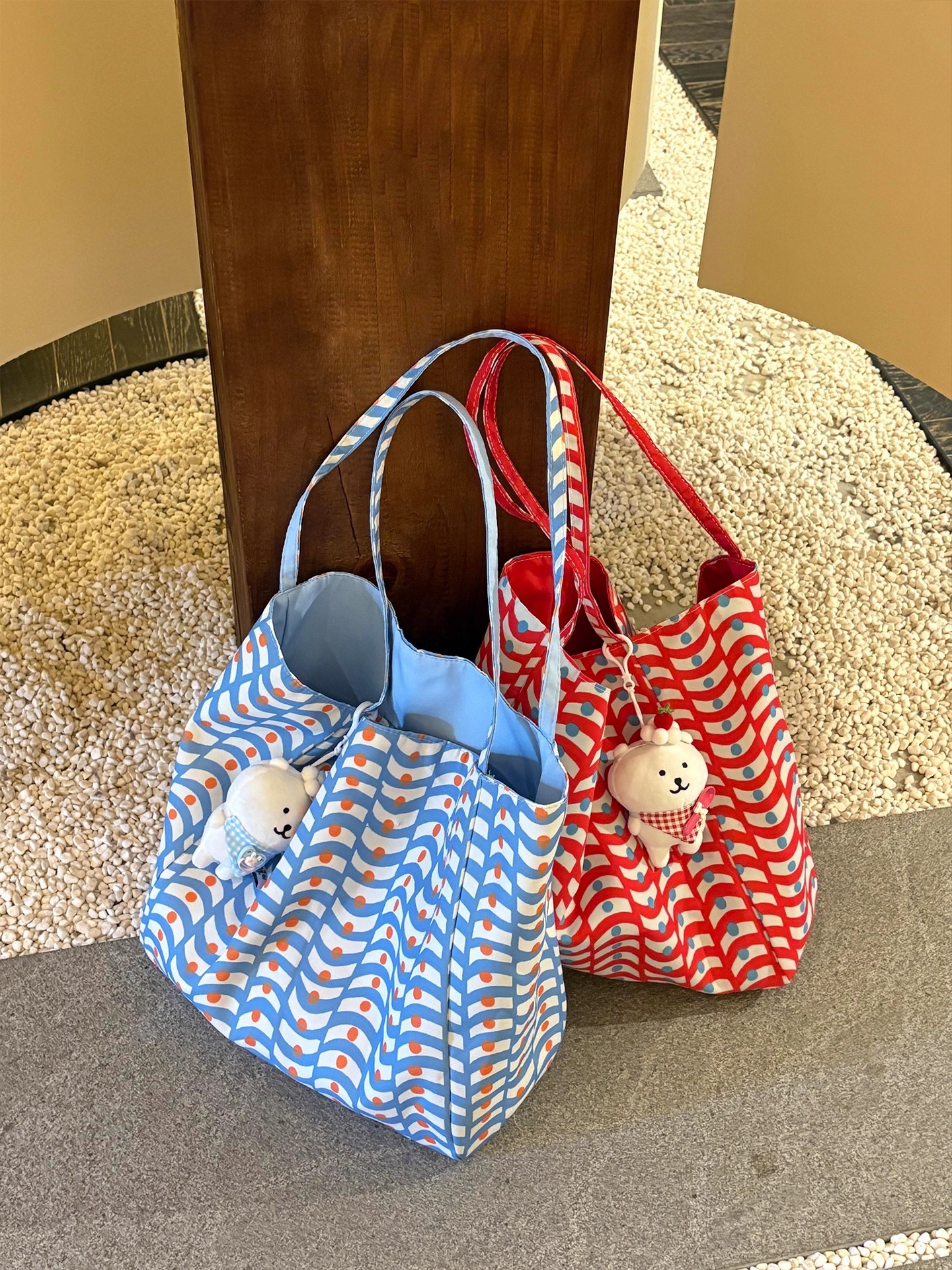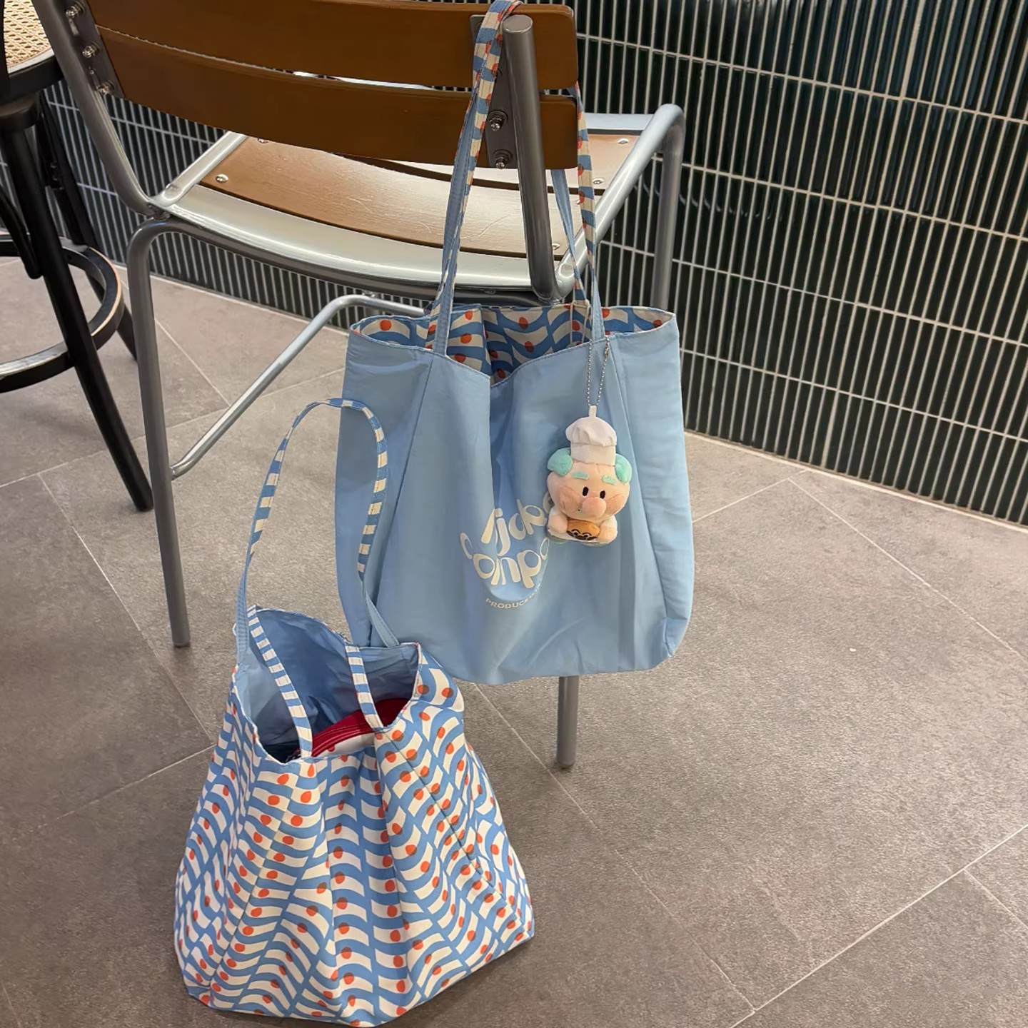 【双面百搭简约风格、通勤休闲两用包】新款大容量双面波浪纹百搭帆布包单肩休闲简约通勤慵懒托特包.TA