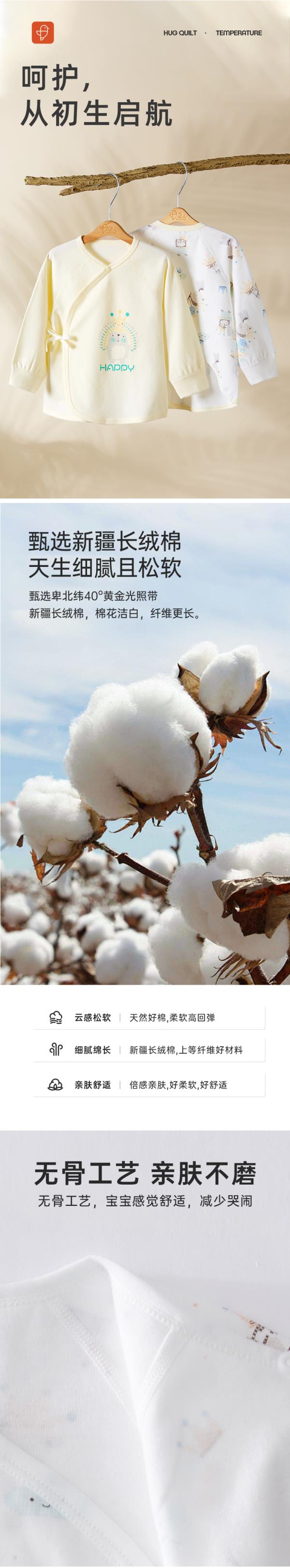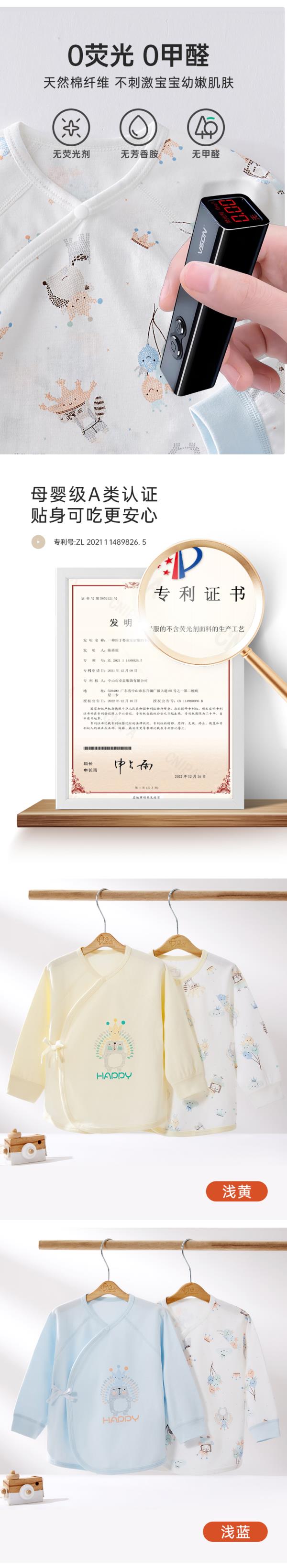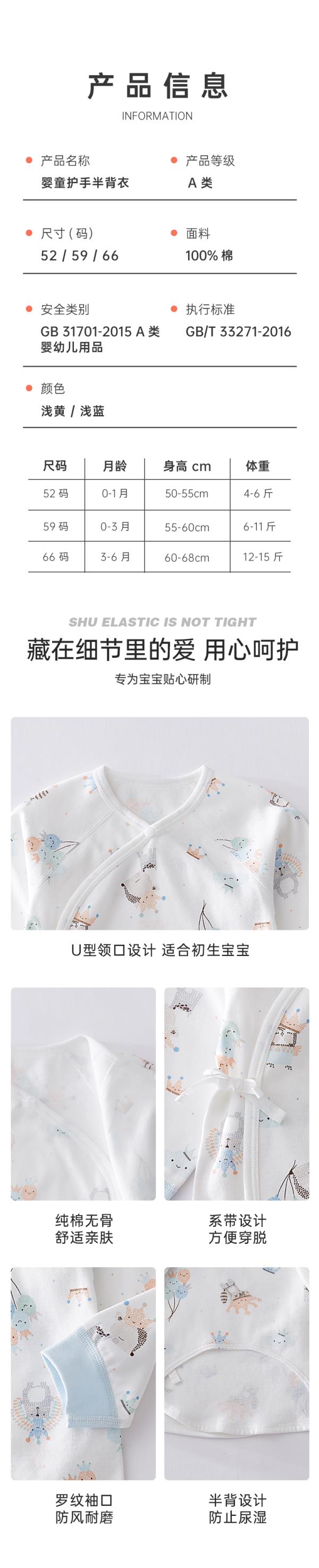 [5A抗菌全棉半背衣]卓儿新生儿纯棉半背衣婴幼儿男女宝宝柔软舒适防湿衫