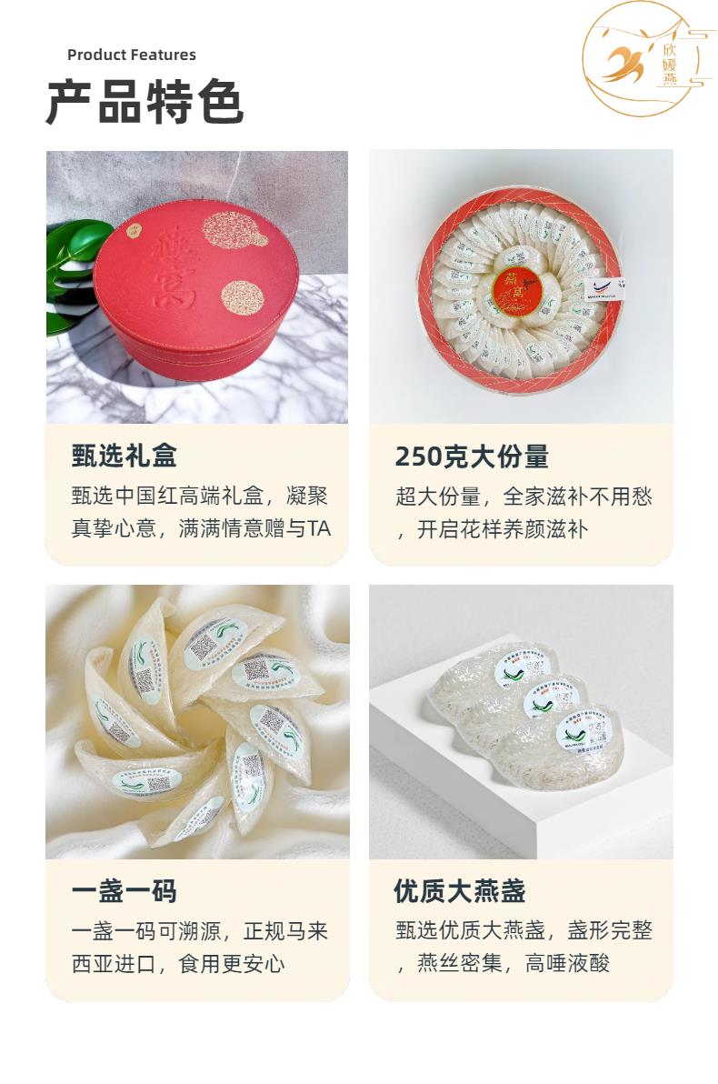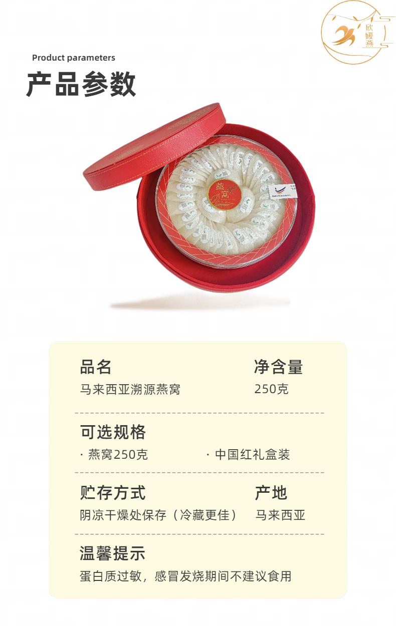 马来西亚进口溯源燕窝250g中国红圆礼盒装