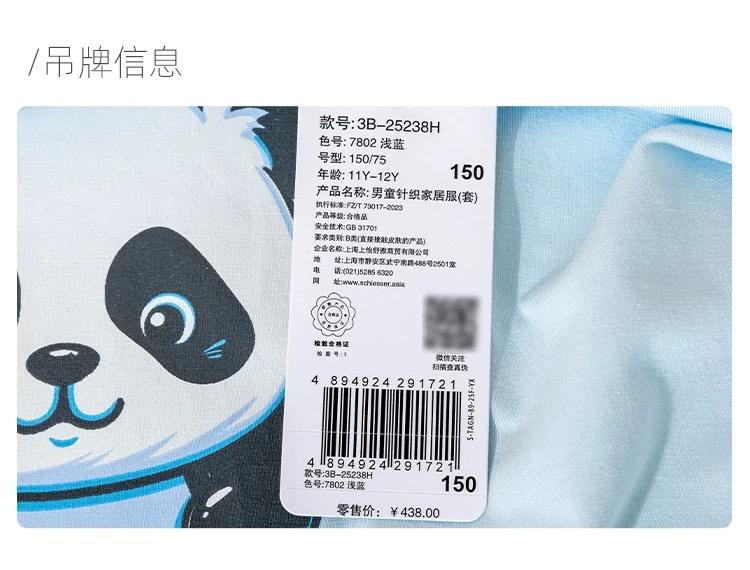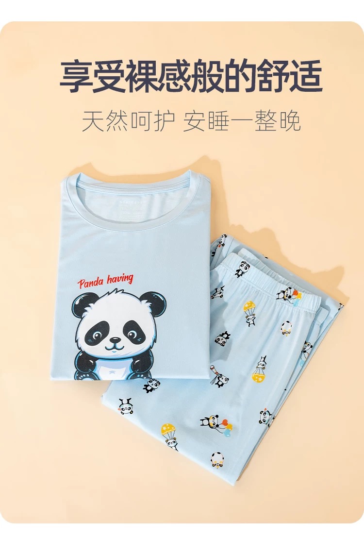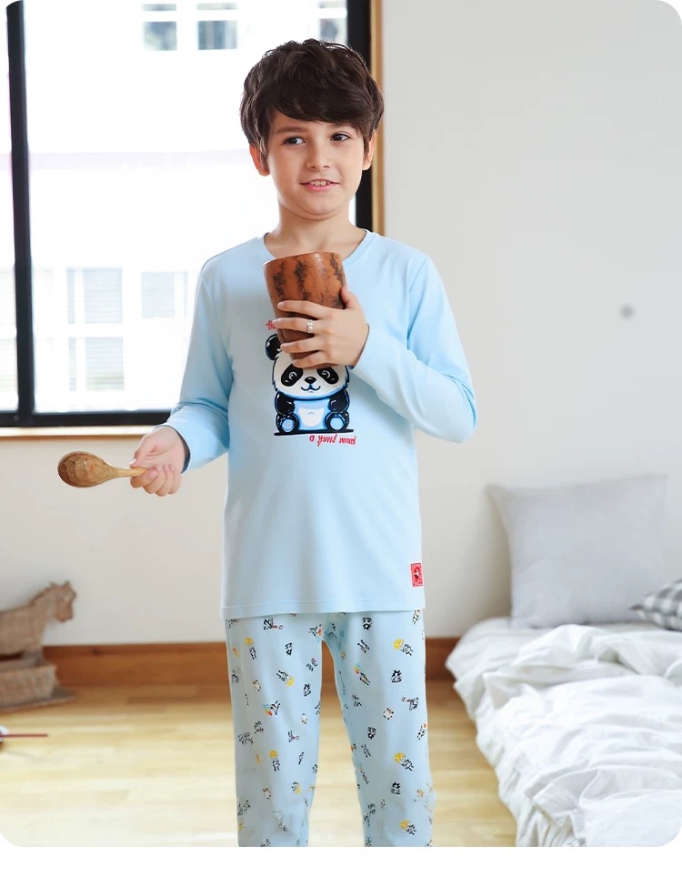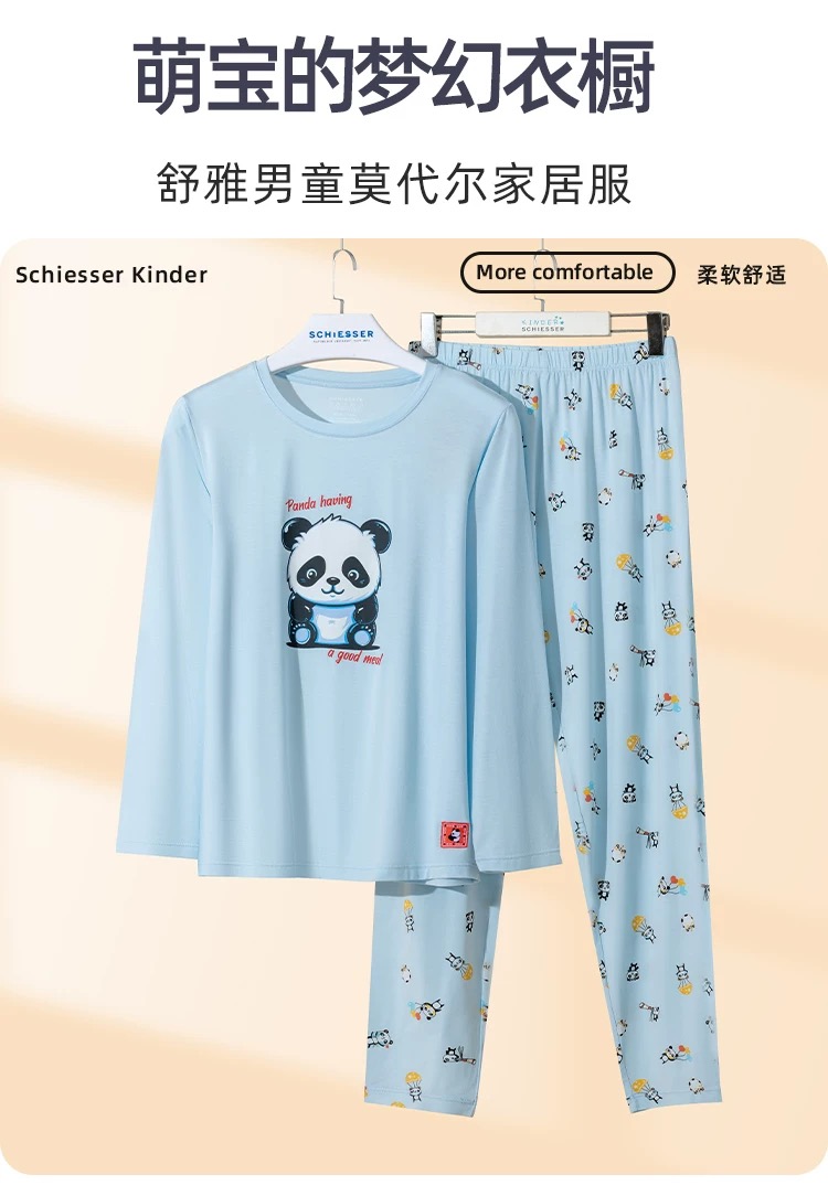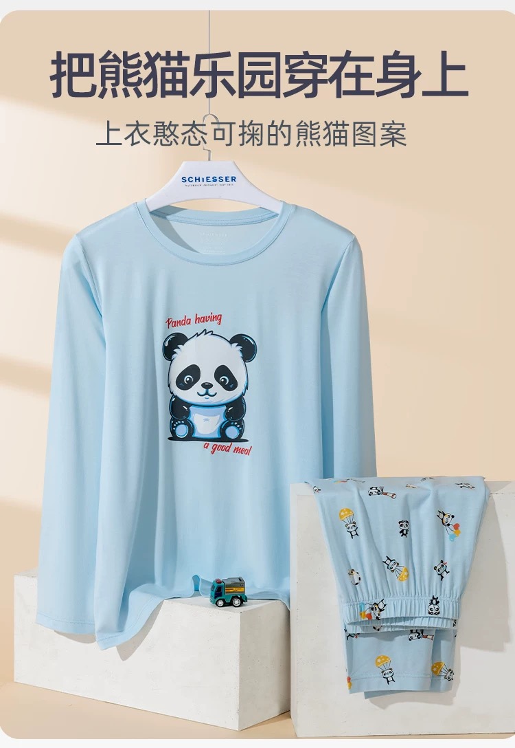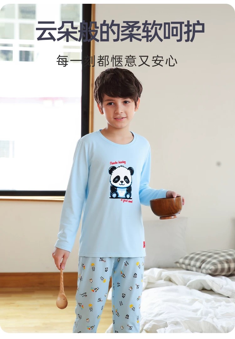 【熊猫乐园莫代尔】舒雅童装男童长袖长裤家居套装熊猫乐园系列95%莫代尔5%氨纶180g 3B/25238H