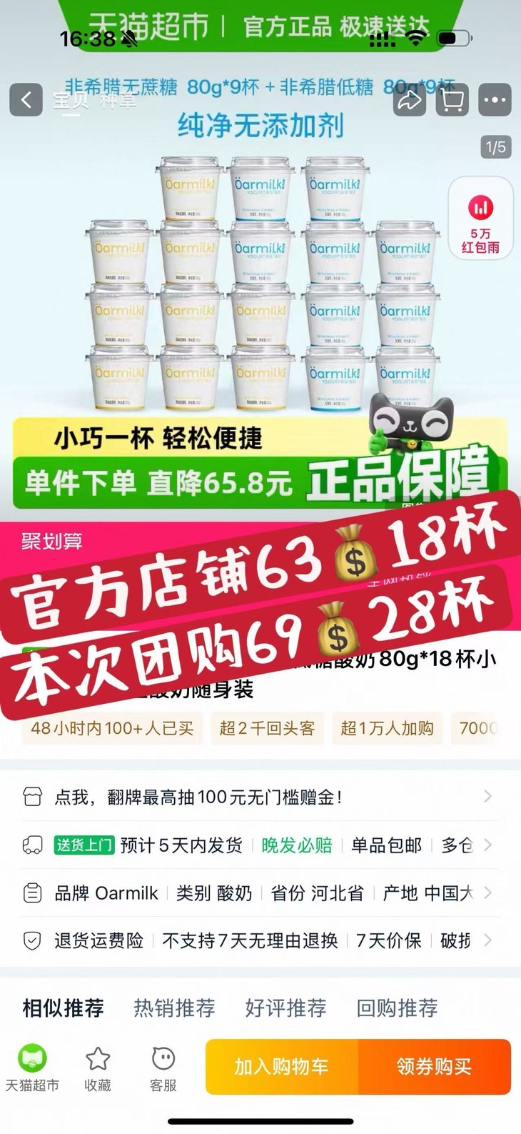 4)全程冷链运输,但由于快递、天气等原因,收到商品如有乳清析出属于正常现象,不影响酸奶品质,可放心食用。
