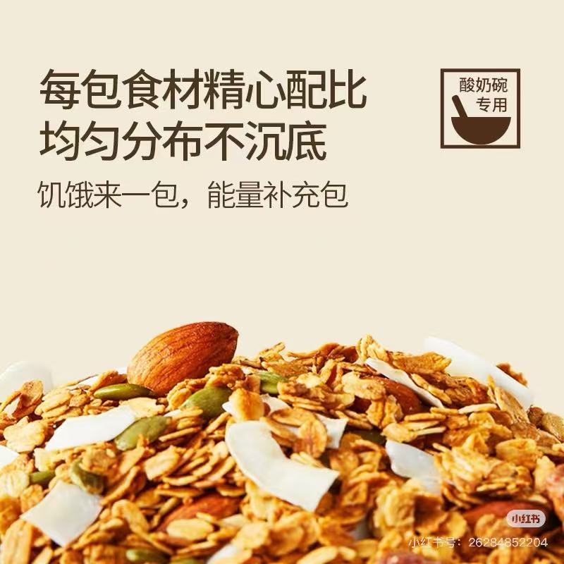 ✅便携小包装,锁鲜更持久:独立充氮小包装,每包15g,精准高膳食纤维配比,每小包配料食材更加均匀,每口吃到所有谷物,营养均衡,防潮抗氧化,270天超长保质期,随时随地享受新鲜酥脆。