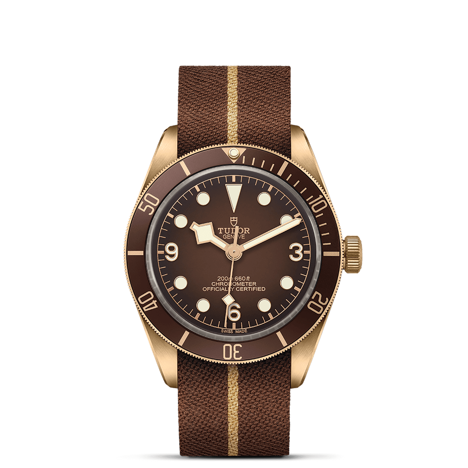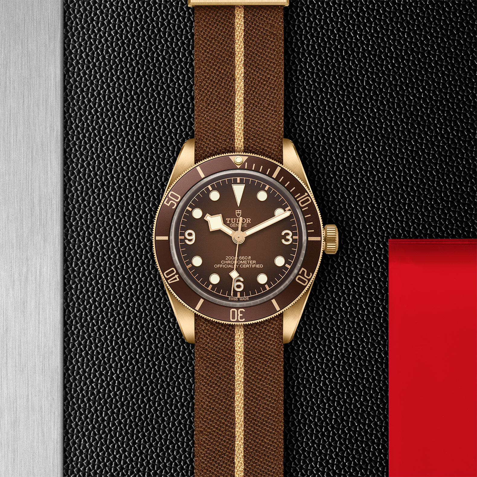 青铜表带,搭配帝舵表“T-fit”表扣,便于快速调节松紧。随表附送“青铜棕色”提花织纹表带