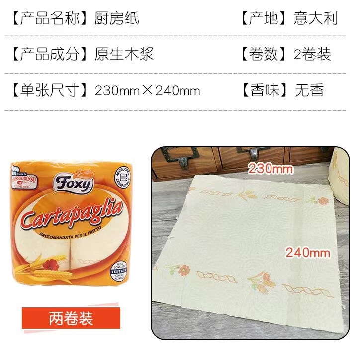 DLL【中欧班列精选】意大利原装进口厨房用纸 生鲜吸水纸油炸吸油卷纸 3包