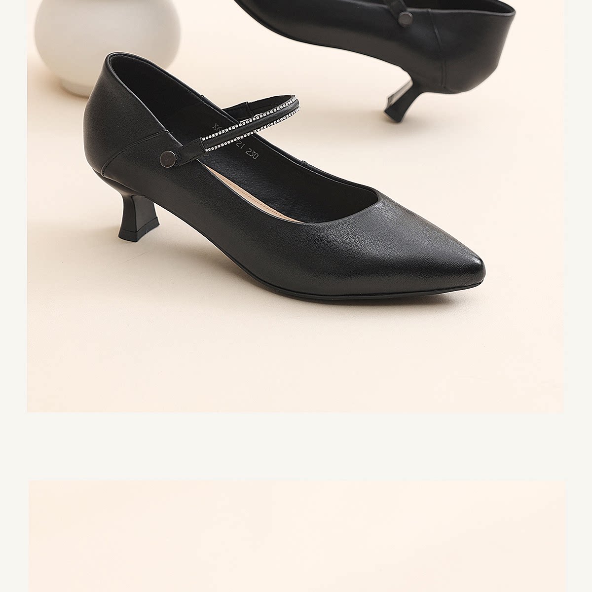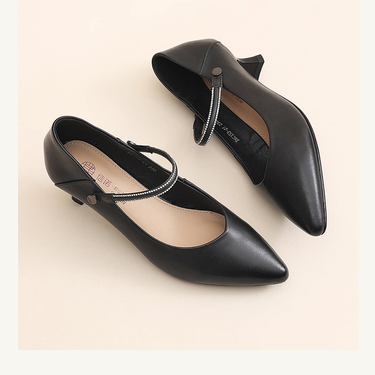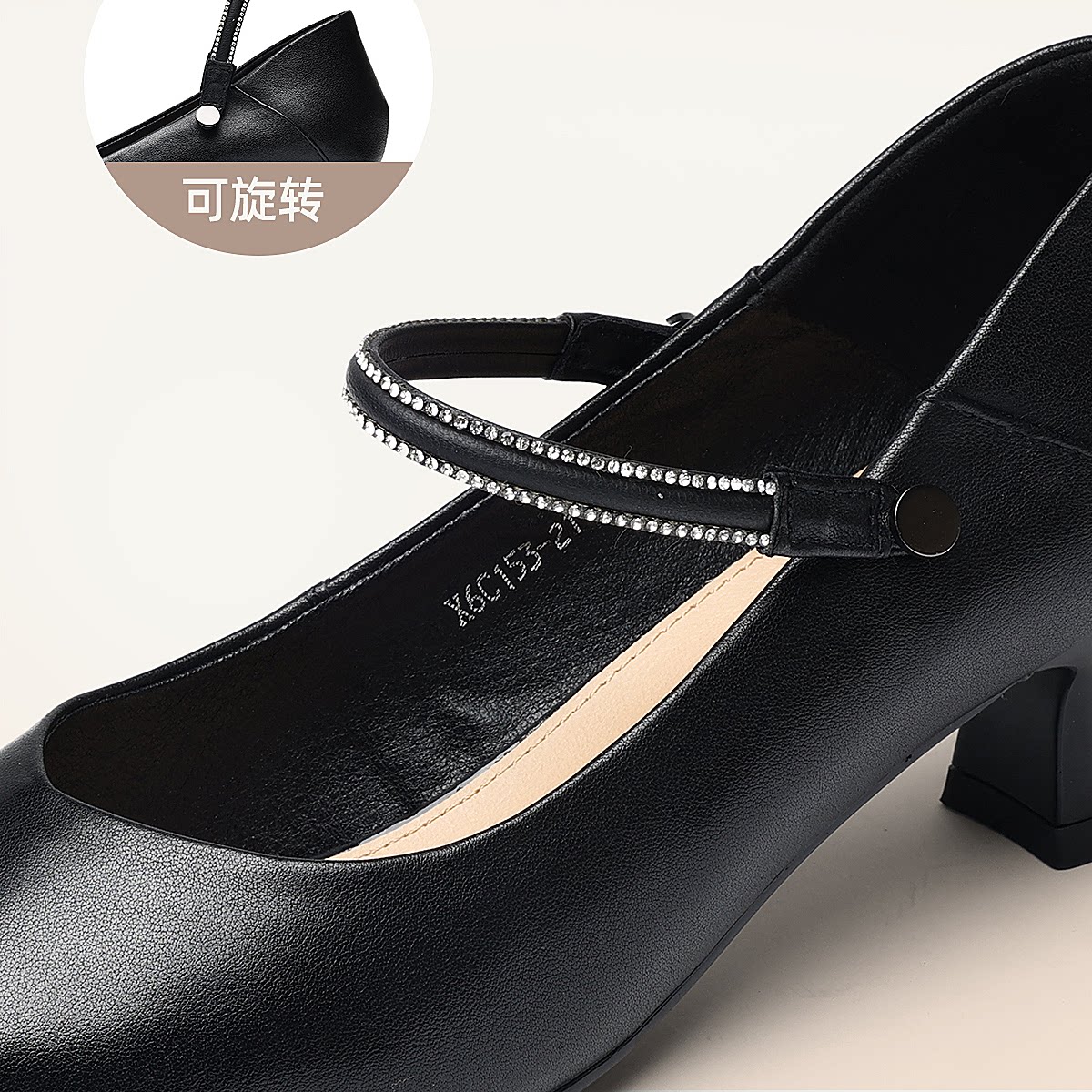 通勤风尖头一字带玛丽珍鞋女中跟水钻气质百搭舒适单鞋X6C153-21