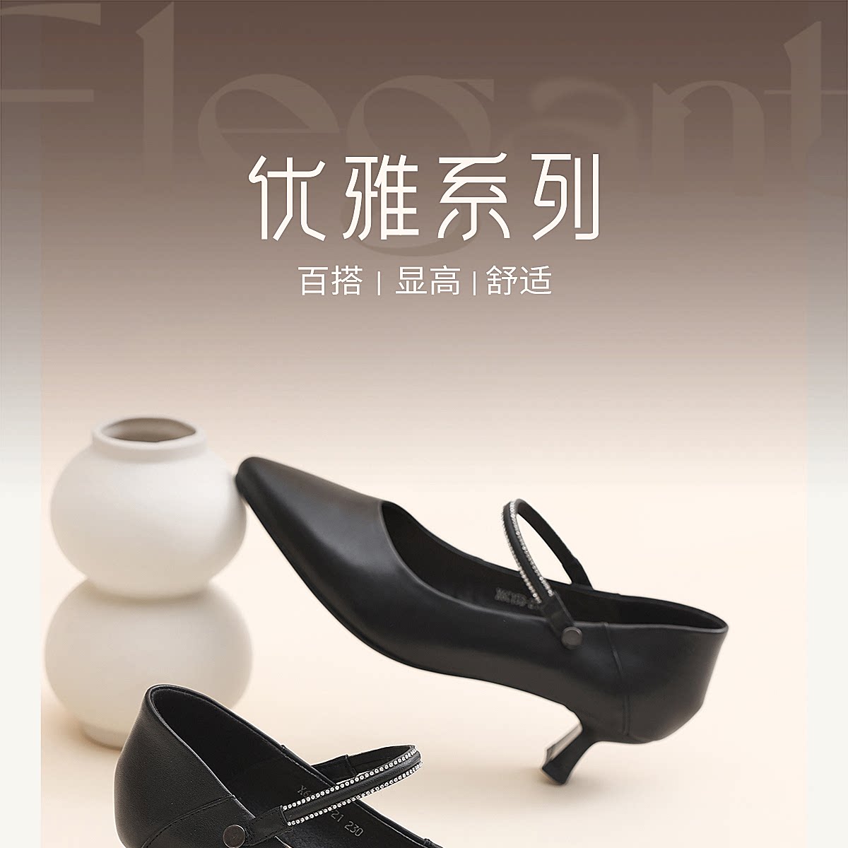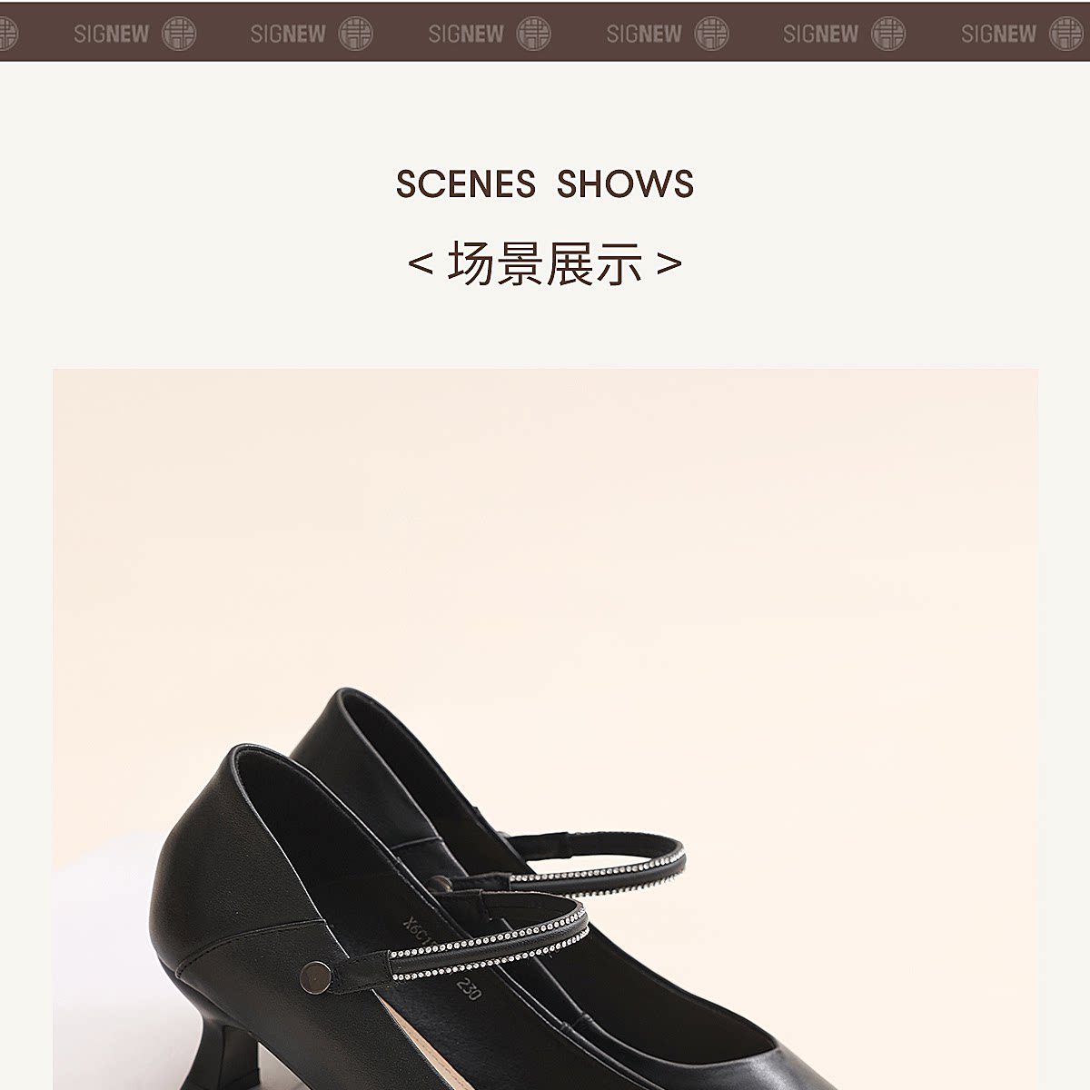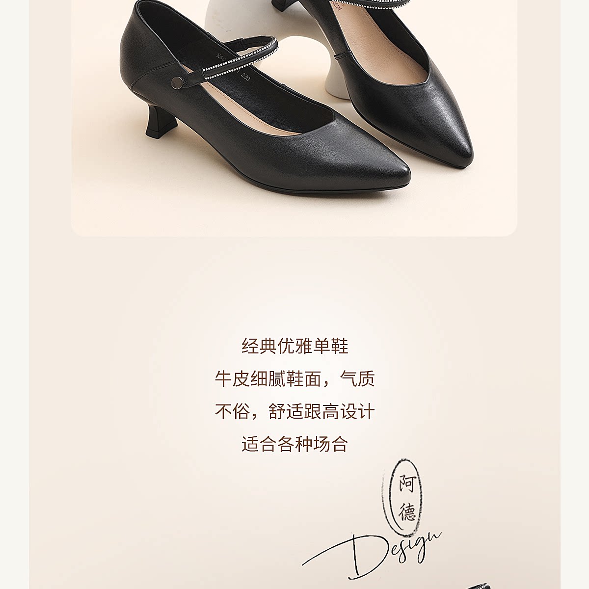 通勤风尖头一字带玛丽珍鞋女中跟水钻气质百搭舒适单鞋X6C153-21