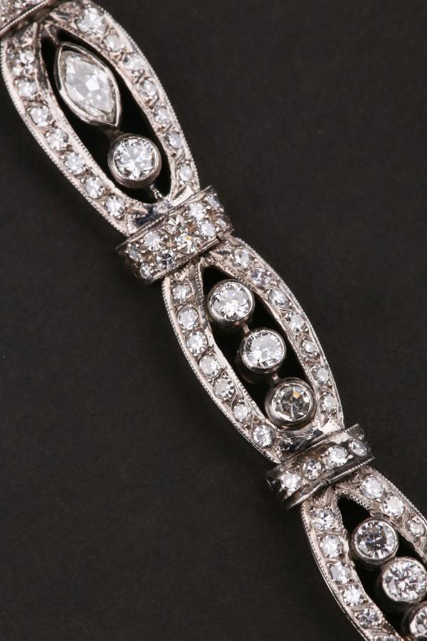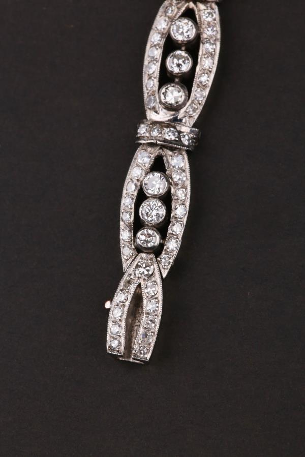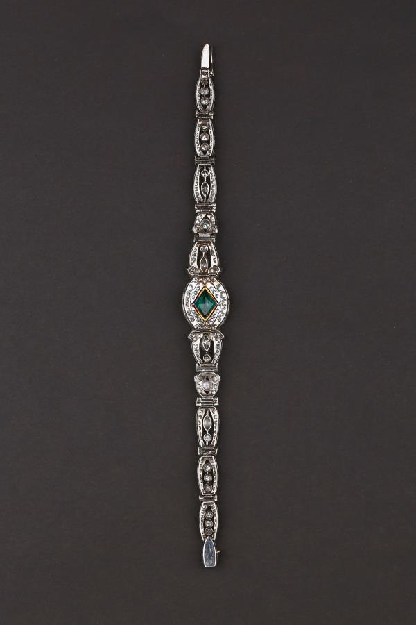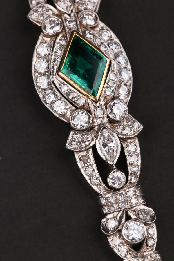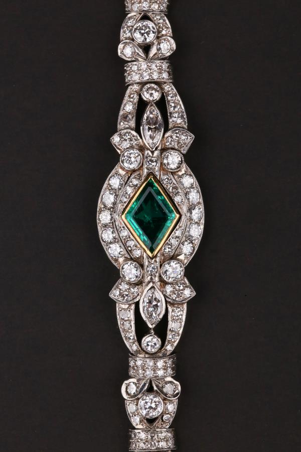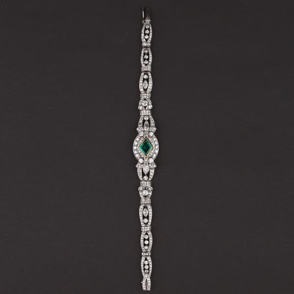 独角鹿西洋古董装饰艺术时期铂金镶嵌钻石哥伦比亚祖母绿手链手镯