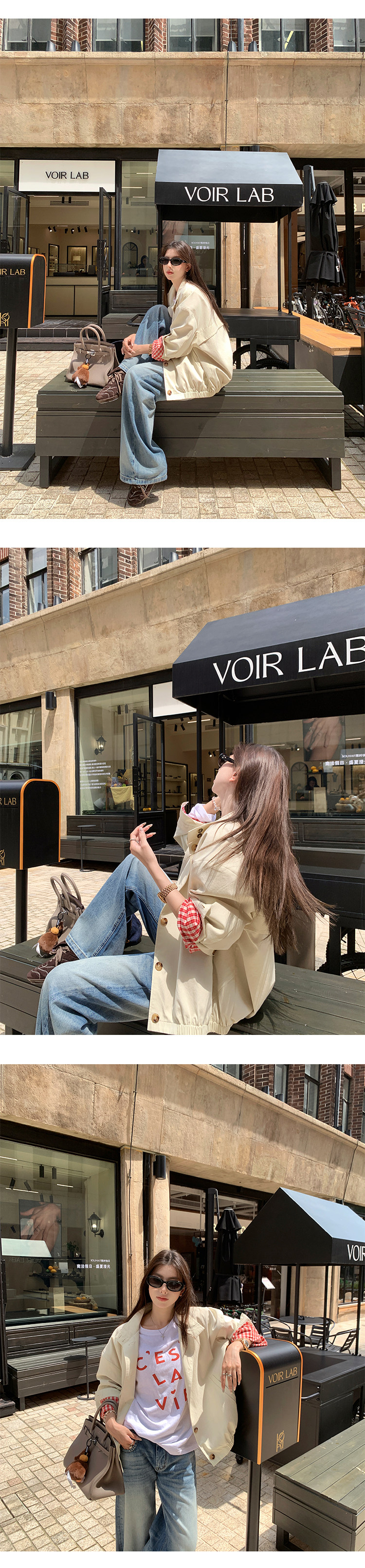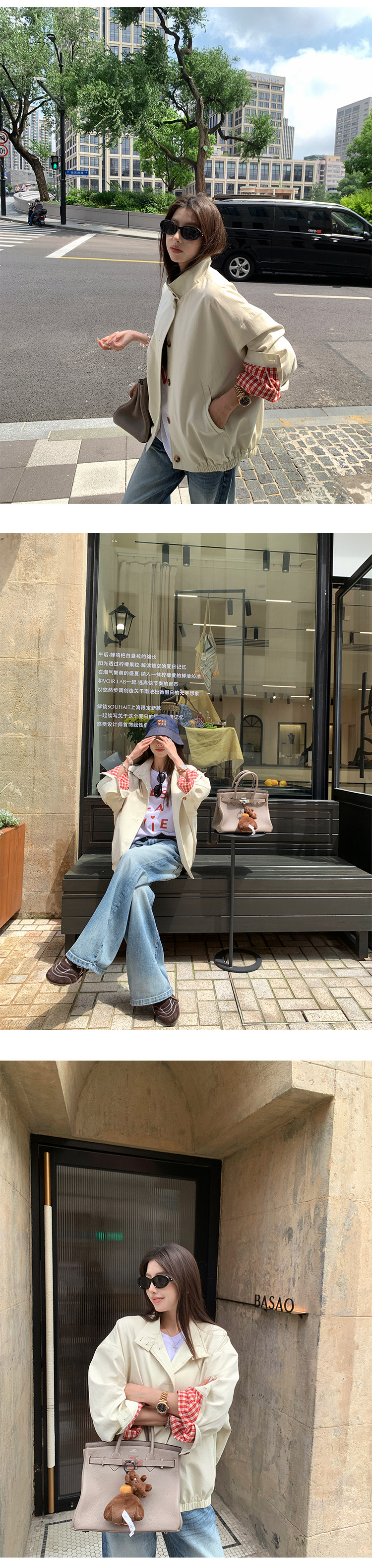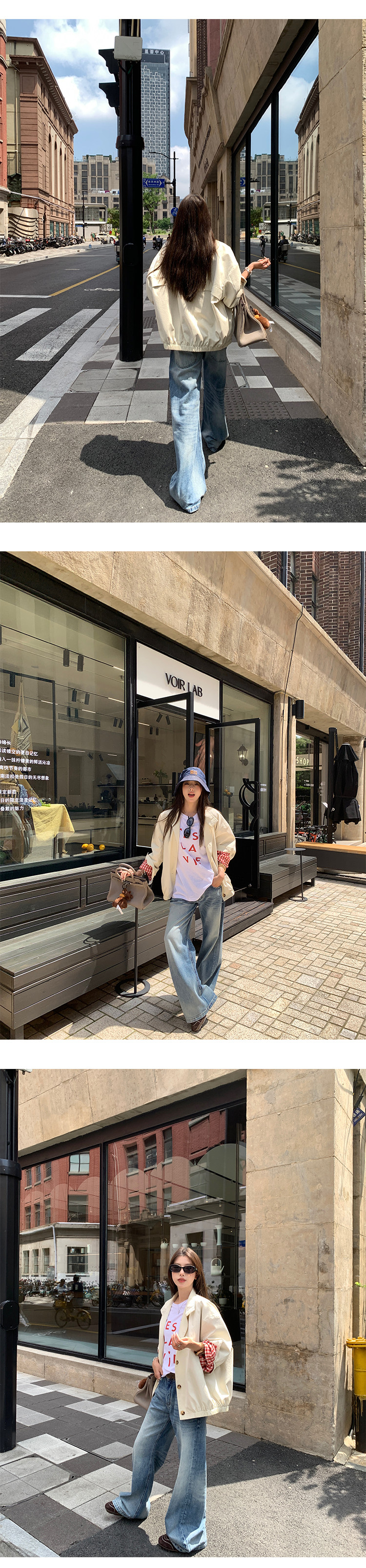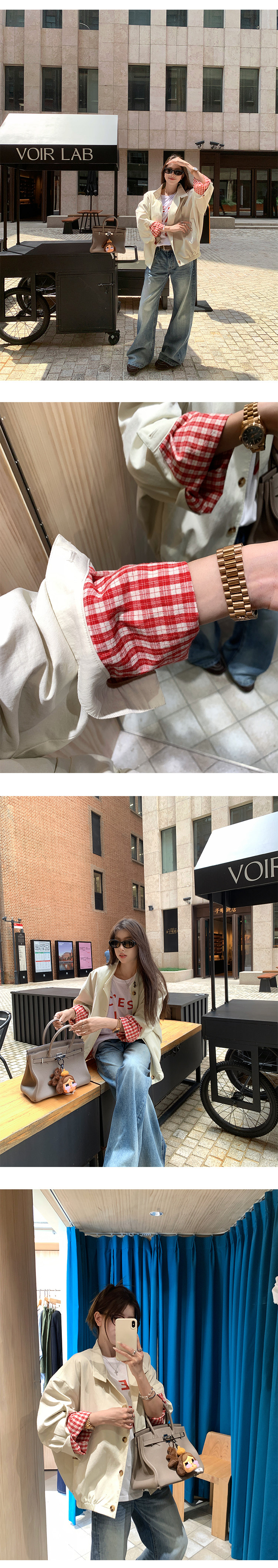 EKOOL衣库 格子里布立领工装外套女早秋新款宽松廓形百搭夹克上衣