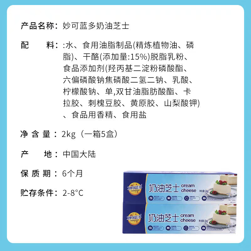 2KG妙可蓝多奶油芝士cream cheese奶酪 轻乳酪蛋糕烘焙原料