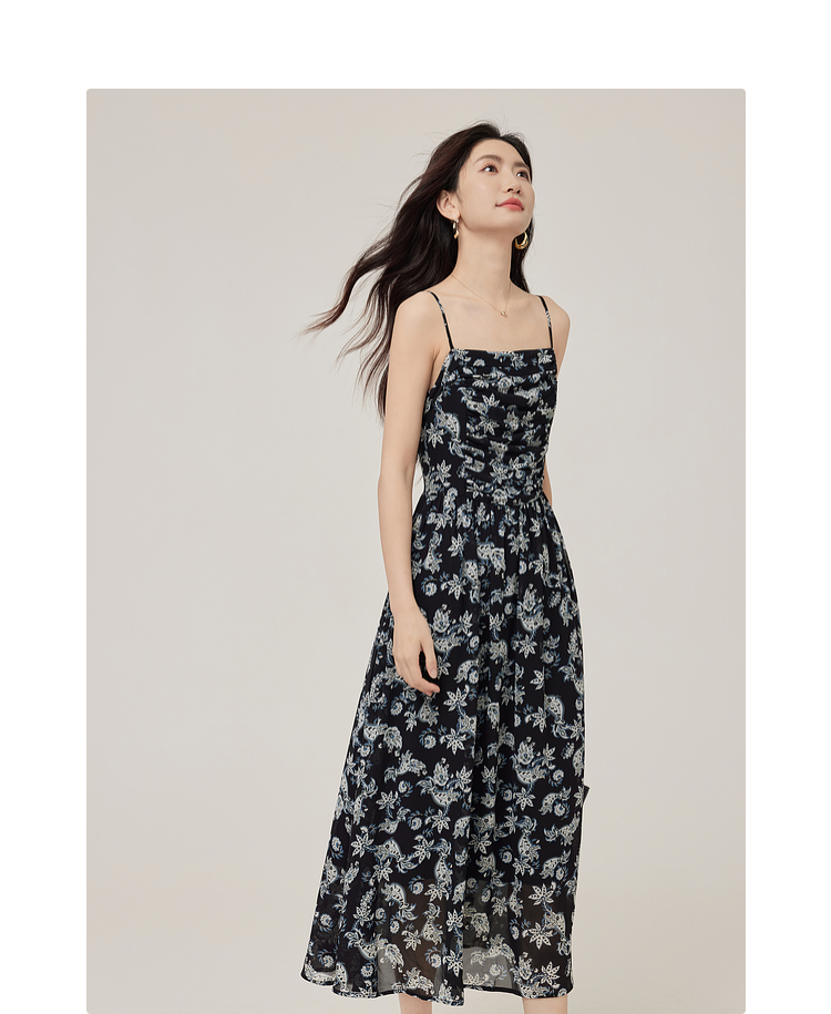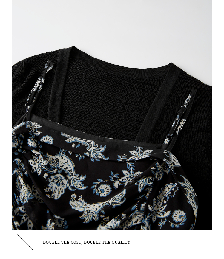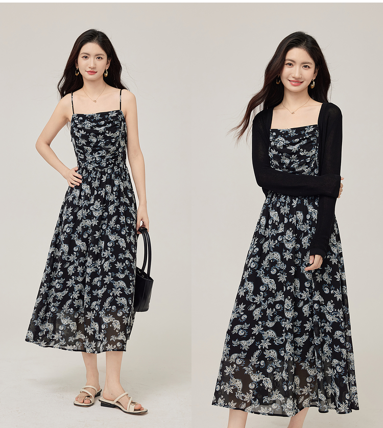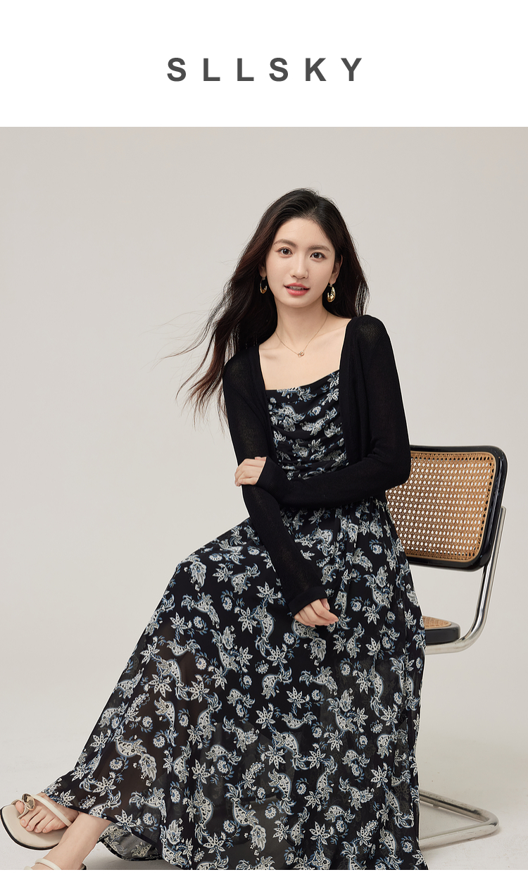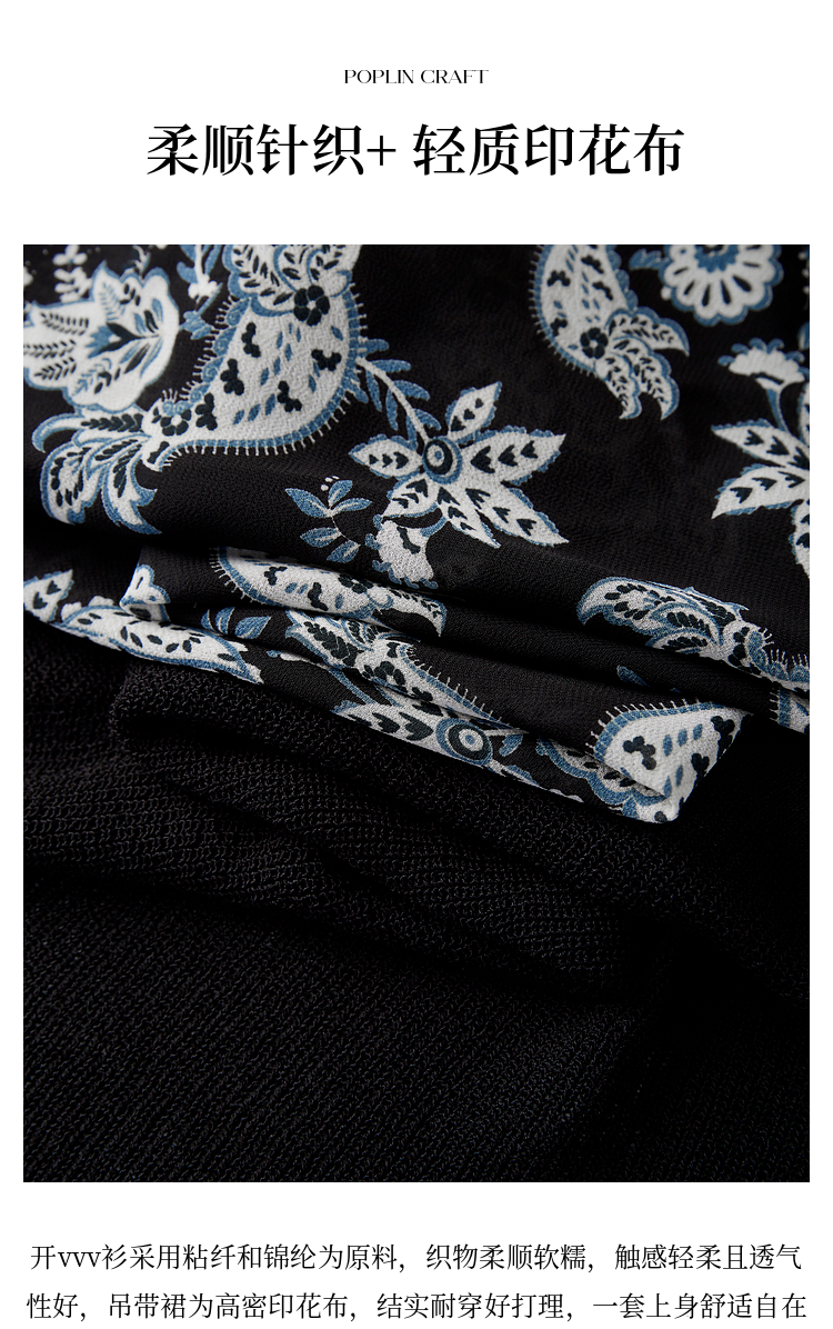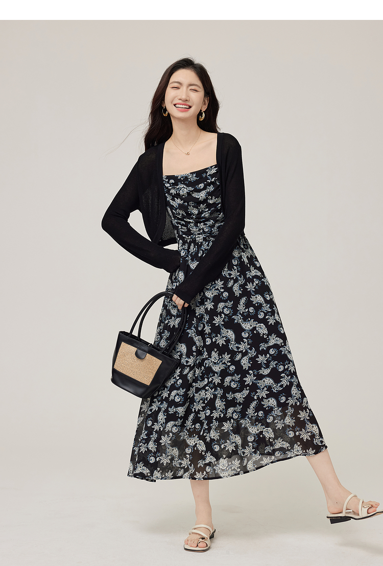 【08/12新品】熙世界复古印花吊带连衣裙套装女2025早秋新款针织开衫裙子两件套