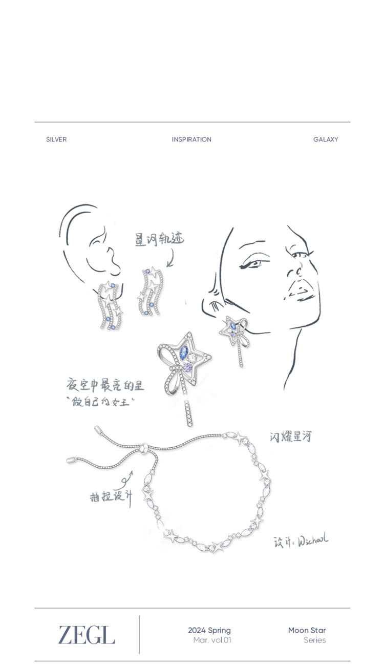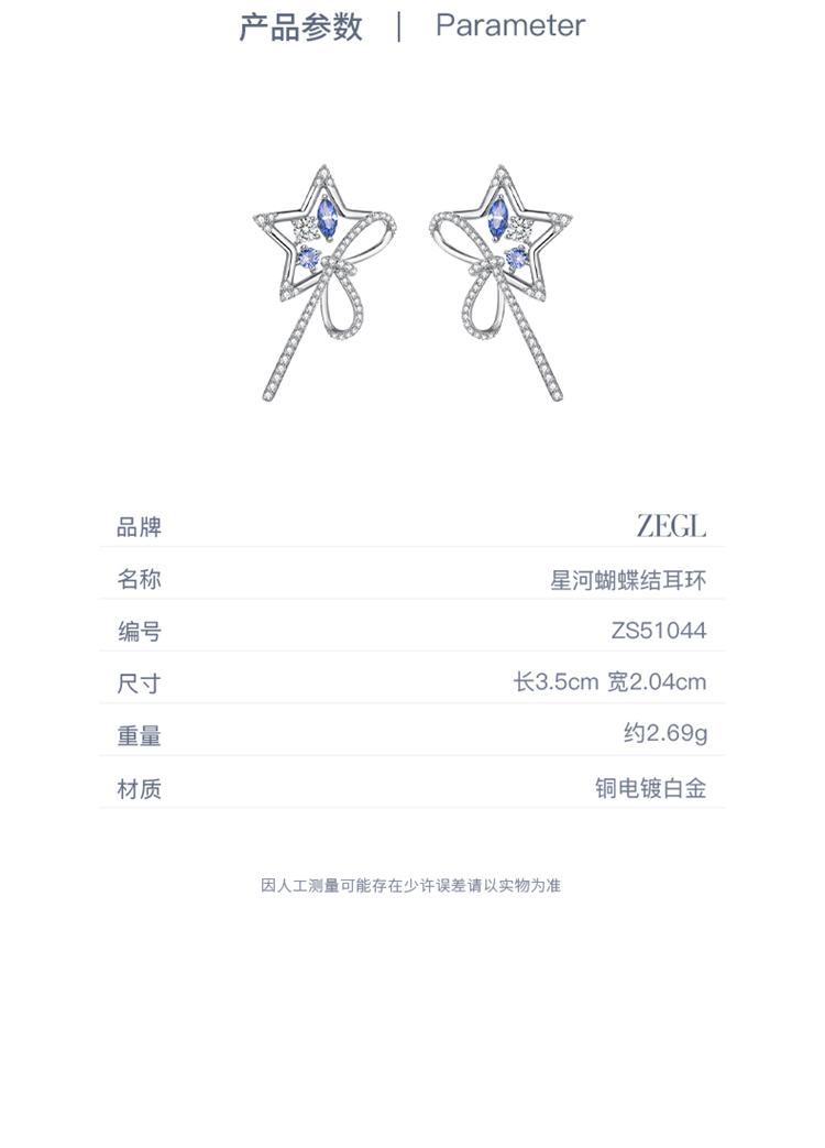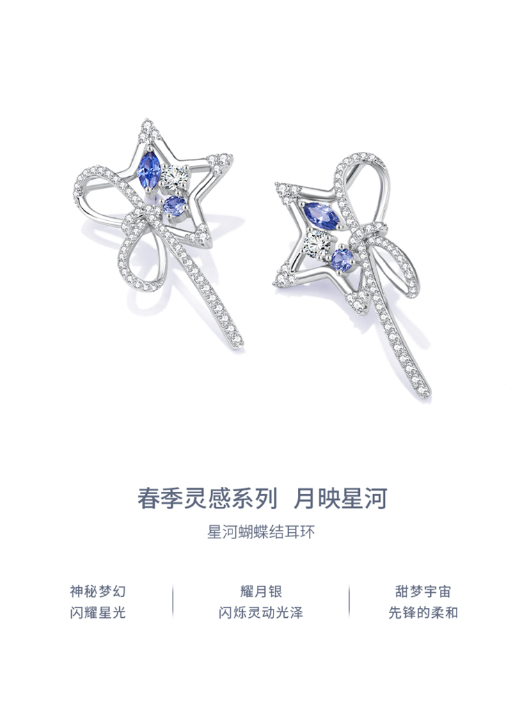 ZEGL设计师月映星河系列蝴蝶结耳环女2024新款星星耳钉银针耳饰品