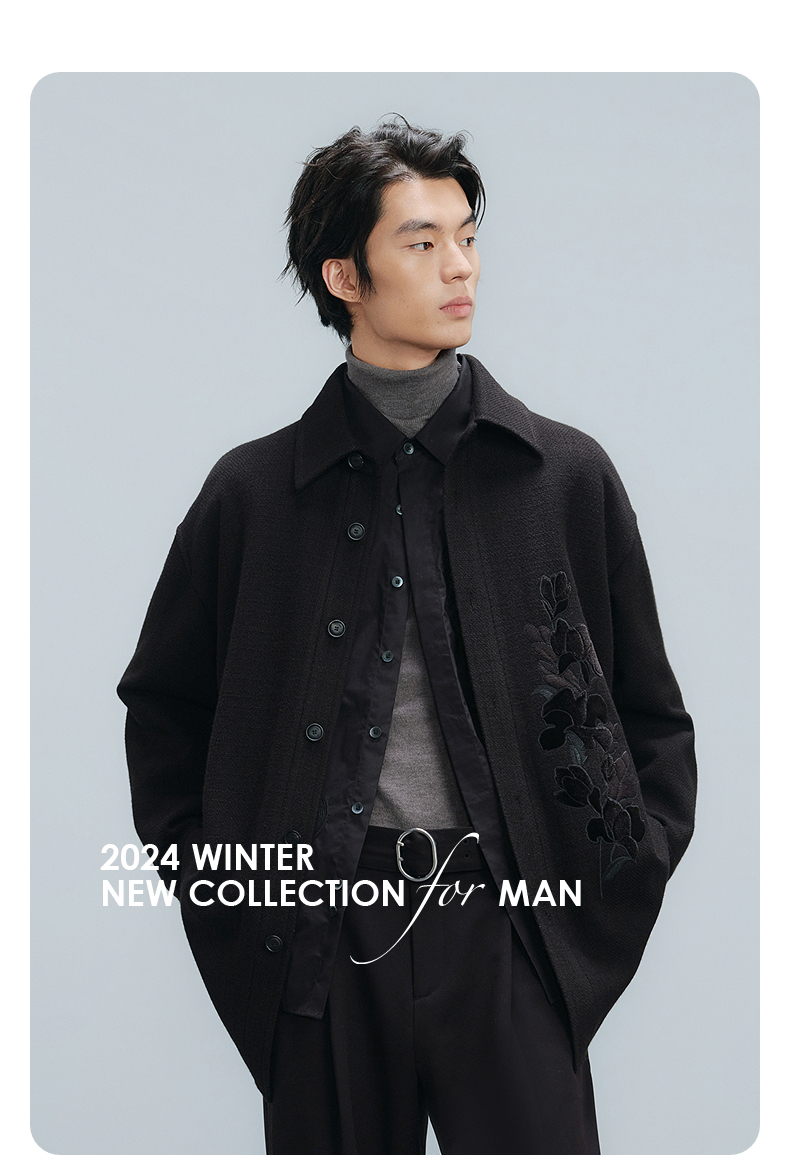 GXG男装 黑色新中式通勤大衣外套 24冬季热卖G24X064003