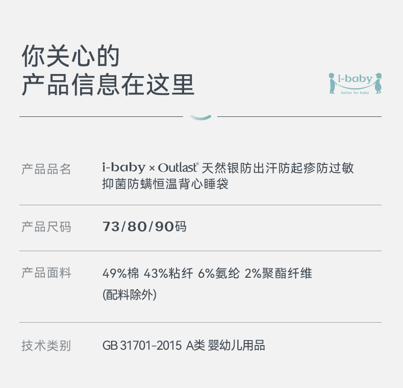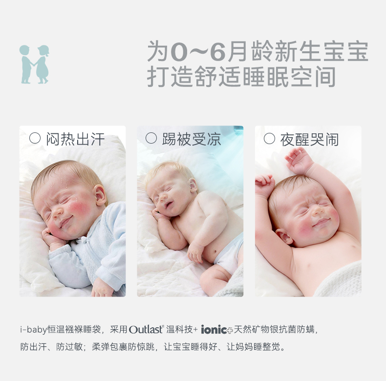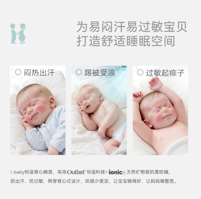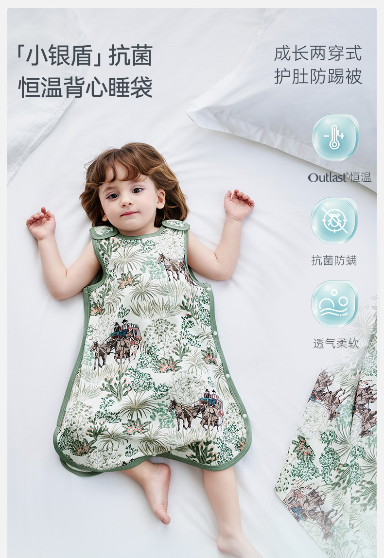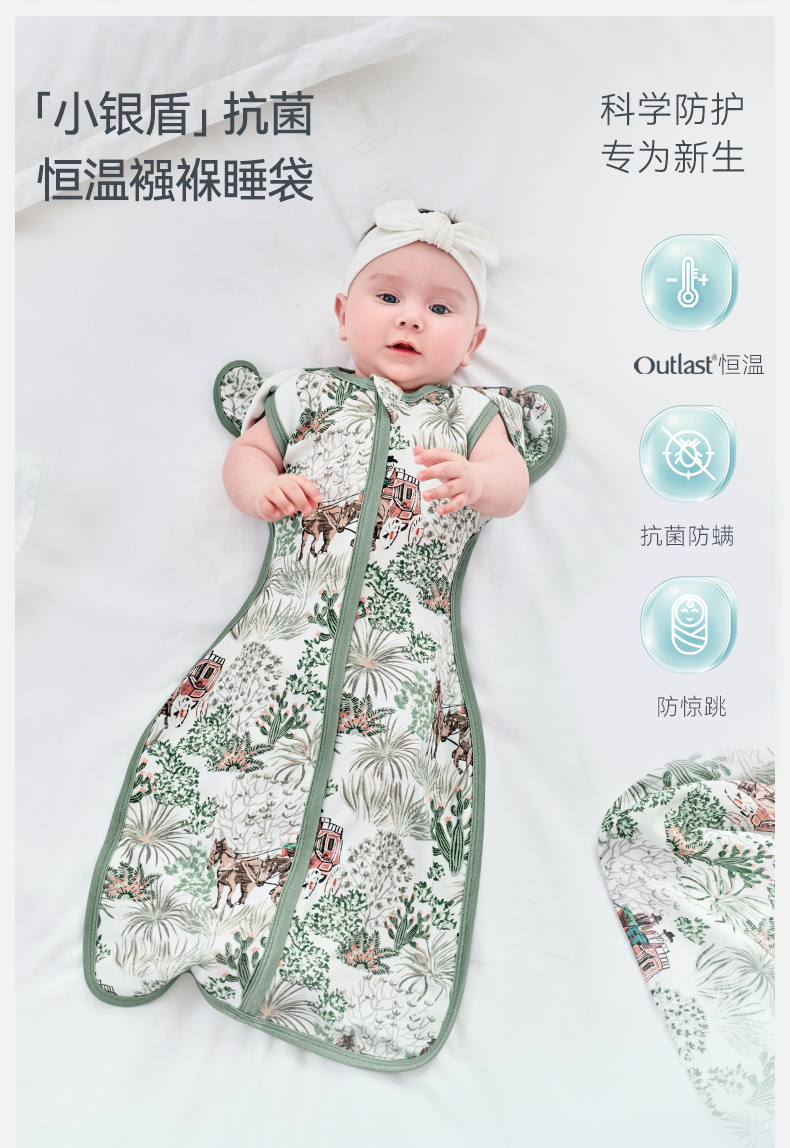 【2026春夏新品】ibaby×outlast太空科技恒温天然矿物银襁褓/背心睡袋小银盾 适合室温28-32°C