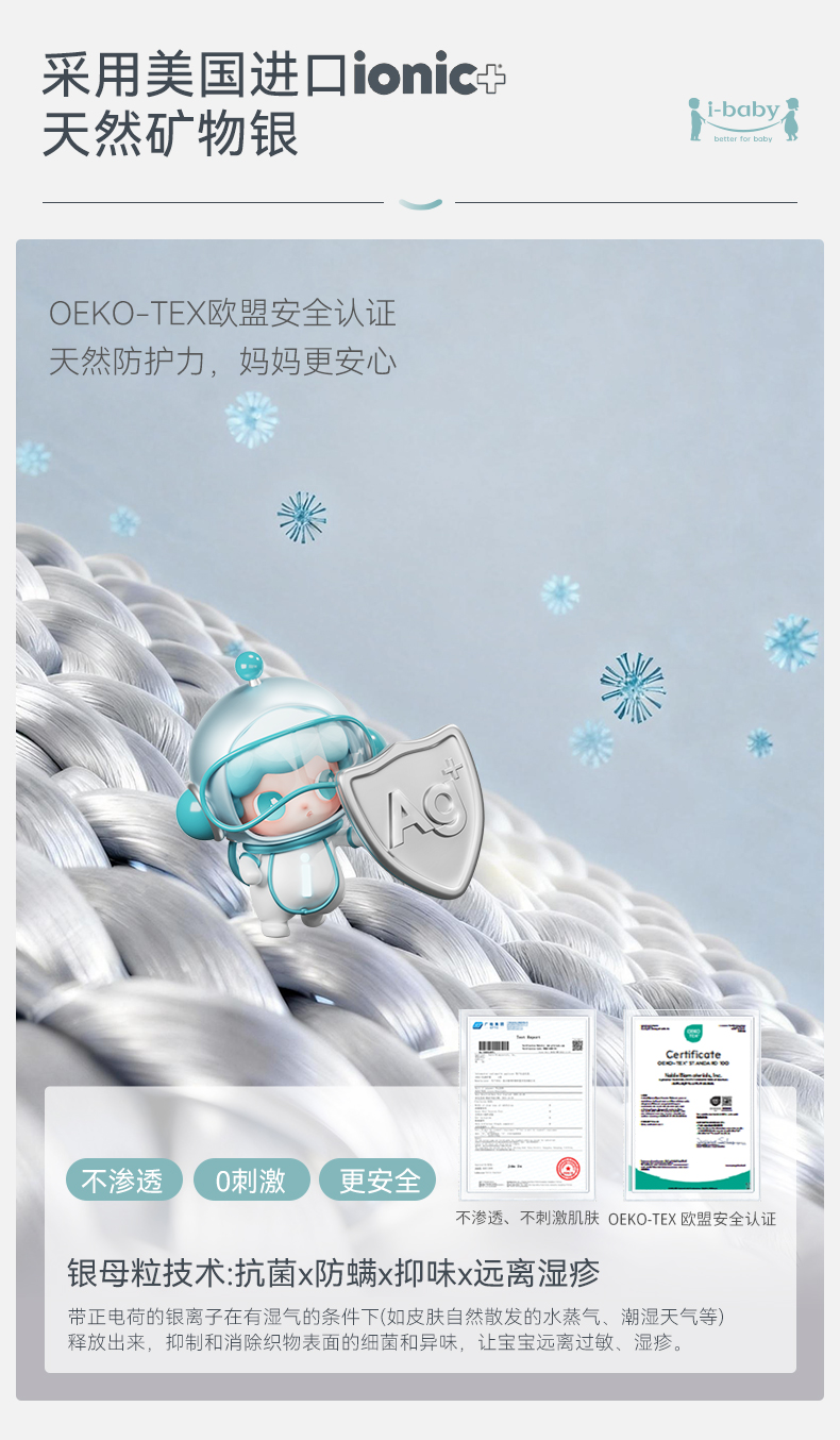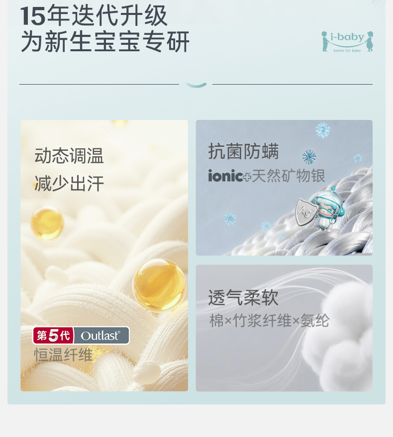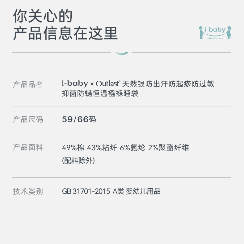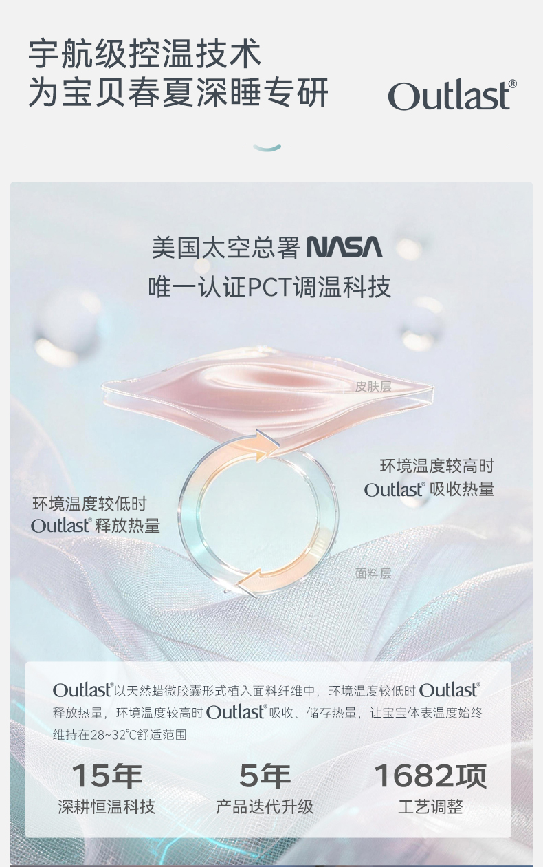 【2026春夏新品】ibaby×outlast太空科技恒温天然矿物银襁褓/背心睡袋小银盾 适合室温28-32°C