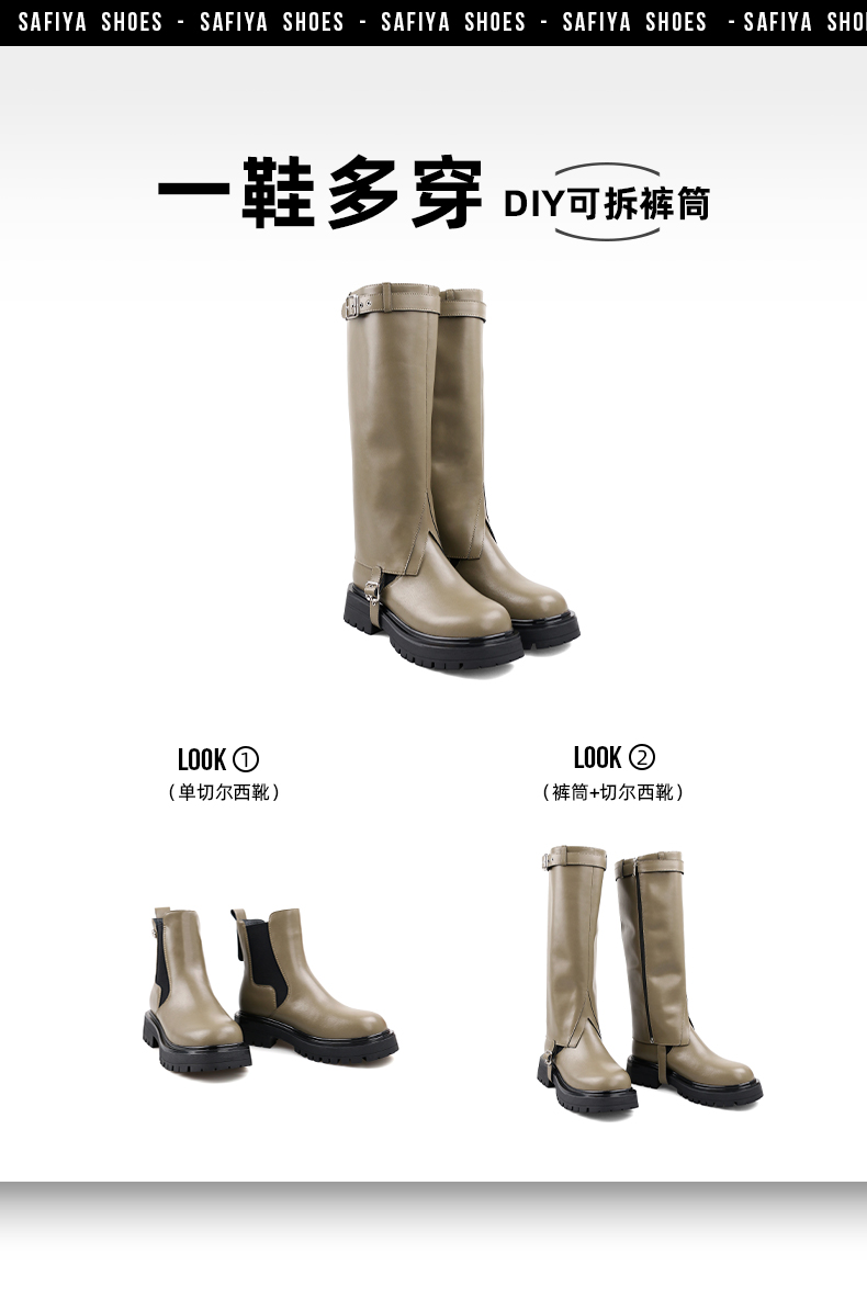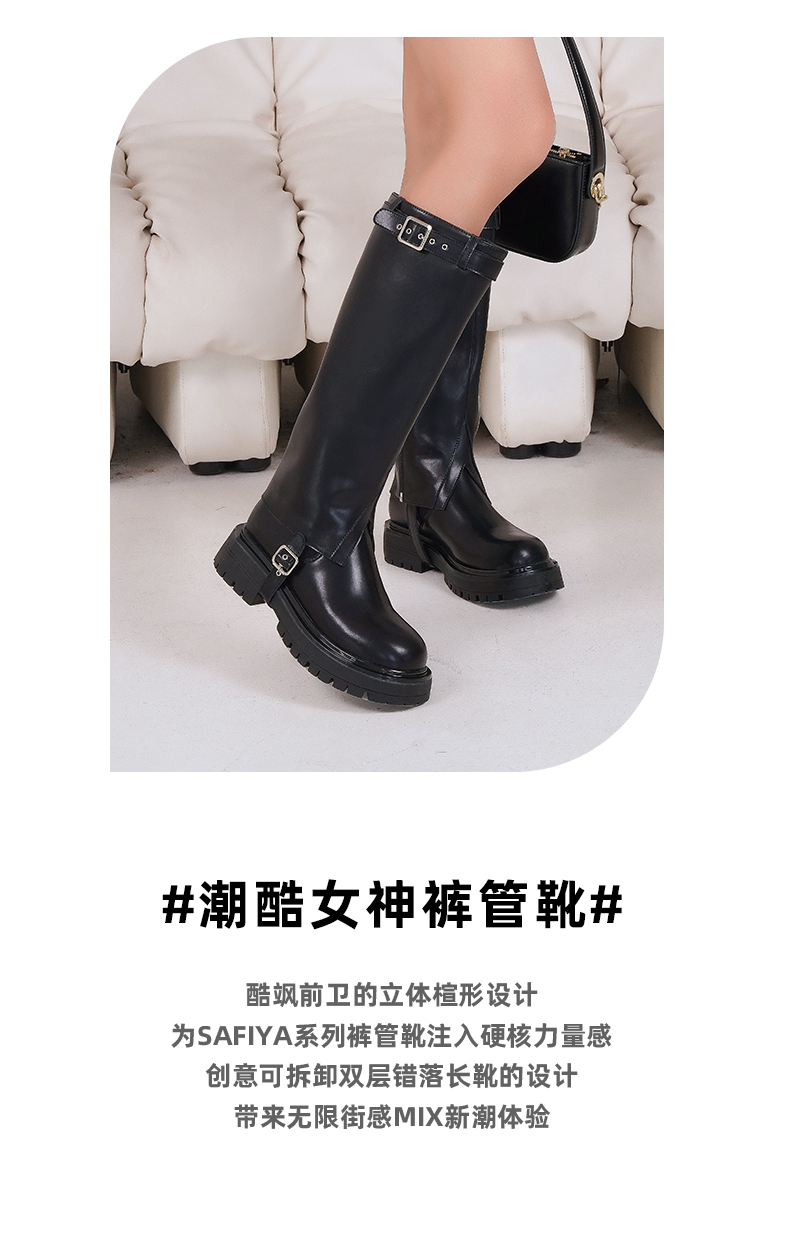 【新品特惠】Safiya/索菲娅 2022秋冬新款长靴女新潮设计感双层炸街厚底小众裤管靴 SF24117136