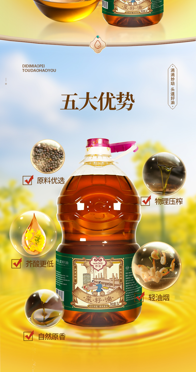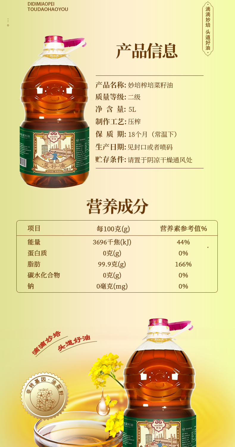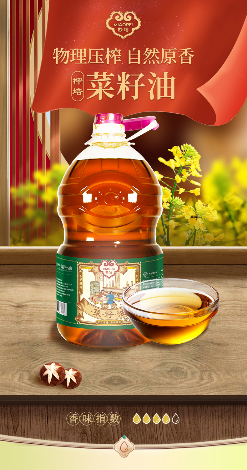 【严选】合鑫泰 妙培榨培物理压榨菜籽油5升纯正家用浓香菜油食用油 榨培菜籽油5L (厂家直发)