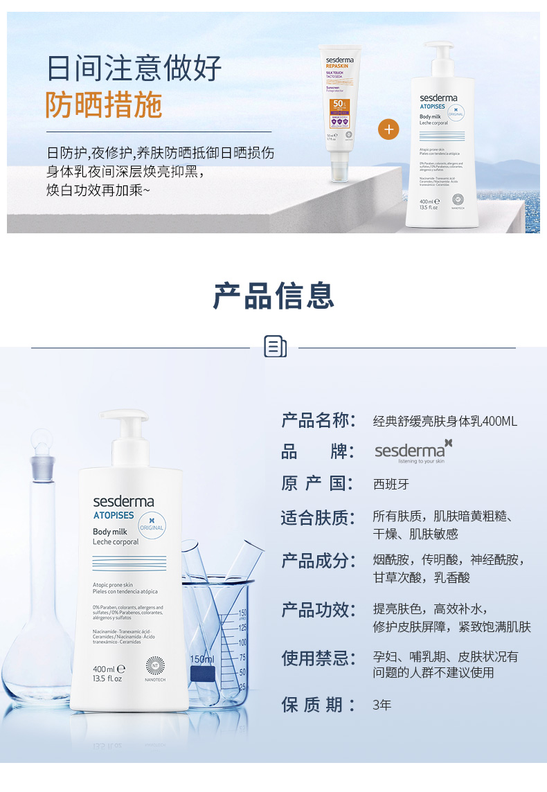 sesderma西班牙经典款焕白身体乳400ml